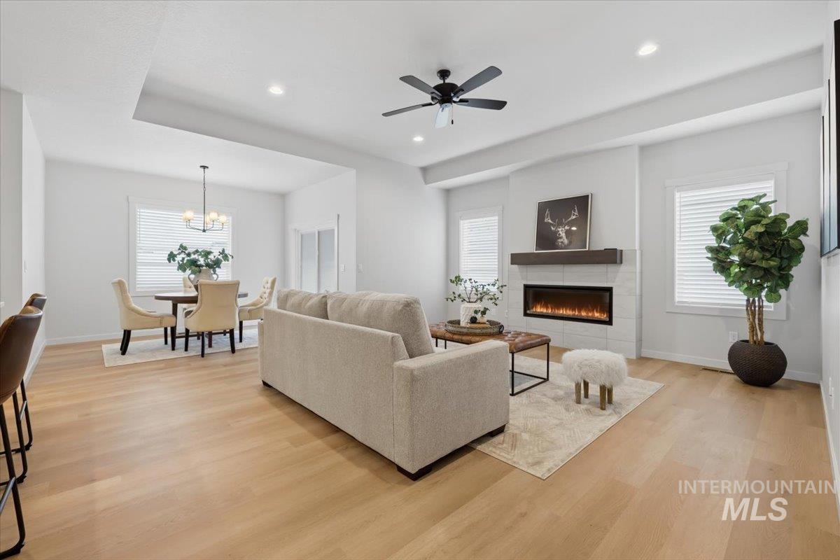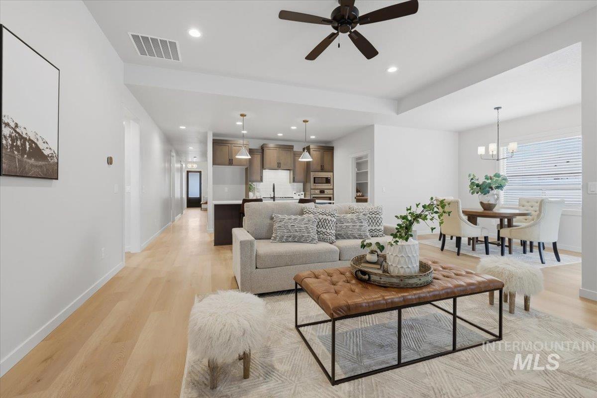 Presenting the Willow Creek floor plan by Ted Mason Signature Homes! Backed by over three decades of top-tier craftsmanship and a reputation for delivering exceptional quality, Ted Mason Signature Homes continues to set the standard for luxury living. Inside you will find a very efficient layout maximizing large common area spaces while not jeopardizing the private rooms. In the kitchen you will enjoy Bosch standard appliances, custom cabinetry with soft close, full tile backsplash, and a large pantry. The private owner’s suite is located at the back with a large bathroom ensuite featuring a zero threshold tile walk in shower, dual vanity, tile floor, and walk in closet that connects to the laundry room for convenience. This plan features an extra large garage with 1011 sq ft of garage to use for your toys or storage! Off the mudroom we built a enclosed storage room with shelving. From the intentional layout to the quality construction, every detail reflects the signature excellence of Ted Mason Homes. Dagger Falls community will include a 3.5 acre park just down the road with pickleball courts.