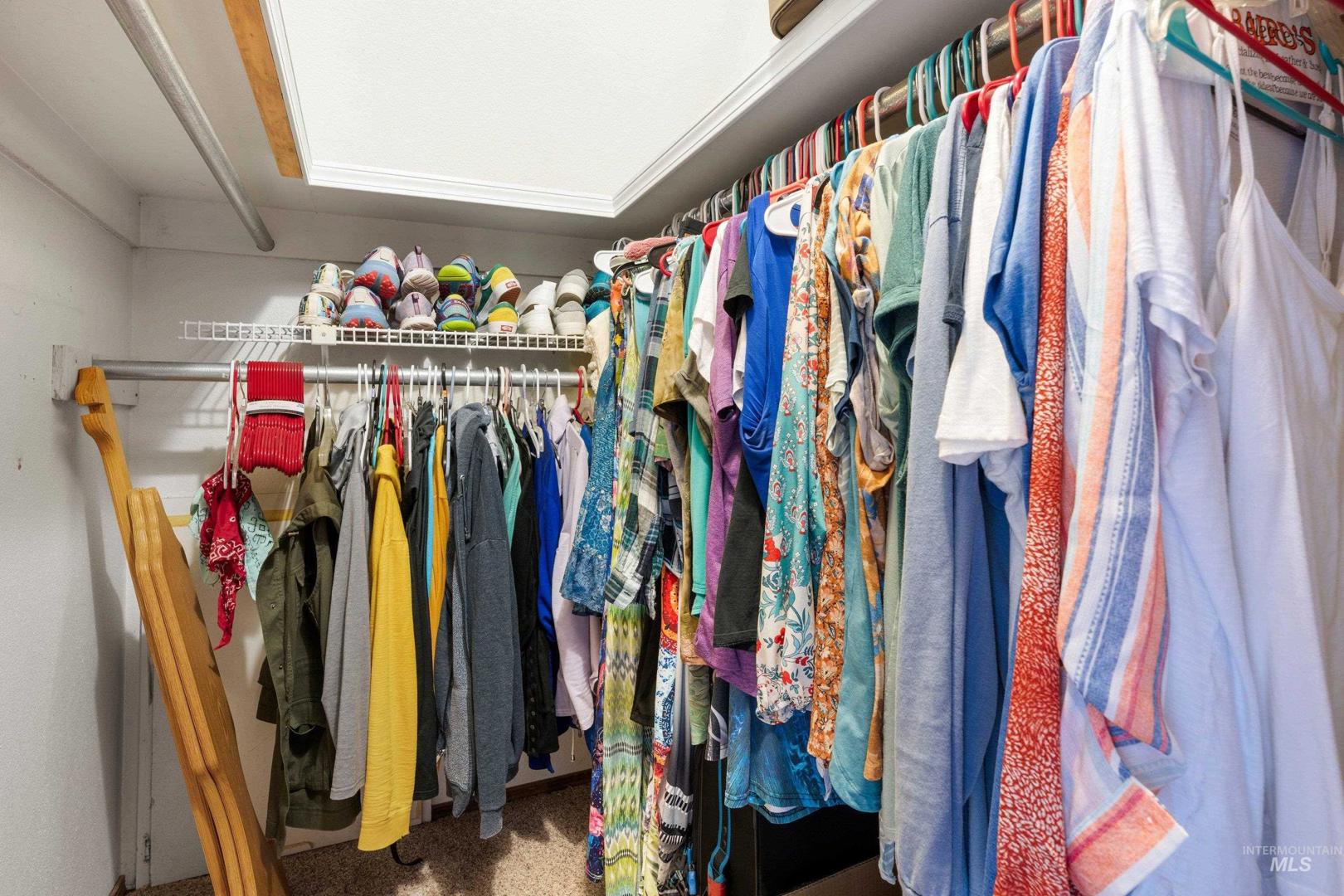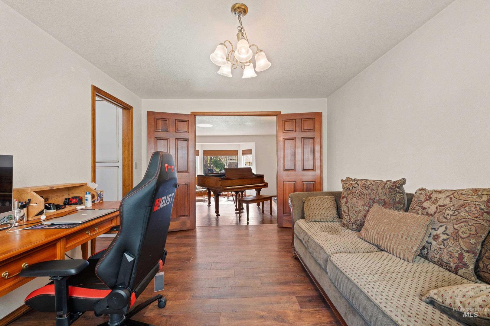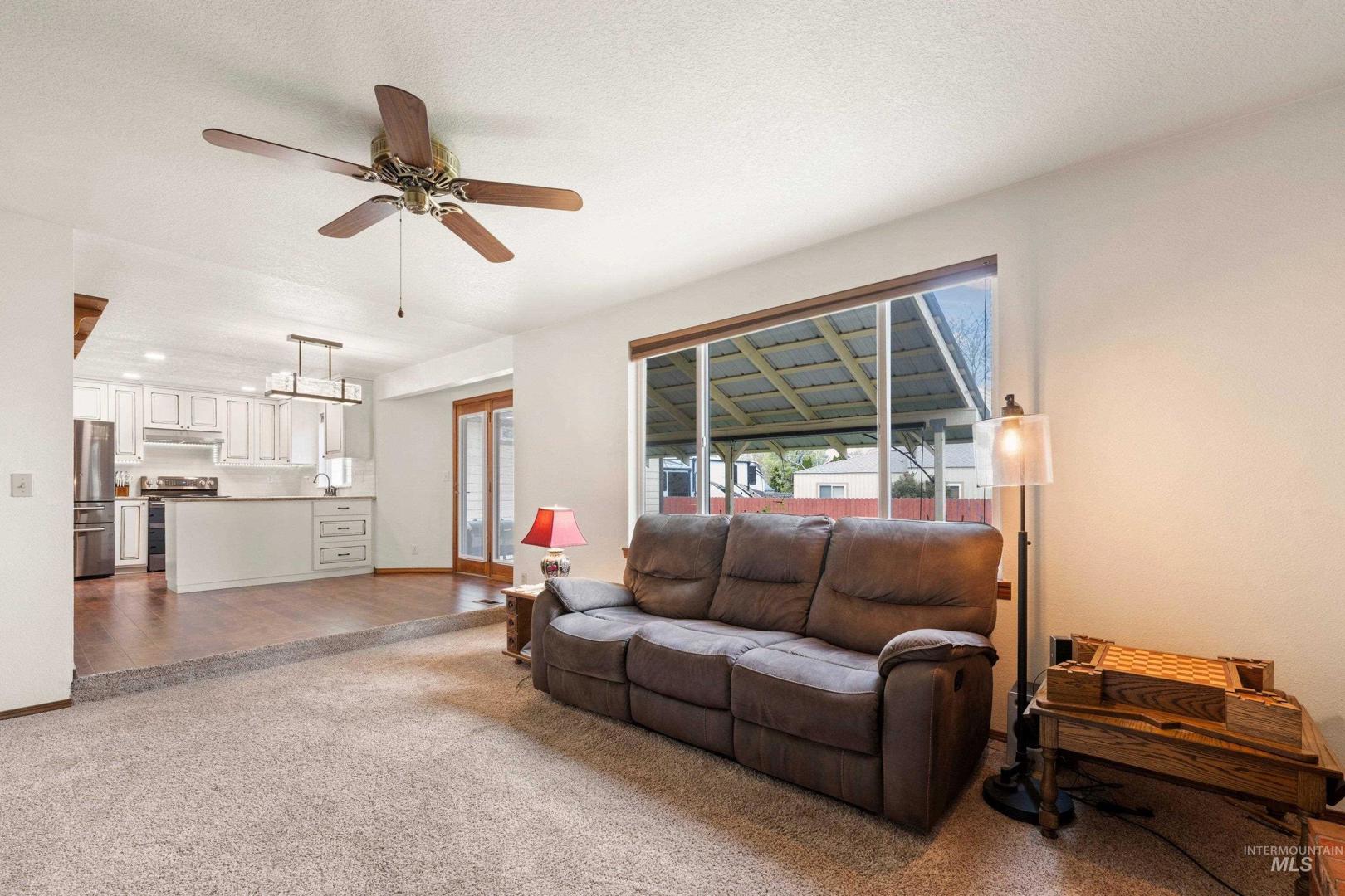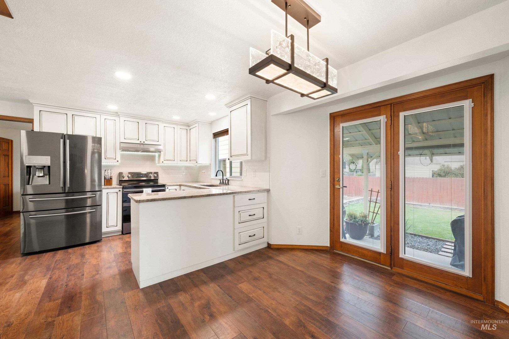 Darling home in a golf course community with a shop, gravel RV parking, and no HOA! Beautiful LVP flooring throughout the main level. Updated kitchen with granite counters, distressed soft close/full extension drawers/cabinets, and tile backsplash. Master bedroom is oversized with updated bathroom featuring tile floors, walk in tile shower and granite countertop. Two walk in closets and plentiful attic storage accessed from bedroom closets. Custom built bookshelf in the upstairs hallway. The 22x22 shop includes 10 foot ceilings, drive thru doors, 2x6 construction with blown in insulation, 220 voltage with 30 amps, and attic storage. Covered back patio with sunshade and drip system for hanging baskets. Back yard has two storage sheds, metal garden boxes, and covered garden area. The main garage includes tons of built in shelves and a water softener. The front of the home is brick with dormers and cute landscaping. Move in ready for your new home!