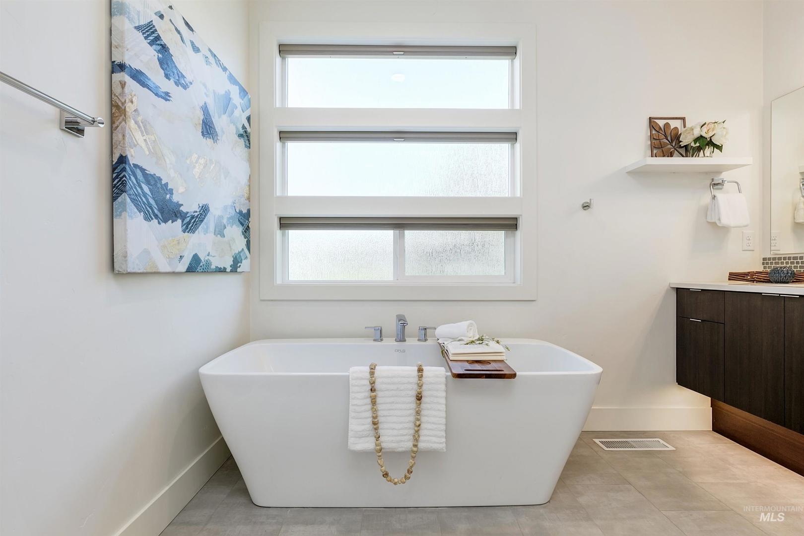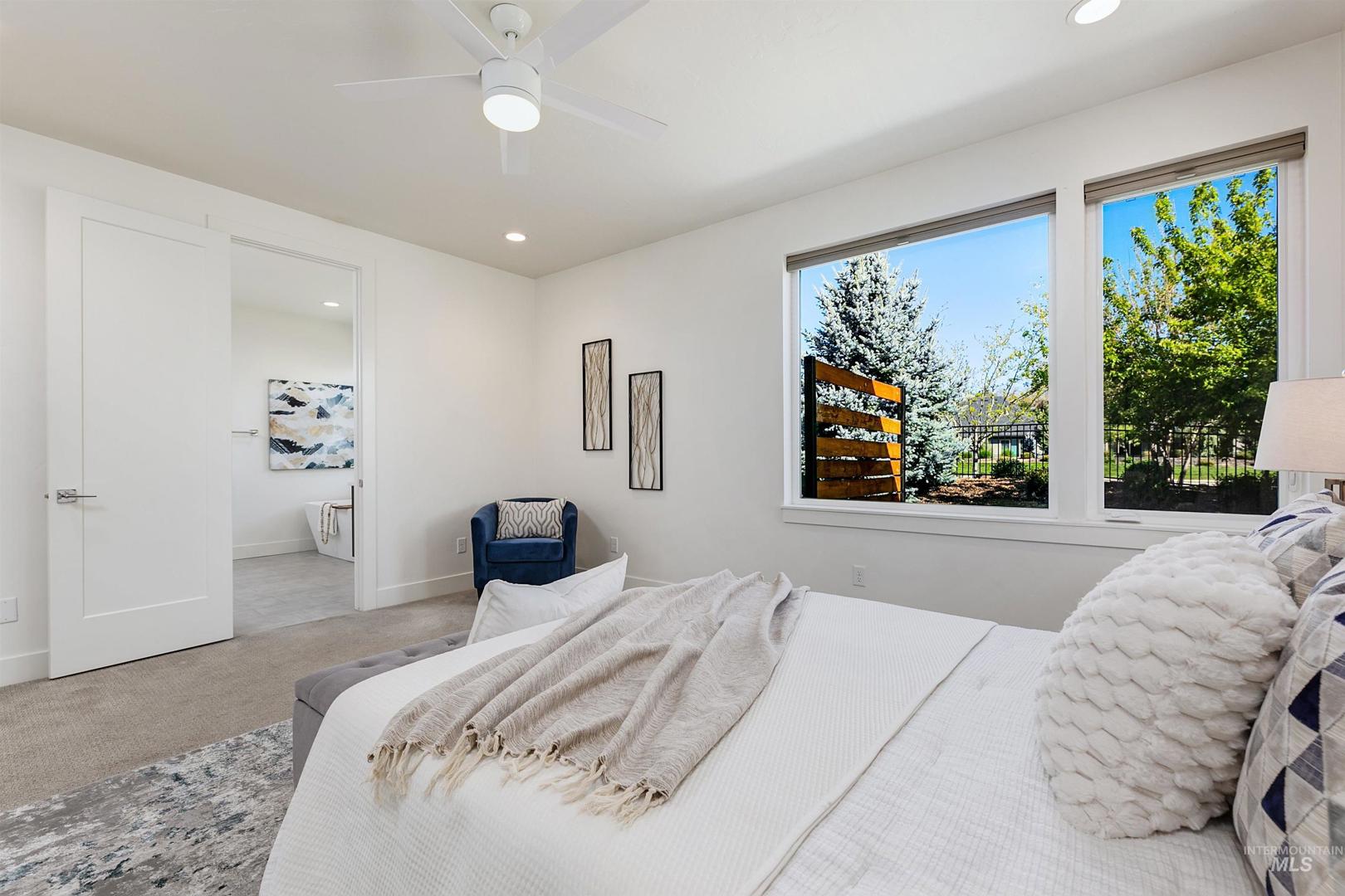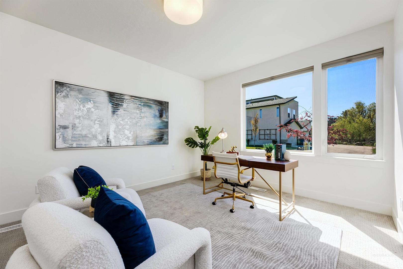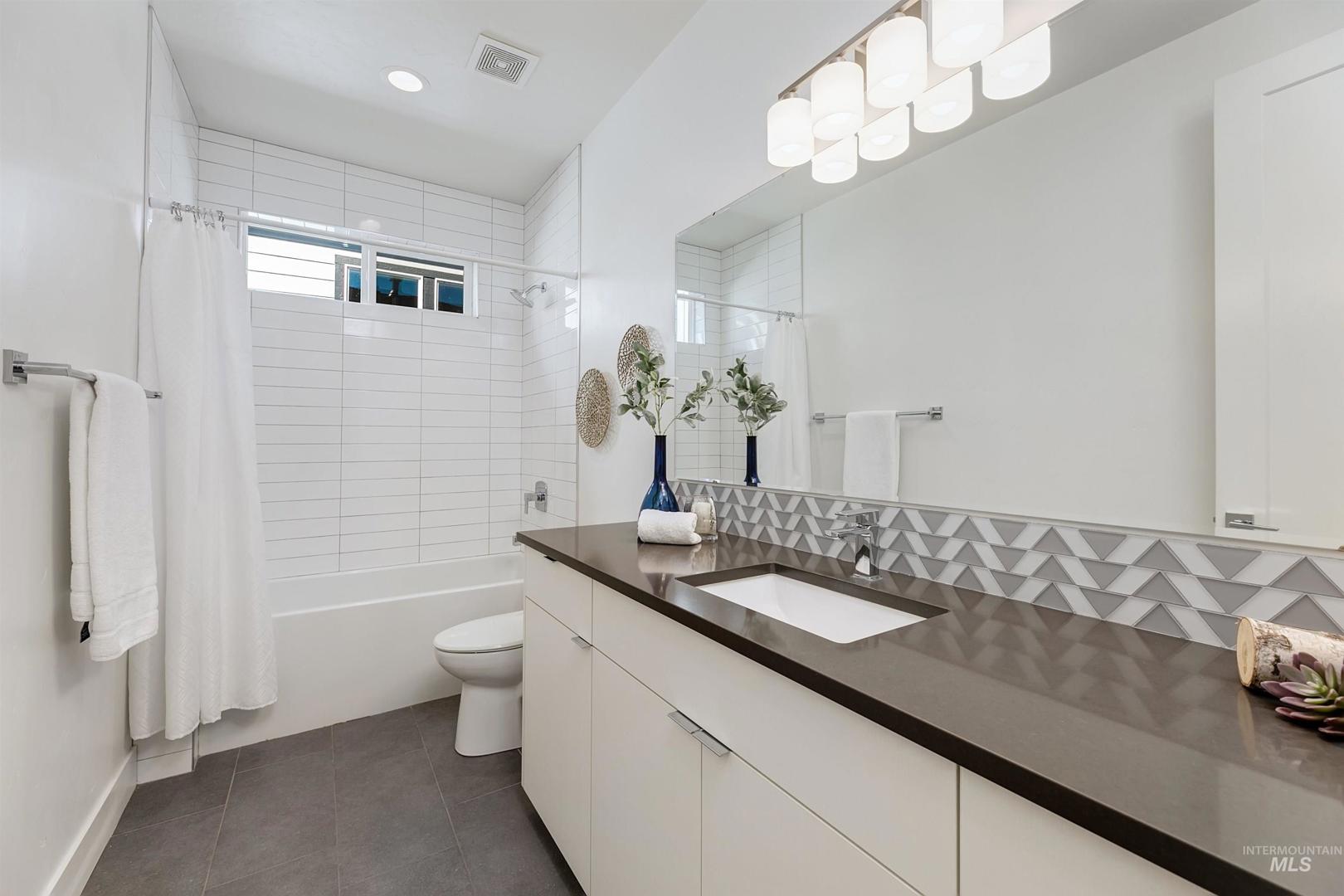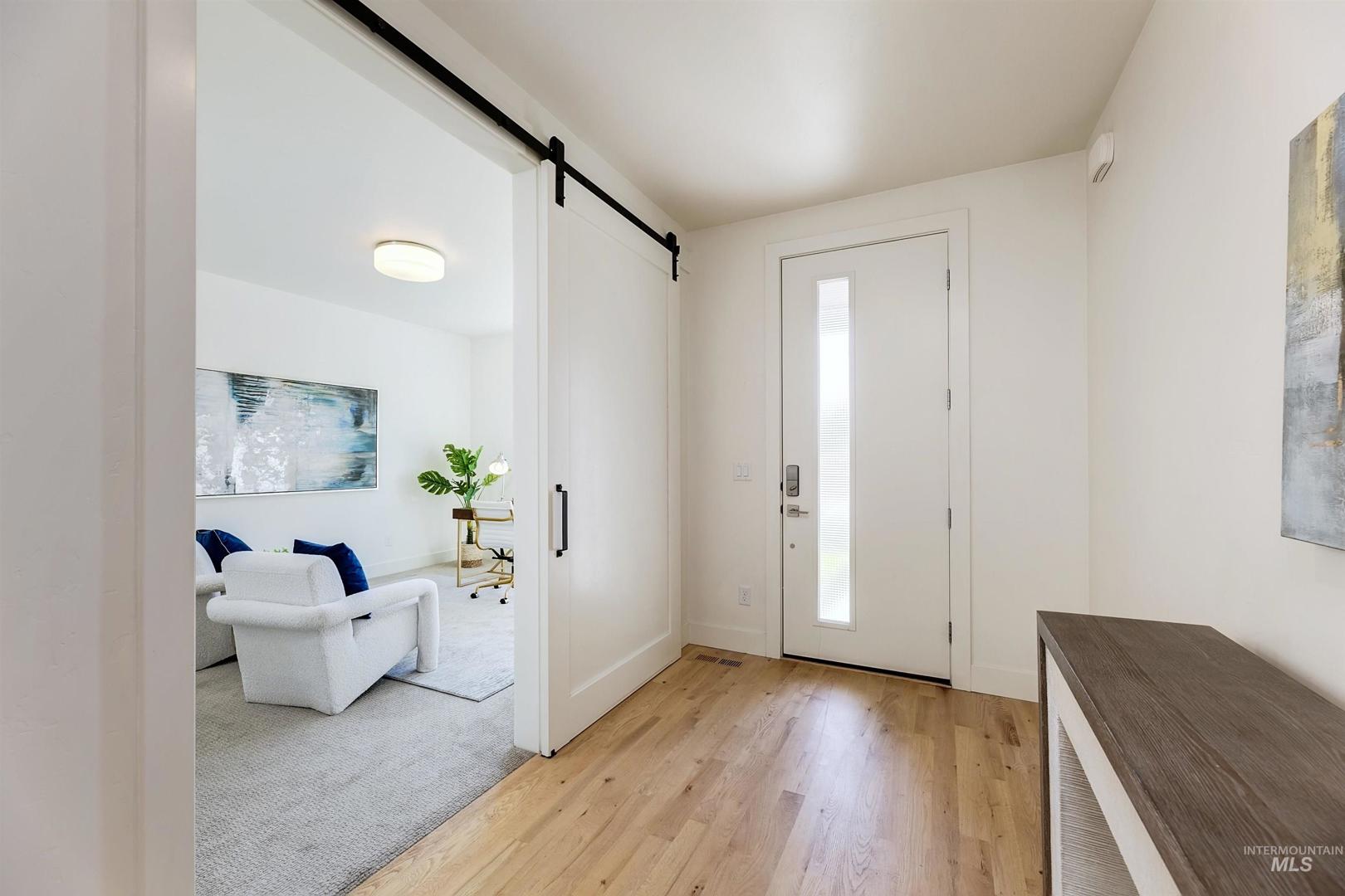 Your opportunity to own a turnkey home in one of Eagle’s most connected and desirable locations - where everything you love about downtown is just moments away. This exceptional single-level residence offers a blend of premier location, refined finishes, and effortless living. Walk or take a one-minute bike ride to dining, shopping, and everyday conveniences, then come home to a beautifully designed and modern residence. Inside, the home is filled with natural light and defined by rich hardwood floors, 12-foot ceilings with exposed beams, and expansive living spaces that balance comfort with elevated design. A gas fireplace with custom built-ins anchors the great room, while 8-foot interior doors and designer window treatments enhance the home’s modern aesthetic. The kitchen features soft-close cabinetry, quartz countertops, and a waterfall island designed as a central gathering space. Thoughtful details include a sleek hood, built-in desk, open shelving, and both toe-kick and under-cabinet LED lighting. Designed for indoor-outdoor enjoyment, the backyard offers an extended covered patio and professionally landscaped grounds - ideal for entertaining. This property provides quick access to nearby parks, the Boise River Greenbelt, and foothill trails for year-round recreation.