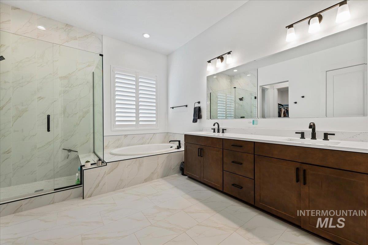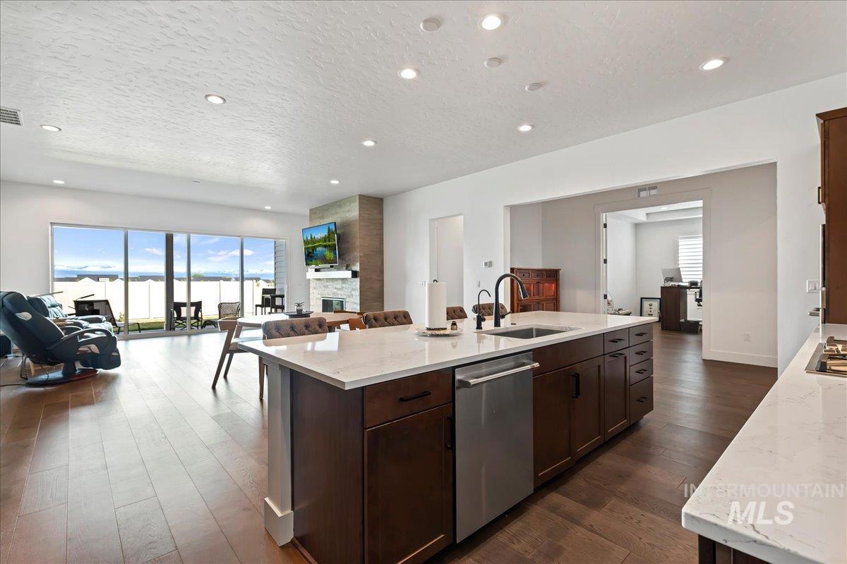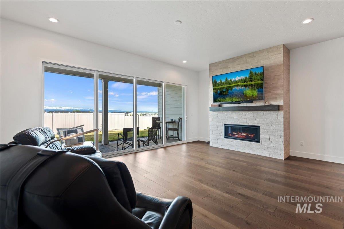 Beautifully upgraded and better than new, this Harley Next Gen floor plan offers premium selections and a layout designed for flexibility. This home is fully move-in ready, with spaces that function well for multigenerational living or accommodating guests. The Next Gen suite includes a second primary bedroom with an attached bathroom and a large walk-in closet. Walk into an open-concept floor plan with beautiful engineered hardwood flooring, a well-appointed kitchen with upgraded cabinetry and surfaces, and a 16’ multi-panel sliding glass door that expands the living space and provides stunning mountain views. The great room includes a cozy gas fireplace, and plantation shutters are installed throughout the home. Additional upgrades include a whole-home Culligan reverse osmosis water filtration system, epoxy-coated garage floors and additional concrete poured for expanded parking. Located in a desirable Star community with convenient access to local amenities. Internet included in HOA annual fee. Schedule your tour today! Some images have been virtually staged.