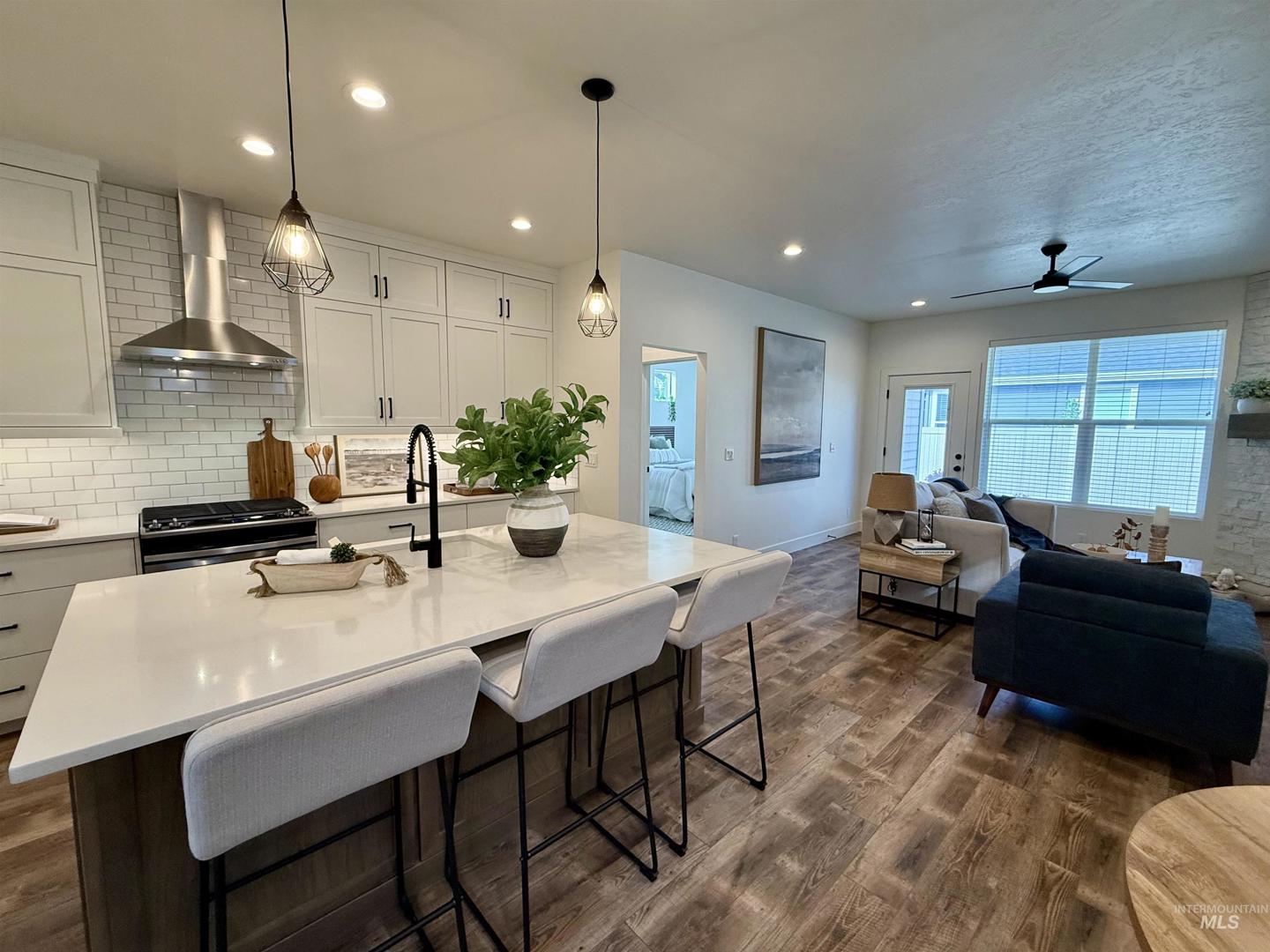 Stunning Mountain-Modern home in highly sought-after location in Meridian! This 3 bed, 2.5 bath, 2 car garage residence features a bright and open floor plan with a main-level master suite featuring a pristine master bathroom and walk-in closet. The kitchen boasts modern granite counters with tile backsplash and flows into a cozy living space with a gas fireplace. Enjoy modern amenities like central air and fully automatic sprinkler system. Relax on the covered patio or at the community pool and pickle ball courts. Home located within minutes to dining, shopping, and entertainment at The Village in Meridian! Don’t miss this opportunity!