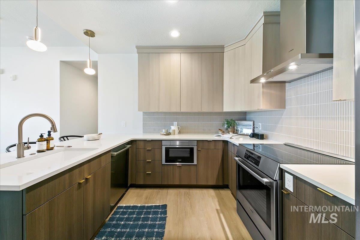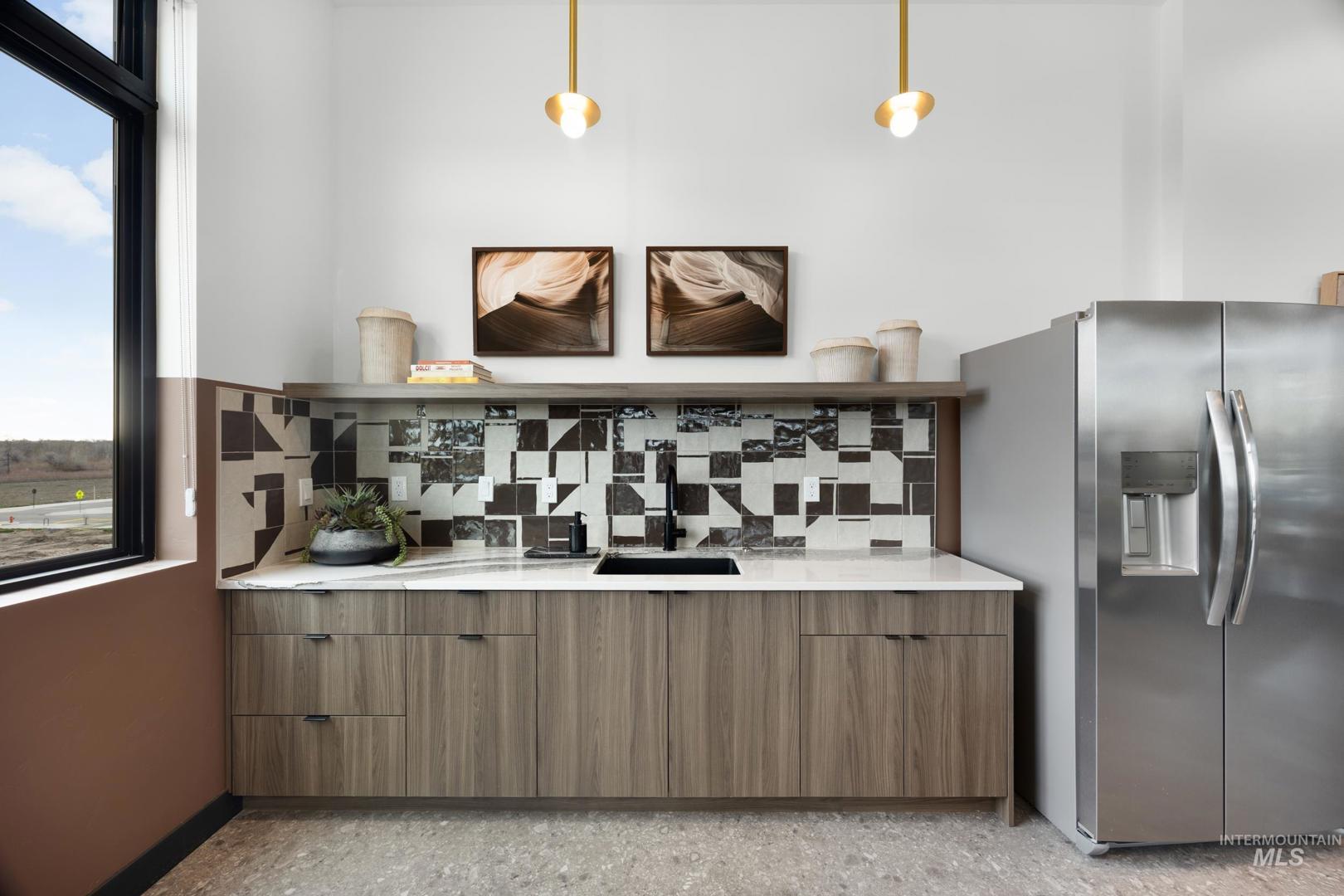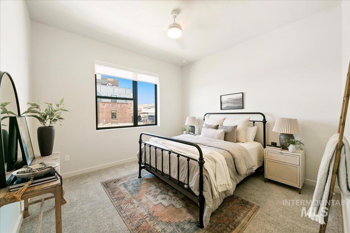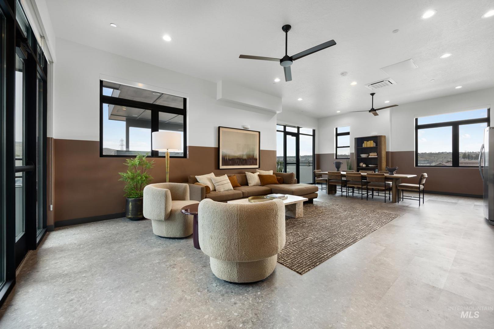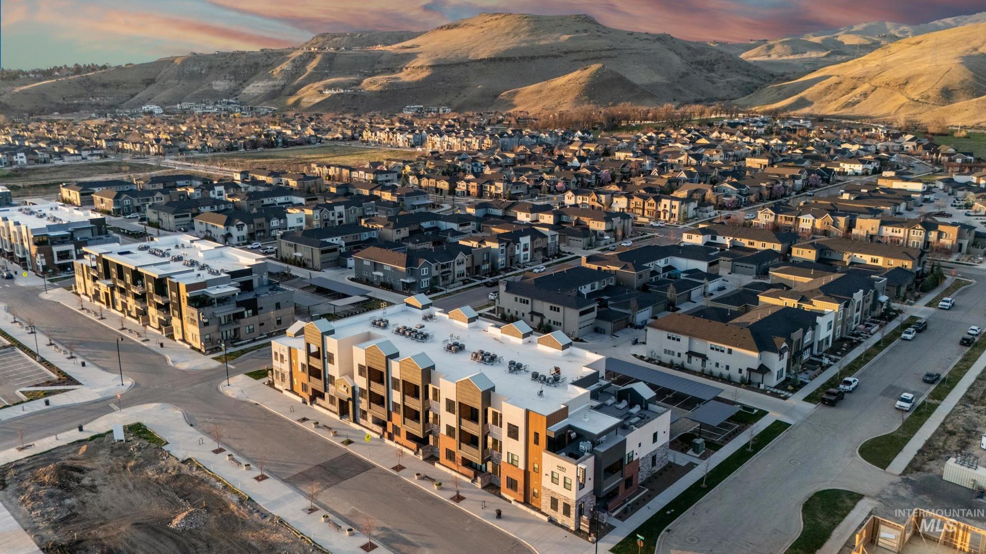 Open Sat 12-3 & Tues 10am-12pm! Residence 110 at The Murray - Step into elevated living in this rare main-level corner 3-bedroom, 2-bath condo in the brand-new Murray building, nestled in Boise’s coveted Harris Ranch neighborhood. Perfectly positioned just steps from the Boise River, Greenbelt trails, parks, & entertainment, yet only minutes from vibrant downtown Boise, this home delivers the best of both worlds — sophisticated urban convenience with nature right at your doorstep. Enter effortlessly through your private covered patio, designed for seamless indoor-outdoor living. Inside, the spacious great room & open kitchen create an inviting, airy atmosphere, beautifully enhanced by corner windows that flood the home with natural light. Premium finishes elevate every detail: sleek quartz countertops, beautifully tiled bathrooms, Bosch appliances, energy-efficient fiberglass windows, & e-shade window coverings. This single-level retreat offers exceptional comfort & convenience, including a covered assigned parking space, oversized personal storage, & dedicated indoor bike storage. Residents also enjoy exclusive access to outstanding community amenities: a sparkling pool, expansive rooftop deck with stunning views, & a stylish social clubhouse. Experience true low-maintenance luxury — more time for adventures along the river, exploring downtown, or simply relaxing at home.