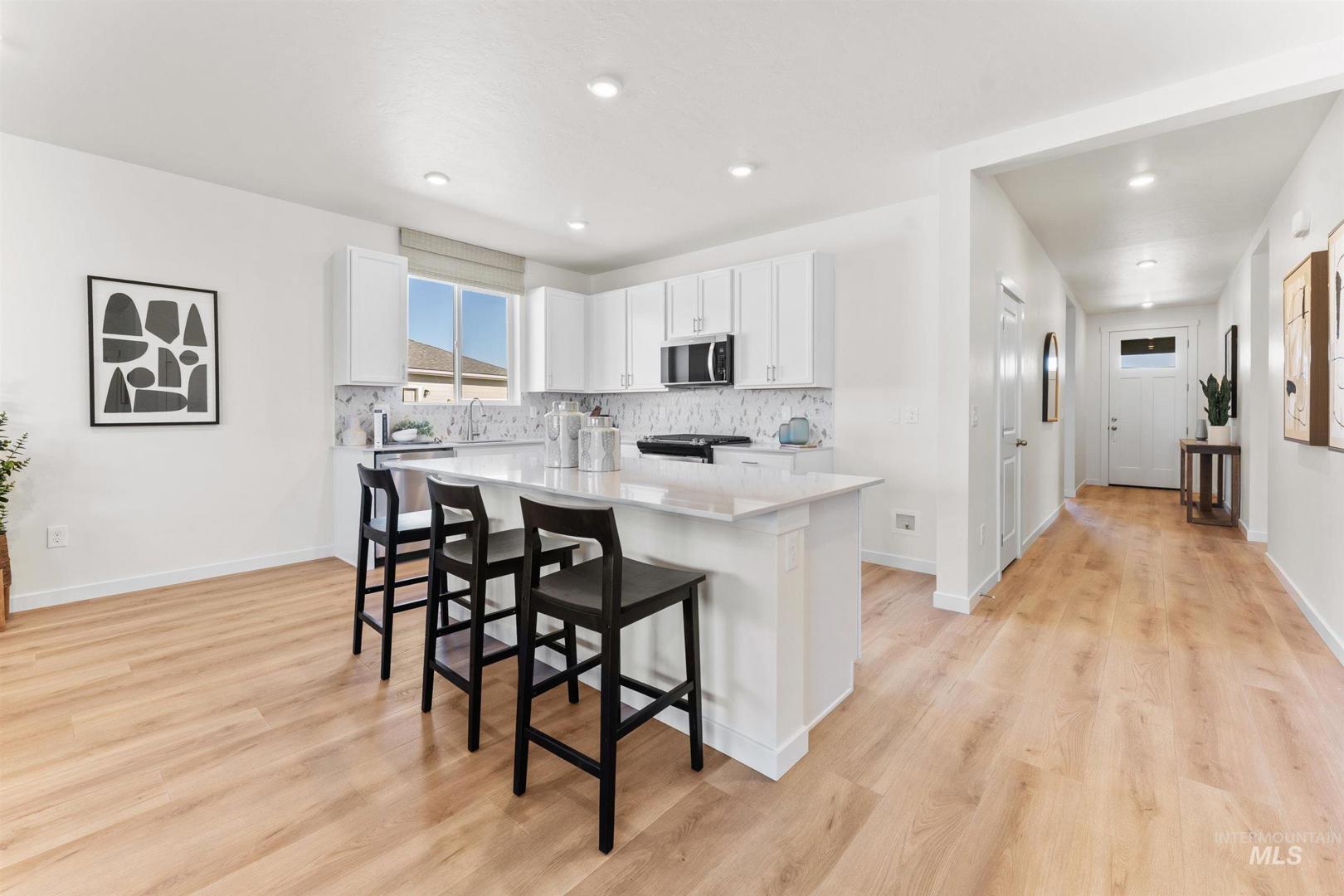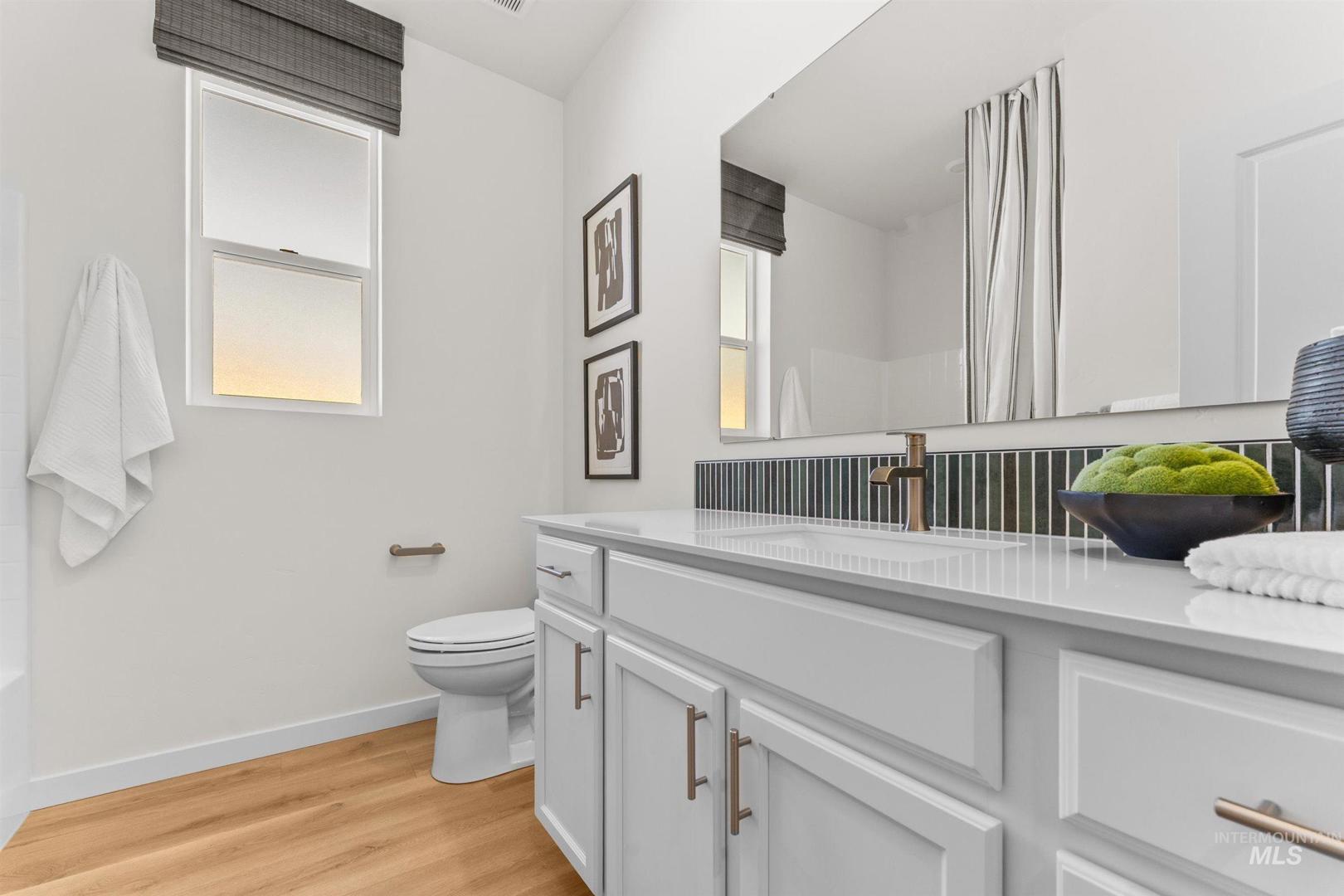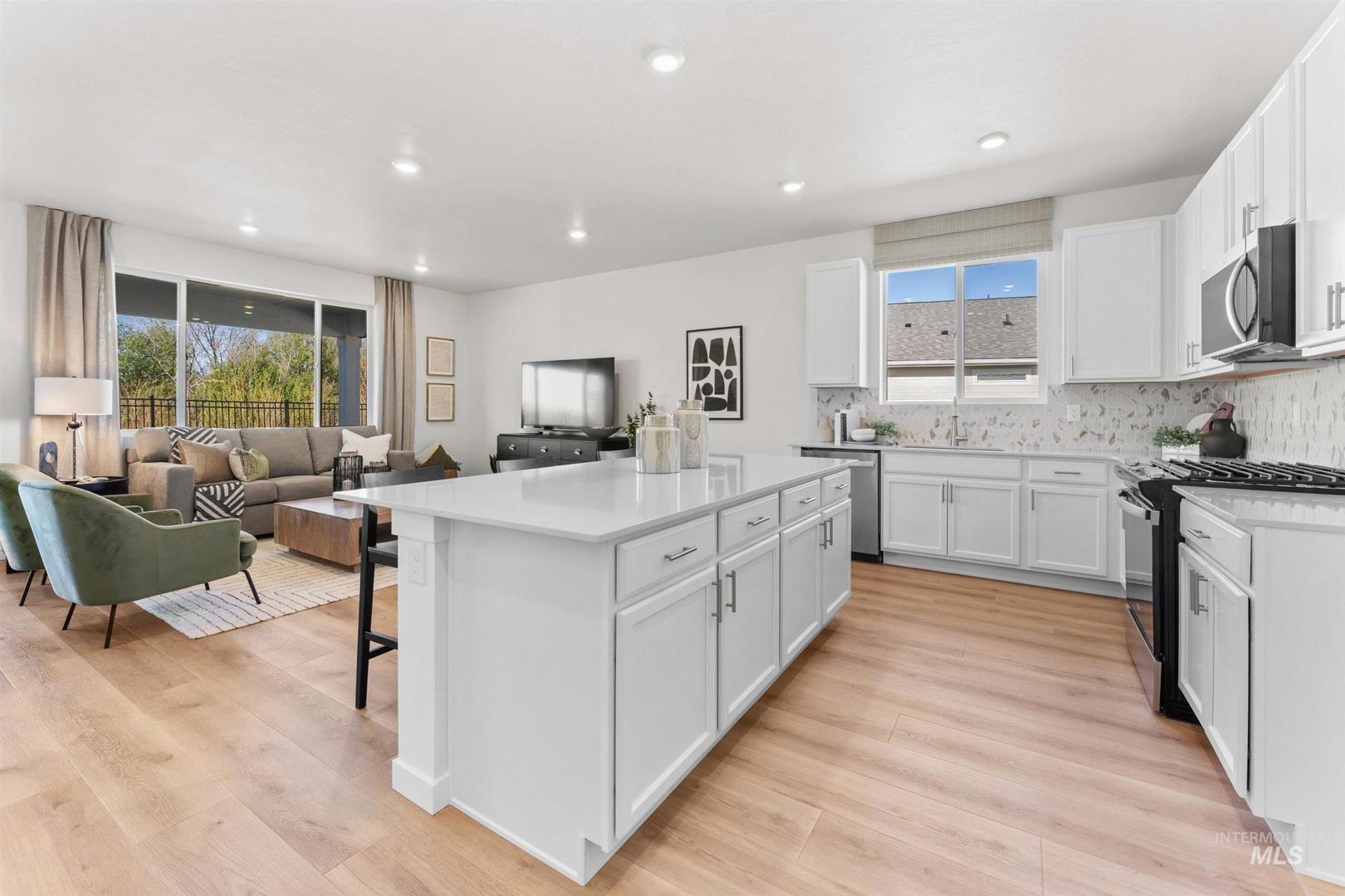 This stunning, single-story home showcases an open floor plan and luxury vinyl plank flooring throughout the kitchen and wet areas. The kitchen has soft close doors and stainless steel appliances. Relax in the primary suite, which features a connecting bath that offers a dual-sink vanity, full shower and walk-in closet. Additional highlights include dedicated laundry room and smart thermostat. The back yard provides the ideal setting for outdoor entertaining and leisure on Indian Creek. Photos will be updated next week. See sales counselor for approximate timing required for move-in ready homes.