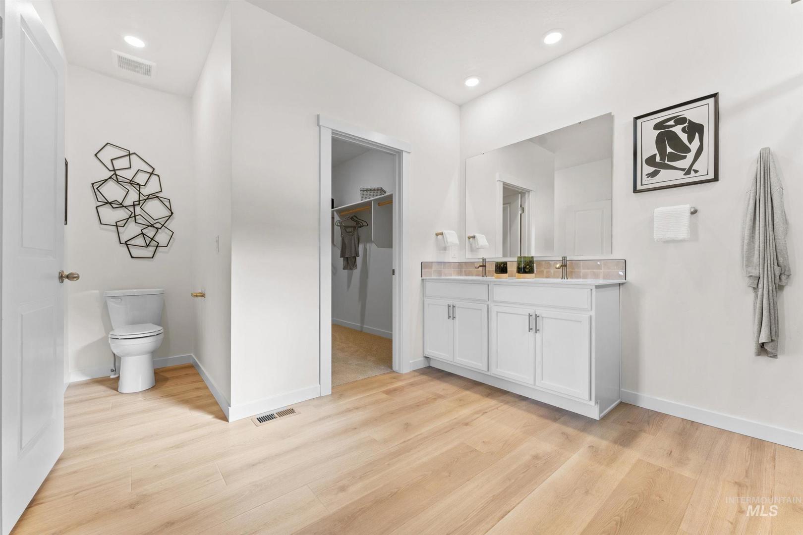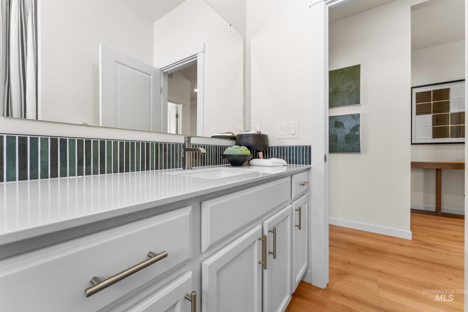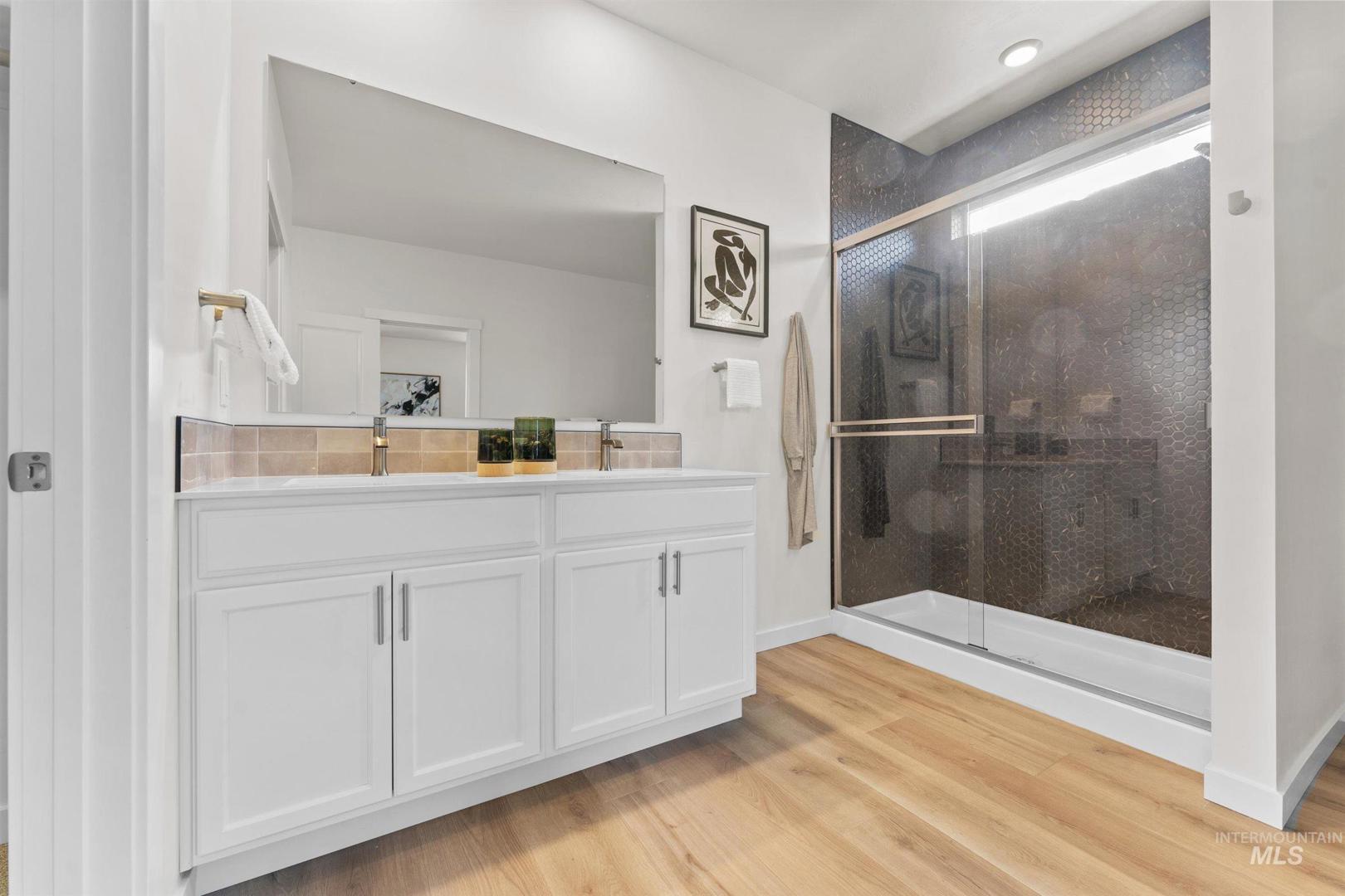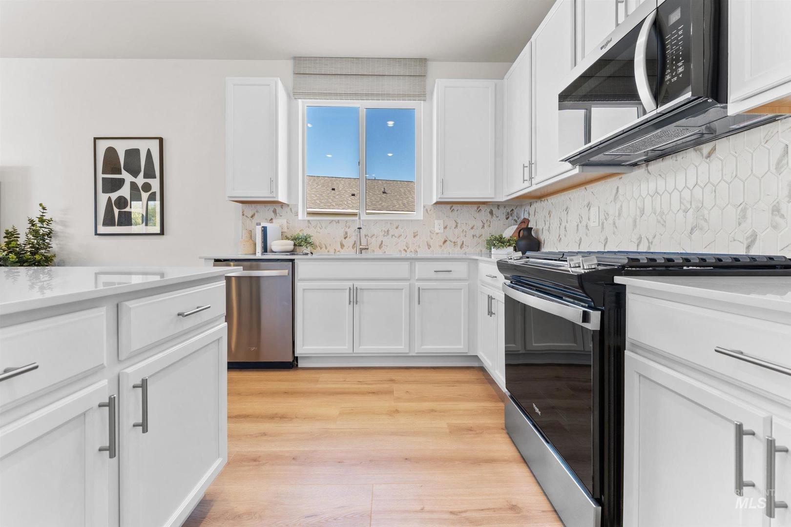This stunning, single-story home showcases an open floor plan and luxury vinyl plank flooring throughout the kitchen and wet areas. The kitchen has soft close doors and stainless steel appliances. Relax in the primary suite, which features a connecting bath that offers a dual-sink vanity, full shower and walk-in closet. Additional highlights include dedicated laundry room and smart thermostat. The back yard provides the ideal setting for outdoor entertaining and leisure on Indian Creek. Photos will be updated next week. See sales counselor for approximate timing required for move-in ready homes.