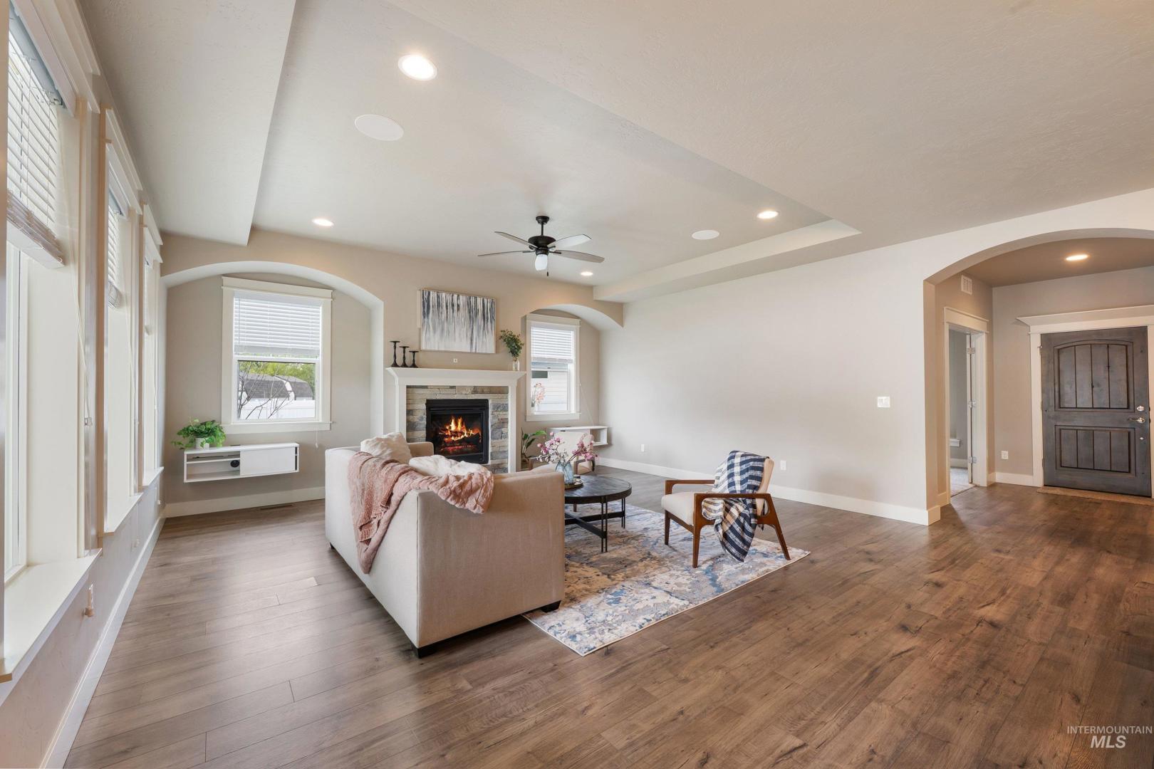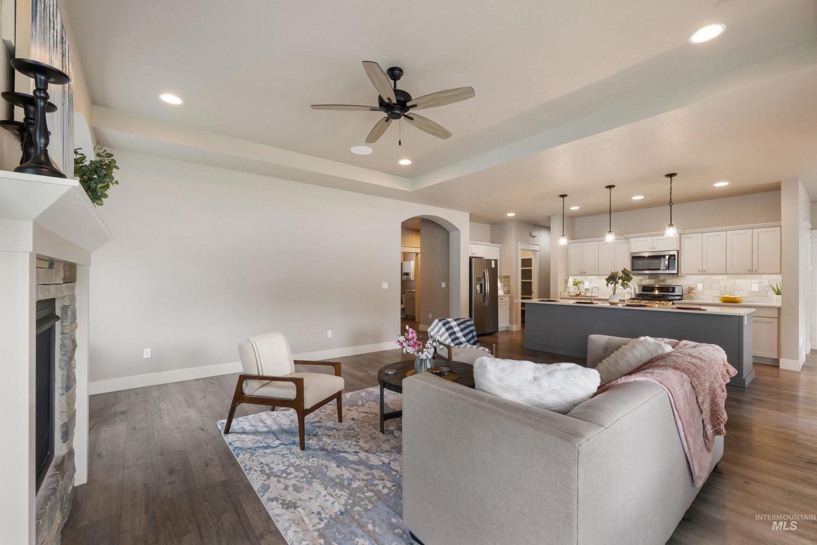 Welcome to this beautifully crafted two-story home in the desirable Pheasant Meadows community, known for its upscale feel, wide streets, and walking paths—conveniently located near the freeway, shopping, and more. This home features a spacious primary suite with a soaker tub, separate shower, dual vanities and a walk-in closet, plus three additional large bedrooms. The kitchen is designed for entertaining with quartz countertops, tile backsplash, extra-large kitchen island with breakfast bar and rich coffee-colored cabinetry, opening to a bright living area with a gas fireplace and large windows for natural light. Kitchen also includes smart appliance features. Reverse osmosis system installed. Component surround system ready with 2 ceiling speakers included. Lot includes full auto irrgiation and french drain system. Enjoy the covered patio and backyard space, included storage shed. Central vacuum plumbed. Move-in ready with style, comfort, and quality—don’t miss this one!