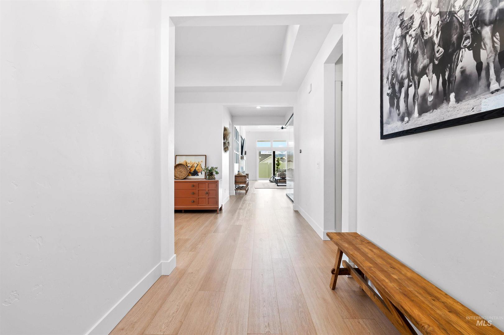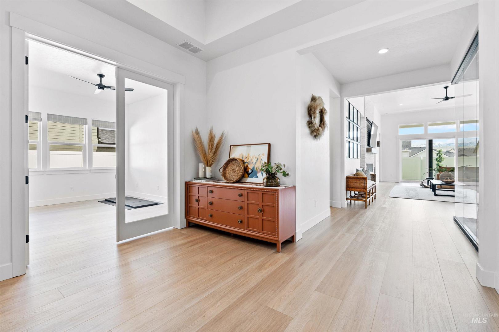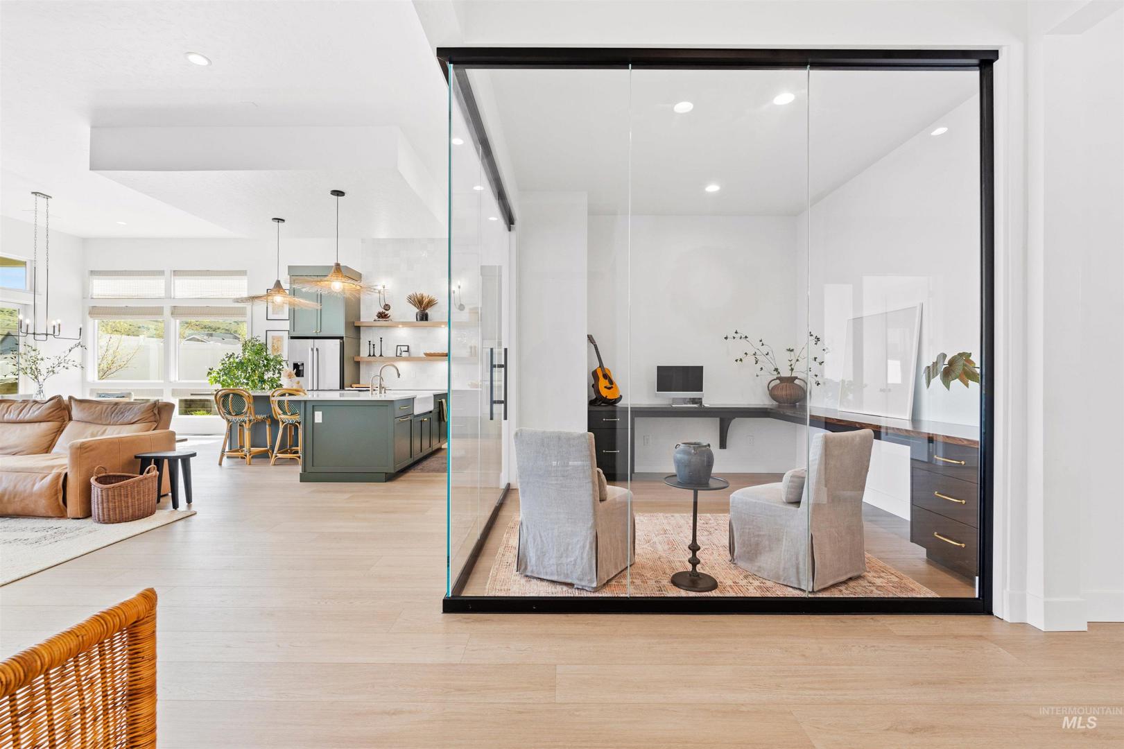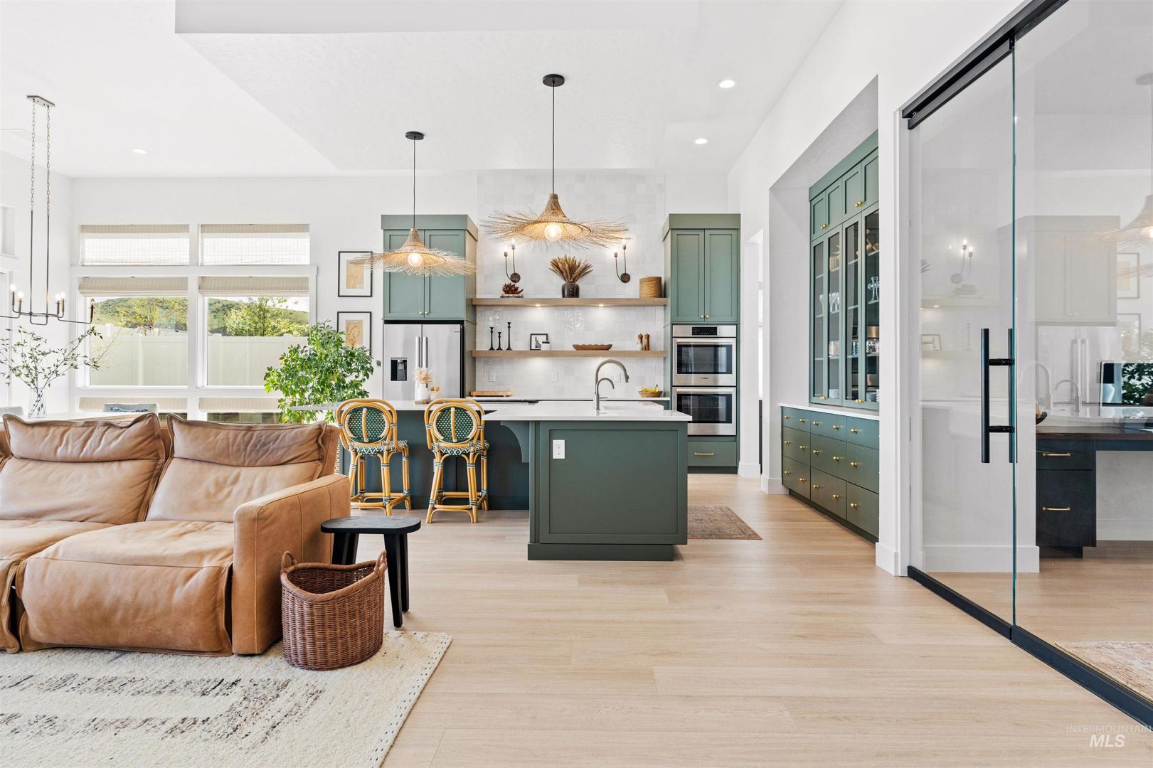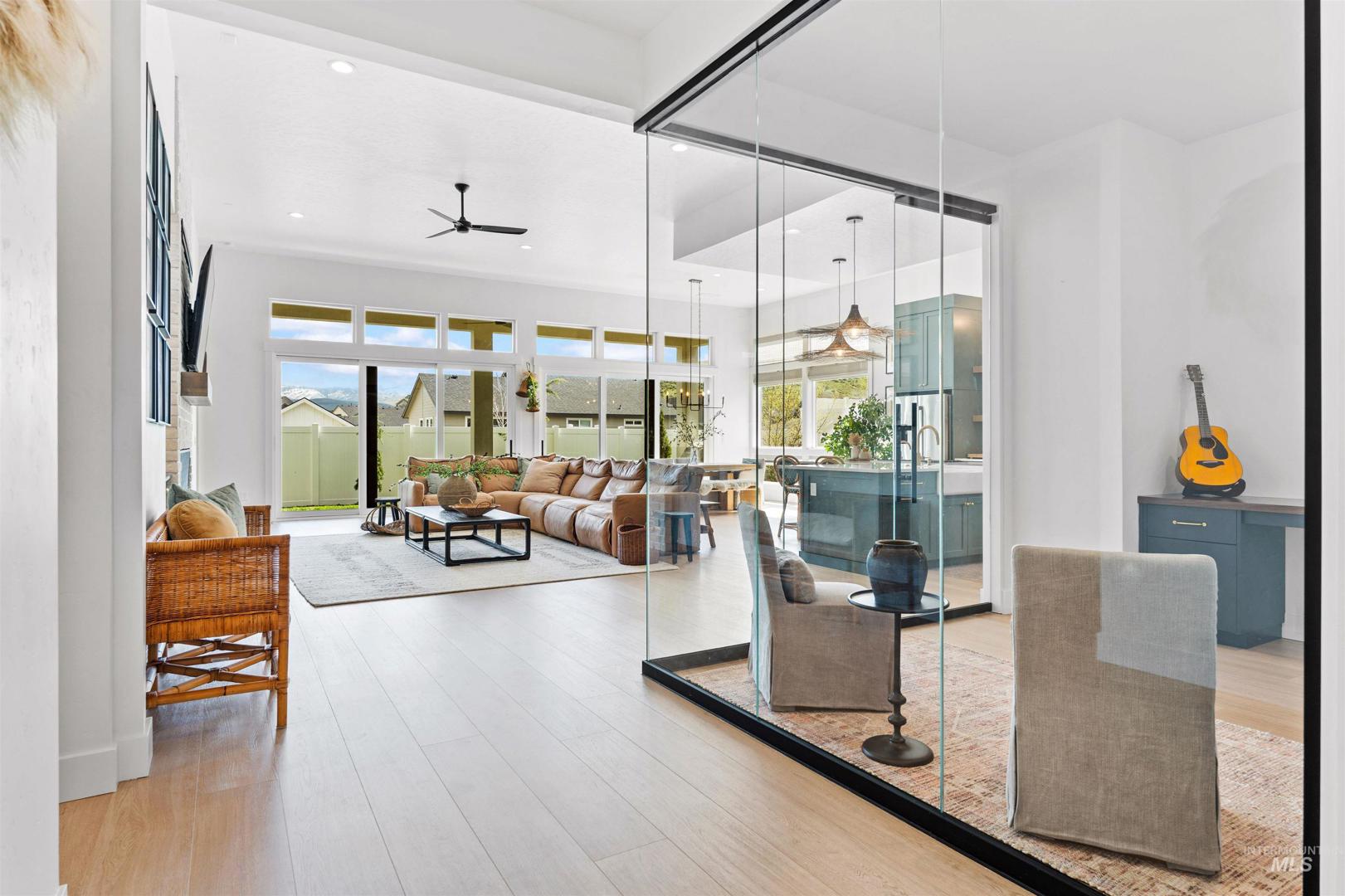 Immerse yourself in refined living with nearly $200K in upgrades in this stunning single-level Dry Creek Ranch home, perfectly positioned on a premium lot surrounded by breathtaking foothills and abundant natural light. Thoughtfully designed with a private guest suite and Jack-and-Jill bedrooms—each offering en-suite baths and walk-in closets—plus a separate den for teen hangouts and two private offices. Brand-new flooring and a gourmet kitchen featuring custom appliances, quartz countertops, downdraft hood, floating shelves with puck lighting, and full-height tile backsplash. Entertain effortlessly in the butler’s pantry with prep sink, dishwasher, beverage fridge and a spacious adjacent walk-in pantry. The expansive great room impresses with dual multi-slider doors and a 72" linear fireplace framed in full-height masonry. The spa-inspired primary suite offers a freestanding tub, dual vanities, an upgraded tile shower, and spacious his-and-hers walk-in closets. Additional highlights include upgraded tile in all baths, low maintenance backyard, elegant woven wood shades & custom drapery. Enjoy resort-style living with miles of trails, clubhouse, 8800 sq ft community center with coffee shop, pools, fitness center, pickleball courts, volleyball, basketball, equestrian facilities, neighborhood farm, & sweeping foothill views. All within minutes to downtown Eagle restaurants and shops.