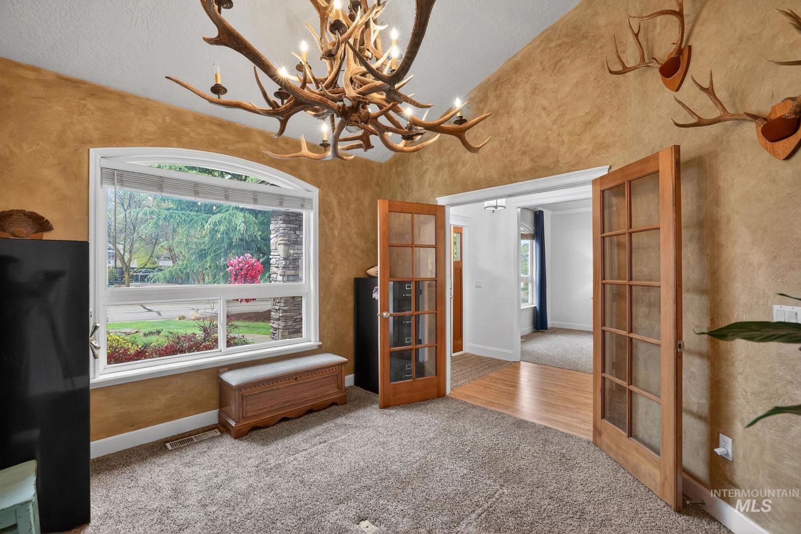 Experience the perfect blend of modern updates and tranquil outdoor living in Eagle’s coveted Lexington Hills. This meticulously maintained 4-bedroom, 3-bathroom home features a versatile walk-out basement and sits on a premium lot bordering a lush community common area, serene creek, and pond. A standout feature is the private executive office, strategically designed with its own external access and a dedicated half-bath—the ultimate professional workspace without sacrificing home privacy. Move in with total peace of mind thanks to extensive recent upgrades: brand-new carpet (2026), fresh paint exterior 2024 and interior paint 2025, a new AC (2023), high-efficiency Heater (2021), and a newly installed whole-home water conditioner. The entire perimeter was fully fenced in 2025, providing immediate security and privacy. Step outside to enjoy the best of the Lexington Hills lifestyle, with miles of walking paths, waterfalls, and park-like views right from your backyard.5 Minute walk to elementary school, 1.2 miles to Eagle Middle and 3 Miles to Eagle High. 10 minute walk to Boise Foothills trails and 5 minute drive to downtown Eagle, this turn-key gem offers rare functionality in an unbeatable setting. BTVAI