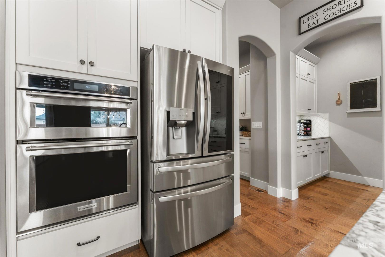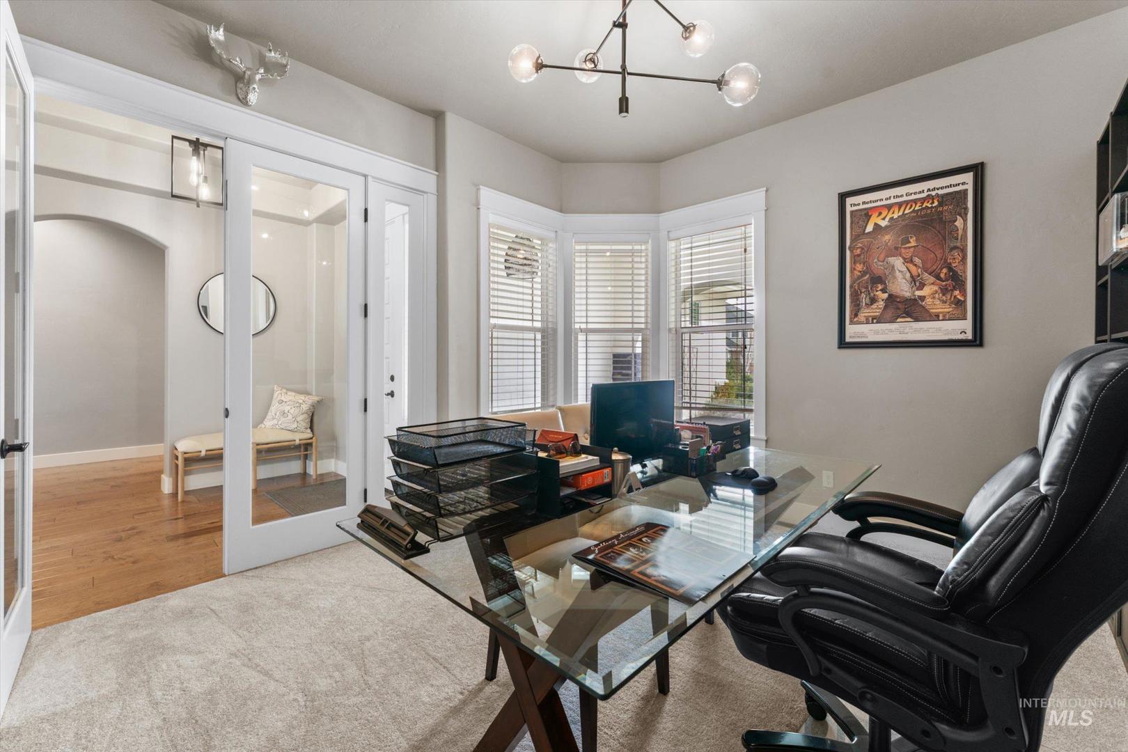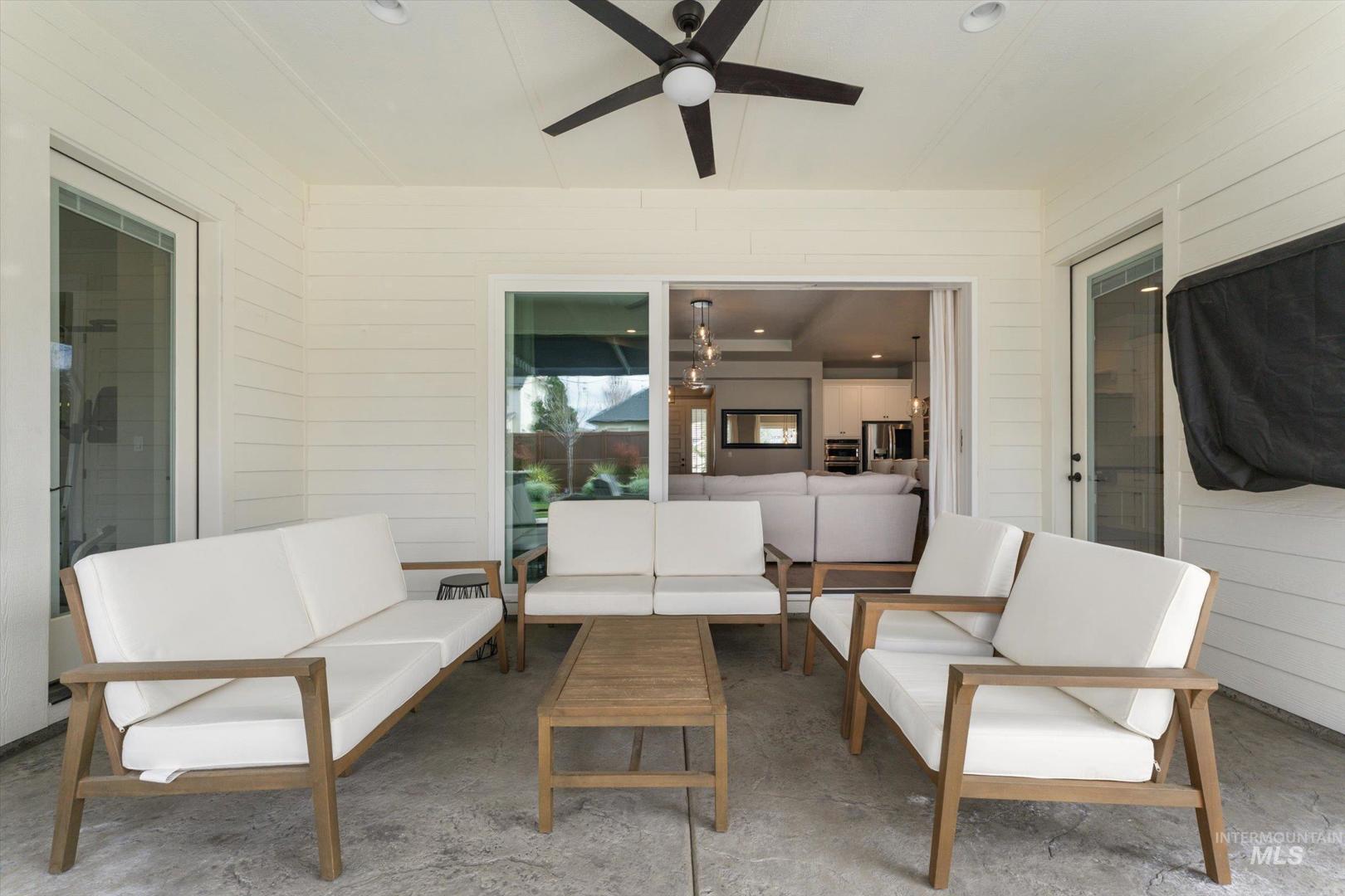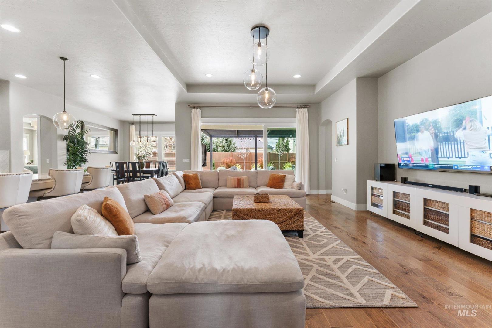 A True Gem, this extraordinary, elegant home blends clean architectural design with expansive living and high-end amenities. Located in Lilac Springs along the highly desirable western corridor of Floating Feather in Eagle. A beautiful open floorplan with a split Bedroom design, 5 Bedrooms, 4.5 bathrooms & a designated office all on a single level! 4 bedrooms have private bathrooms and walk-in closets, one which is a 2nd primary suite, 5th Bedroom is currently used as a gym. Engineered hard wood and new carpet throughout the home. Kitchen features quartz counter tops, KitchenAid appliances, designated beverage bar, and generous pantry. The primary suite is a spa-like retreat, with quartz counter tops, tiled floors, walk-in shower & a stand-alone soaking tub. This home is ideal for multi-generational living and with over $90,000 in landscaping & hardscaping this is an entertainer`s delight. Backyard & Patio feature custom pergola, built in gas fire pit, built in gas grill, patio TV and large shed. The home has storage galore, with 7 closets in addition to the 5-bedroom closets, including a 2nd pantry in laundry room. Spacious 4 car garage provides extra space for recreational equipment & outdoor toys. Relax and enjoy the community pool and have fun on the Pickleball & Tennis Courts!
