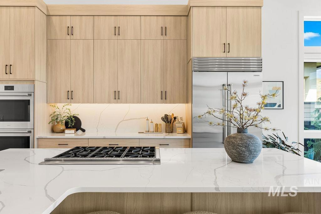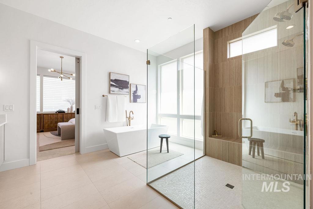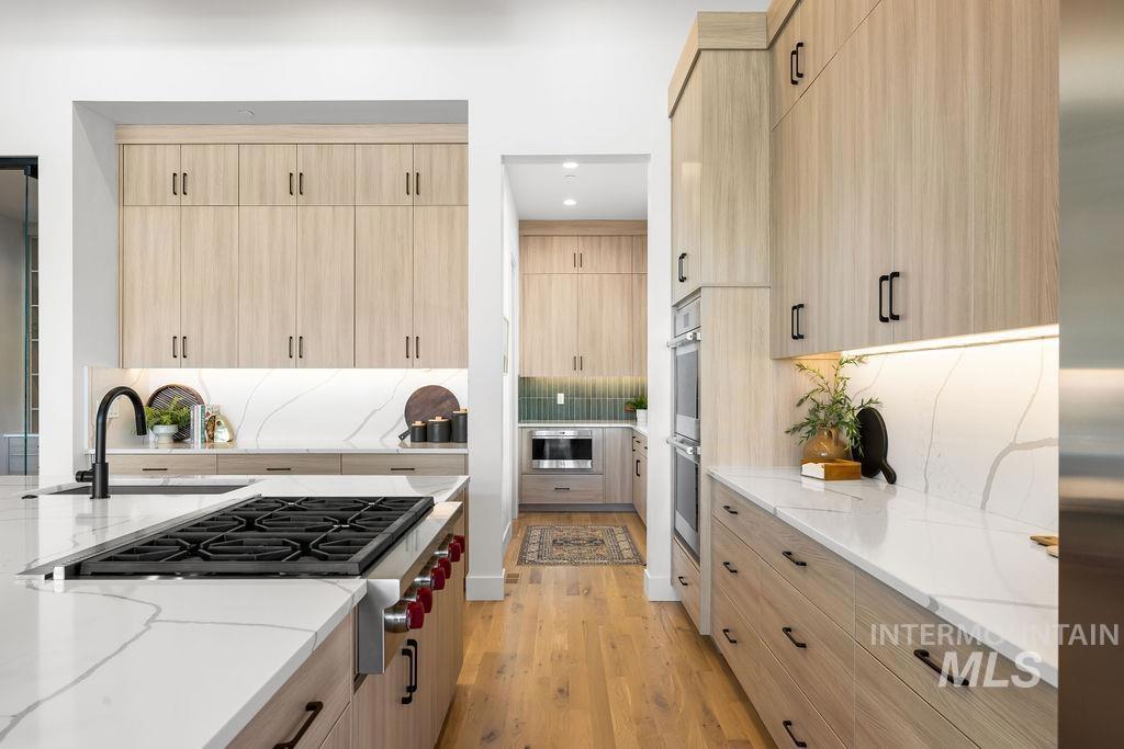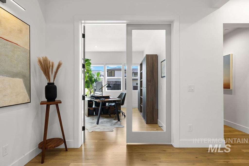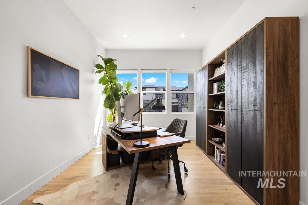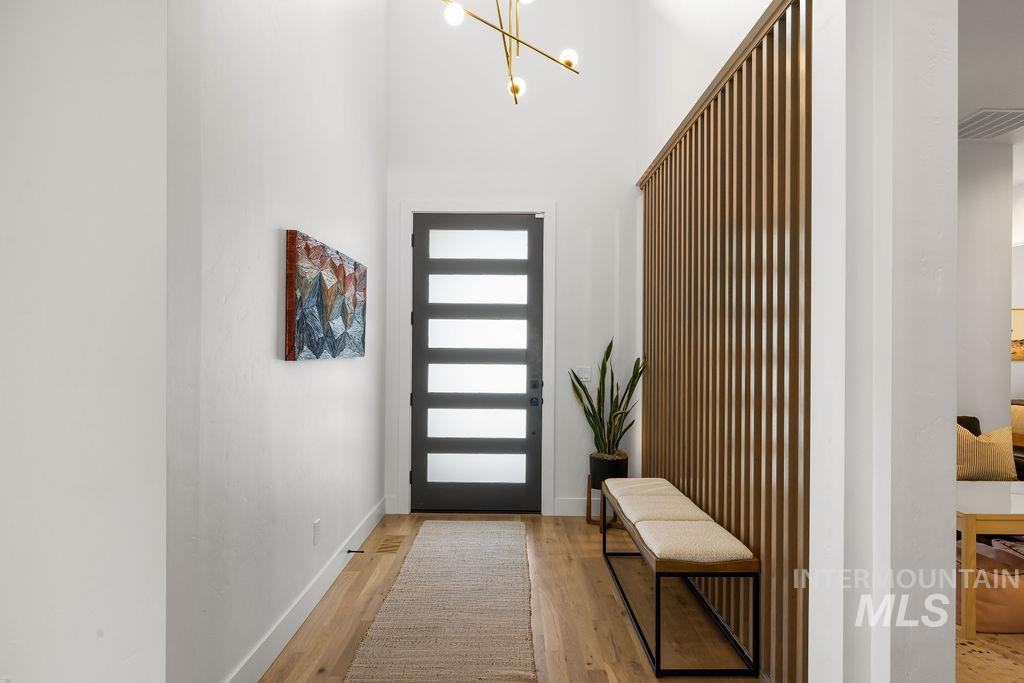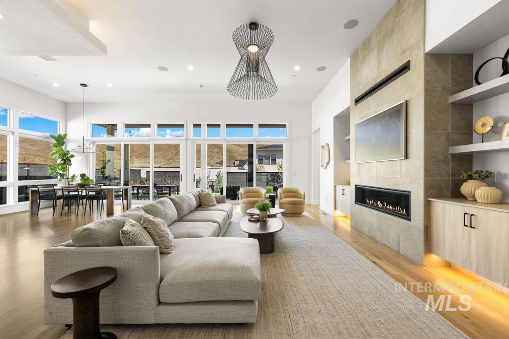 Nestled in Harris North’s Pinnacle neighborhood in the scenic East Boise Foothills, this better-than-new luxury single-level home showcases designer upgrades and finishes throughout. Enjoy breathtaking surroundings with easy access to foothills trails, Boise River and Greenbelt, Warm Springs Golf Course, numerous parks, and nearby eateries in Harris Ranch and Bown Crossing. The thoughtfully designed floorplan offers an expansive great room with a stunning fireplace wall, multi-slide doors opening to a spacious covered patio, and surround sound - ideal for entertaining. Two dedicated offices include a glass-enclosed workspace with built-ins (perfect homework station), and a desirable split bedroom layout, all with walk-in closets. The private primary features a spa-like ensuite and his/hers closet space that connects to a convenient laundry room. The chef’s kitchen is equipped with Wolf and Sub-Zero appliances, butler’s pantry, and large walk-in pantry. The true three-car garage includes an expanded double garage with epoxy floors, built-in cabinetry, slat walls, and workbench. Additional features include custom Hunter Douglas shades, EERO wifi system, fire sprinkler system, water softener and filter, and AV system. Corner lot on nearly ~1/3 acres is fully fenced with landscape enhancements. Zoned for top Boise schools!