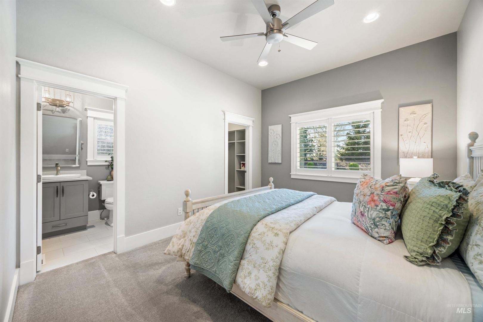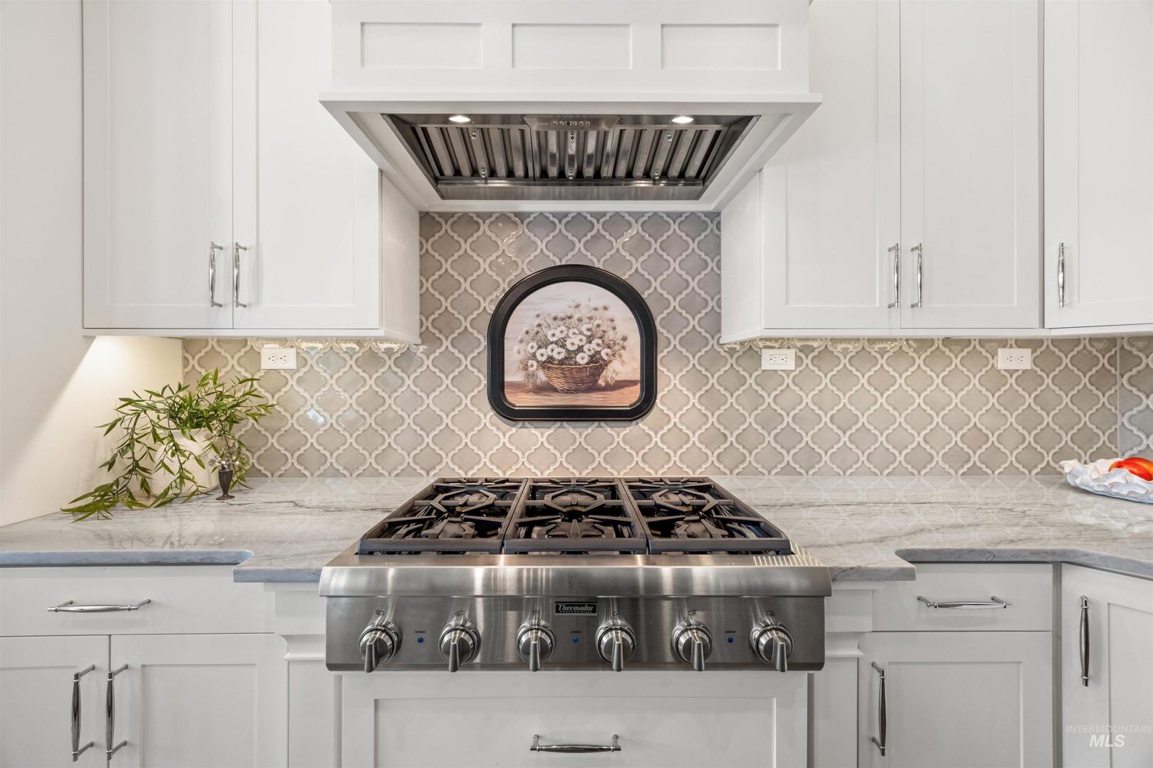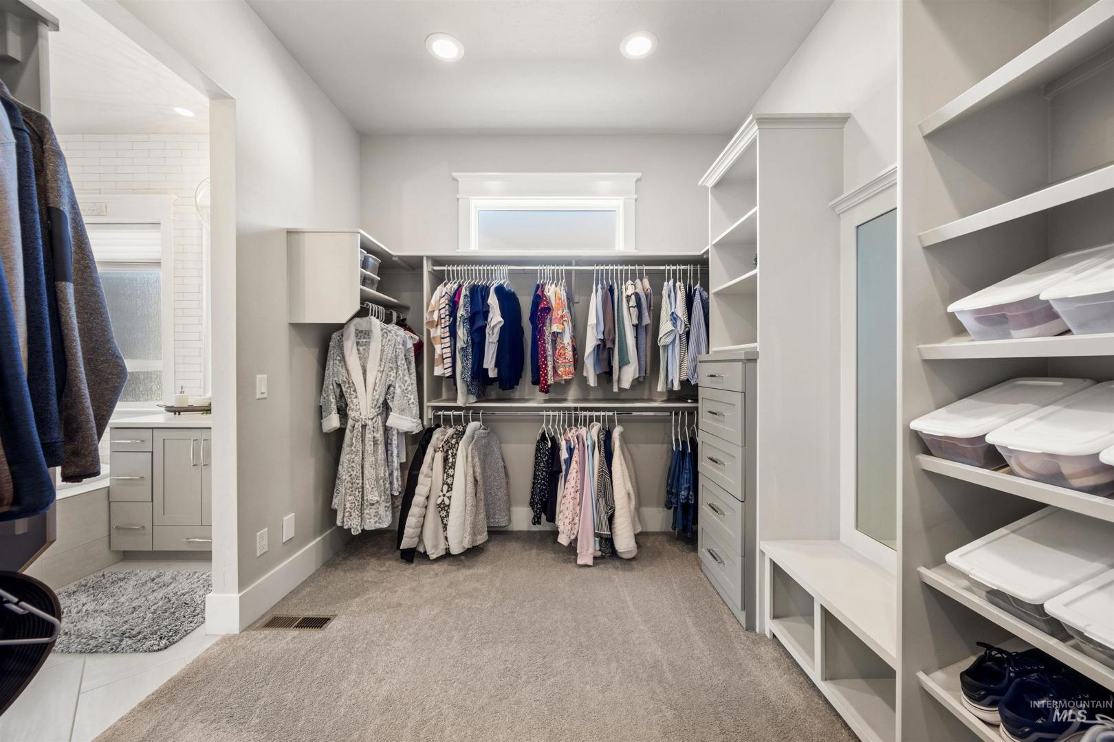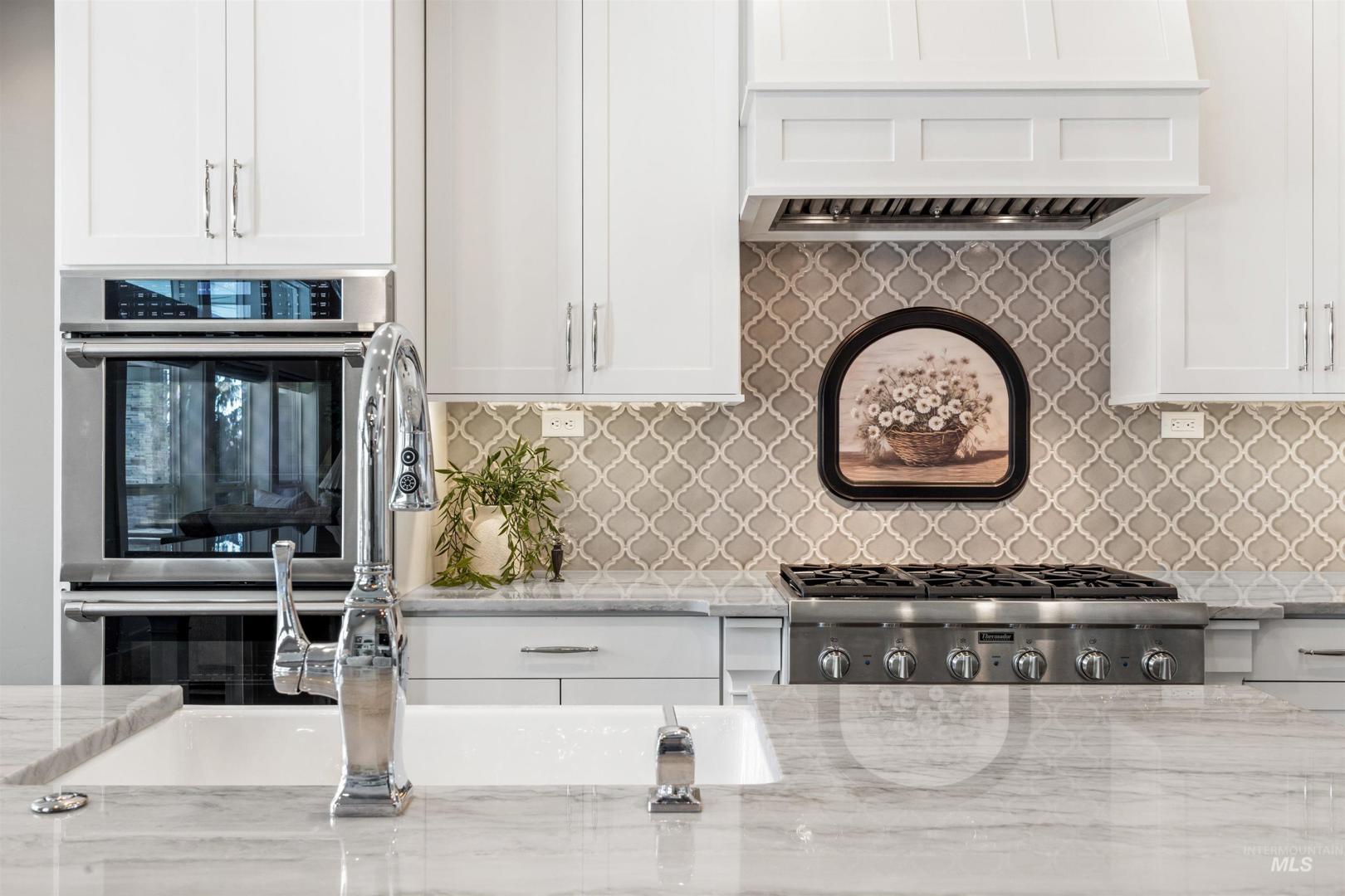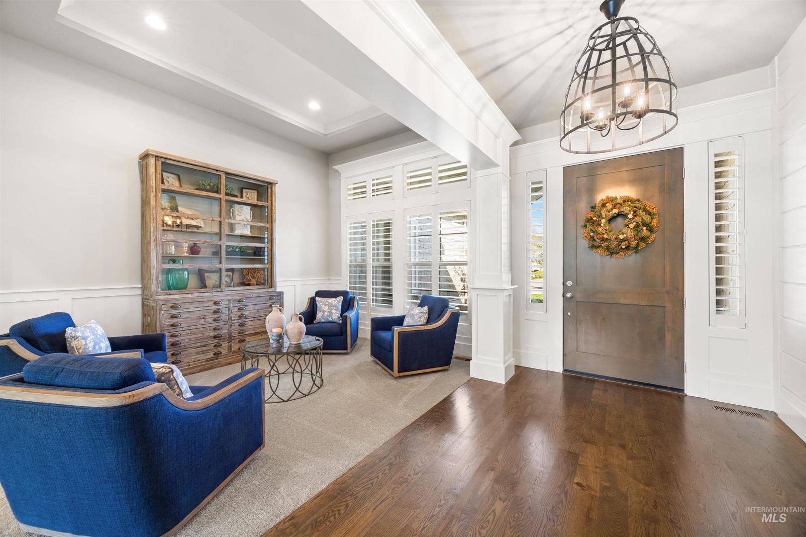 Welcome to one of the most sought after home designs by this renowned local builder - James Clyde Homes! This is your opportunity to own the “Claire Eliza” offered by the original owners. Located on a quiet cul-de-sac in Eagle’s Syringa community, this thoughtfully designed home offers high-end finishes and functional upgrades throughout. The main living area features tall ceilings with exposed beams, a gas stone fireplace, and built-in shelving that adds both character and storage. The kitchen is equipped with Thermador appliances, including double ovens, quartz countertops, a breakfast bar, a walk-in pantry with appliance shelf, and built-in spice storage designed for convenience and organization. Outdoor living is a standout feature, highlighted by a 14x40 pool, garden space, greenhouse, and built-in storage shed. The private backyard setting includes no rear neighbors, creating a rare sense of space and seclusion. Additional features include a garage garage that is heated and air conditioned, wiring for a portable generator, and a sprinkler system with drip irrigation. The home is also plumbed for central vacuum and includes a water softener system. Situated in Eagle, this home offers convenient access to nearby schools, parks, and local amenities while maintaining a quiet residential feel. BTVAI