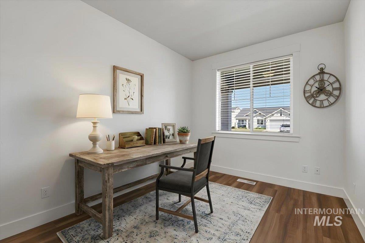 Better than new and truly move-in ready, this beautifully upgraded 3-bedroom, 2-bath home features the award-winning “Reed” floorplan by Toll Brothers, offering an open, light-filled layout designed for modern living and effortless entertaining. From the moment you enter, you’ll appreciate the seamless flow from the entry to the great room, dining area, and stunning kitchen complete with quartz countertops, stainless steel appliances, and upgraded island pendant lighting and dining room chandelier, all overlooking a covered patio for ideal indoor-outdoor living. A private home office sits just off the entry, while the spacious primary suite is tucked away for privacy and includes a large walk-in closet, dual sink vanity, and a private water closet. Two additional bedrooms, a full bath, and a convenient laundry room round out the home. Unlike new construction, this home includes washer, dryer, and refrigerator, along with upgraded ceiling fans, wood blinds throughout, and fully landscaped front and backyard—offering immediate comfort, style, and value with no extra costs or wait. Will include a one-year warranty.