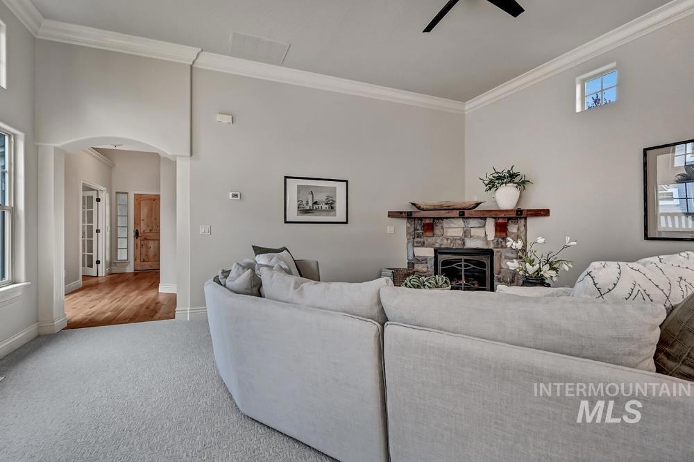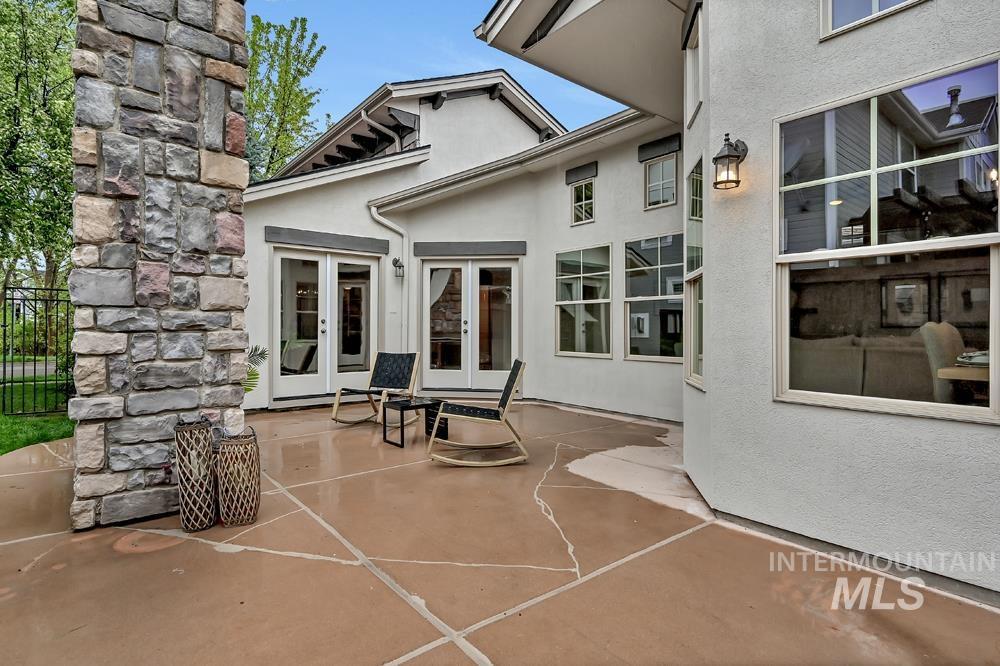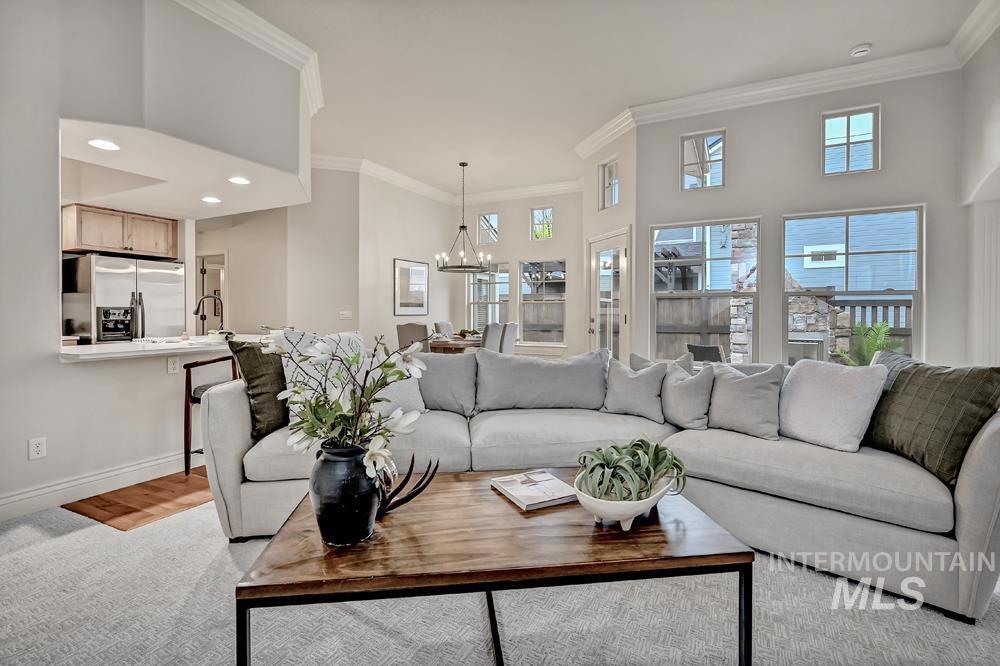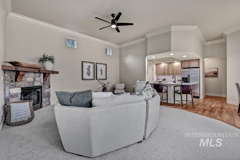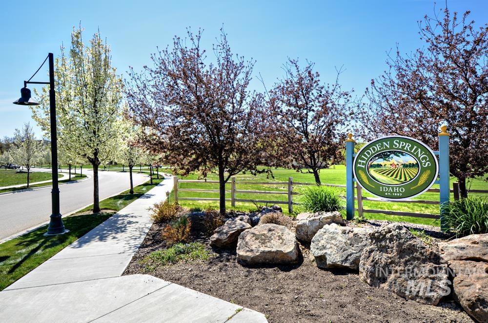 Nestled in the award-winning community of Hidden Springs in the Boise foothills, this beautifully updated single-level home offers a perfect blend of comfort, style, and ease of living. The entryway greets you with a stunning barrel ceiling, setting the tone for the thoughtful design found throughout, including soaring 12-foot ceilings in the great room and dining area, along with timeless crown molding & trim. Freshly refinished hardwood floors, all-new carpet, and new interior & exterior paint create a crisp, move-in-ready feel. The kitchen features quartz countertops and an inviting layout that flows seamlessly into the main living spaces—ideal for both everyday living and hosting guests. A dedicated office or den provides flexible space for work, hobbies, or quiet retreat. The spacious primary en-suite offers a relaxing escape with a soaking tub, dual vanities, and a generous walk-in closet. Step outside to a private courtyard with an outdoor fireplace—perfect for enjoying peaceful mornings or cozy evenings. Hidden Springs is known for its exceptional lifestyle, offering 988 acres of open space, miles of trails and sidewalks, direct Ridge to Rivers access, two community pools, a fitness center, community center, event barn, garden, library, and the charming Spring House Mercantile just moments away.