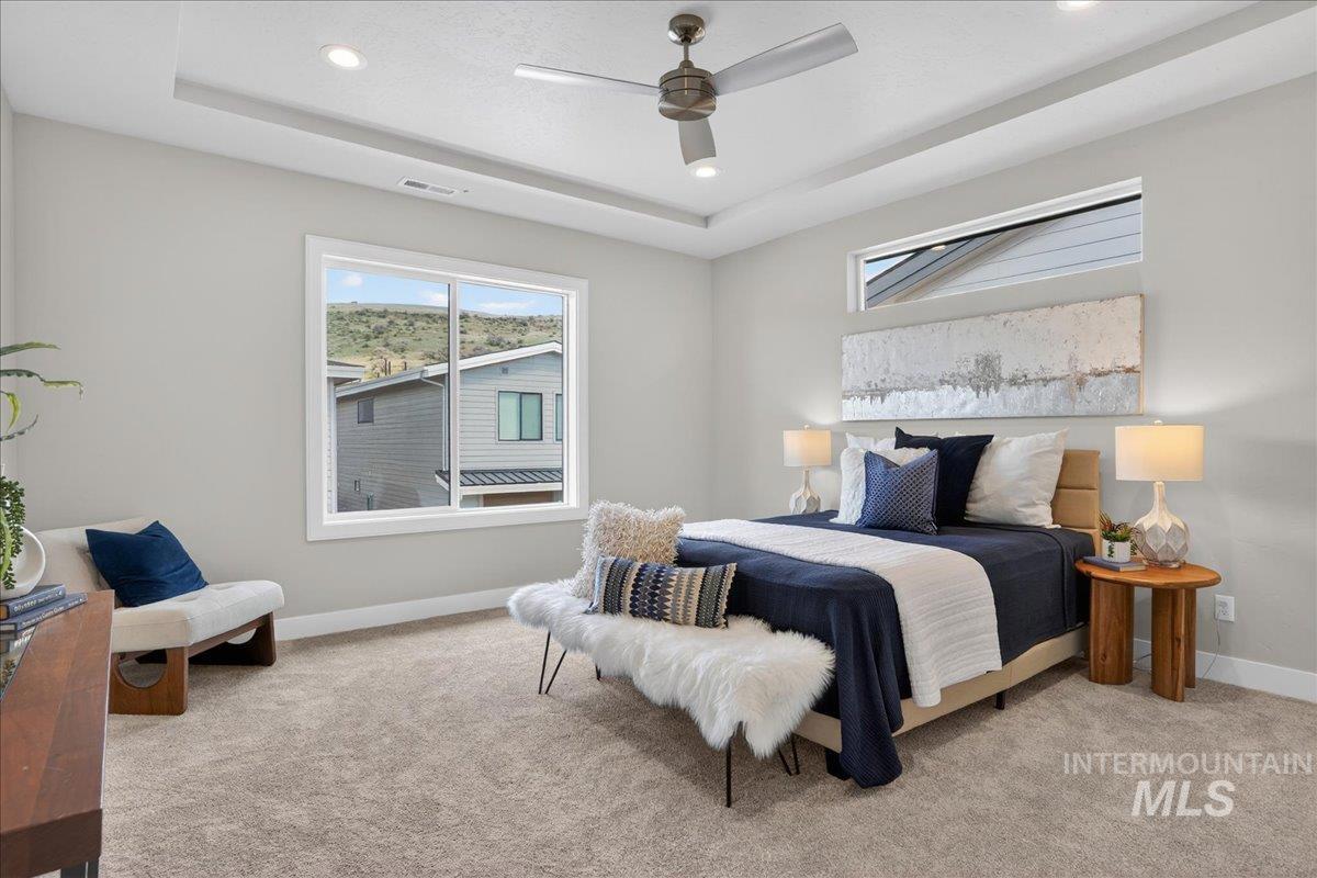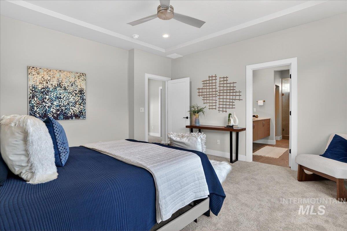 Welcome to the Santa Monica built by Brighton, located in the master-planned Cartwright Ranch community, perfectly positioned across from Dry Creek with incredible views of the Boise Foothills. This home emphasizes open living and outdoor enjoyment. The spacious main floor features an open kitchen, dining, and family room that seamlessly connects to a large patio - perfect for entertaining. A private den offers flexibility for work or hobbies. Upstairs, enjoy a luxurious primary suite with a tray ceiling, a generous walk-in closet, and a spa-like en-suite bath. Two additional bedrooms, a loft, and a second-story outdoor terrace with a perfectly situated beverage center offer ample space for relaxation and gatherings. Thoughtful details like a large pantry with built-in cabinetry and elevated finishes throughout add both function and style. Enjoy access to plenty of walking and hiking trails, parks, a community pool, clubhouse, and gym, all just minutes from downtown Boise and outdoor recreation perfect - the ultimate active lifestyle. This home offers the best of modern living and scenic views, creating a perfect balance of comfort and convenience. *Photos similar*
