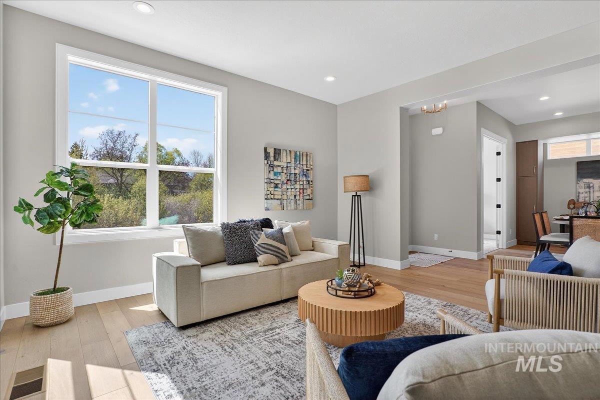 Welcome to the Custom Santa Monica built by Brighton, located in the master-planned Cartwright Ranch community, with incredible views of the Boise Foothills. This home emphasizes open living and outdoor enjoyment. The spacious main floor features an open kitchen, dining, and family room that seamlessly connects to a large patio - perfect for entertaining. A private den offers flexibility for work or hobbies. Upstairs, enjoy a luxurious primary suite with a tray ceiling, a generous walk-in closet, and a spa-like en-suite bath. Two additional bedrooms, a loft, and a second-story outdoor terrace with a perfectly situated beverage center offer ample space for relaxation and gatherings. Thoughtful details like a large pantry with built-in cabinetry and elevated finishes throughout add both function and style. Enjoy access to plenty of walking and hiking trails, parks, a community pool, clubhouse, and gym, all just minutes from downtown Boise and outdoor recreation perfect - the ultimate active lifestyle. You`re only a short drive from downtown Boise, yet surrounded by nature with over 810 acres of open space and trails. Easy access to McCall and Tamarack Resort. This is foothills living, made easy - come see what Creekside at Cartwright Ranch has to offer. This home offers the best of modern living and scenic views, creating a perfect balance of comfort and convenience. *Photos similar*
