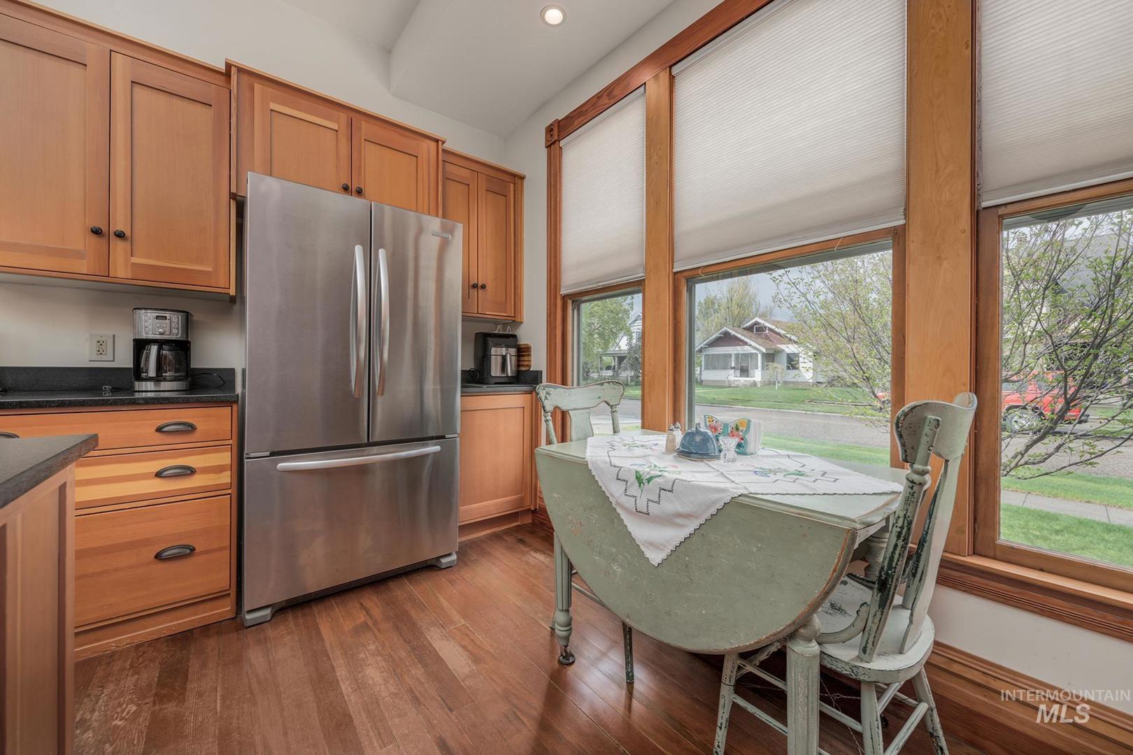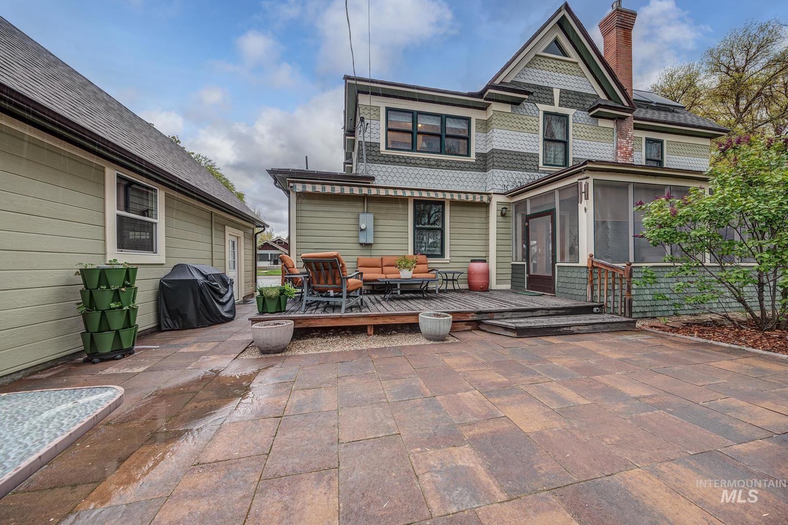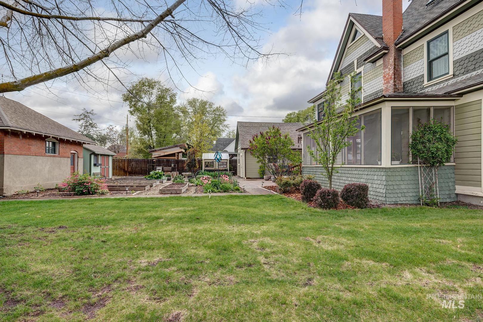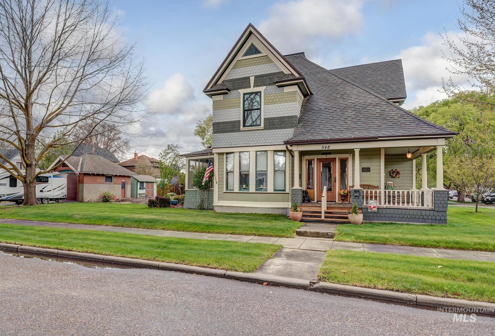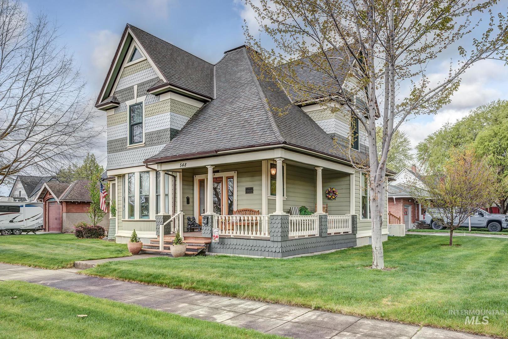 Rare opportunity to own one of Weiser`s pristine historic homes; the Sommer House, built in 1899 and designed by Tourtellotte & Company. This home has been meticulously renovated while perfectly preserving the architectural design & features of yesteryear. You will be in awe of the beautiful wood work throughout as well as the perfectly designed kitchen & bathrooms; all designed to feel as you are in the home as it was originally intended. The downstairs features a sprawling living room w/adjacent dining & direct access to the screened in porch, while the beautifully designed kitchen features lovely built ins, stainless appliances, and honed granite countertops. The main floor also features the master suite w/ walk in closet & ensuite bathroom. Walk upstairs to find an additional large ensuite bedroom with a separate sitting area, large bathroom, and two additional bedrooms. The meticulous maintenance continues outside to this courtyard style backyard with paver patios, deck w/ retractable awning, raised flower beds, green house, wrap around porch and more. There are two separate garages on each corner of the property for parking, storage, and work space.