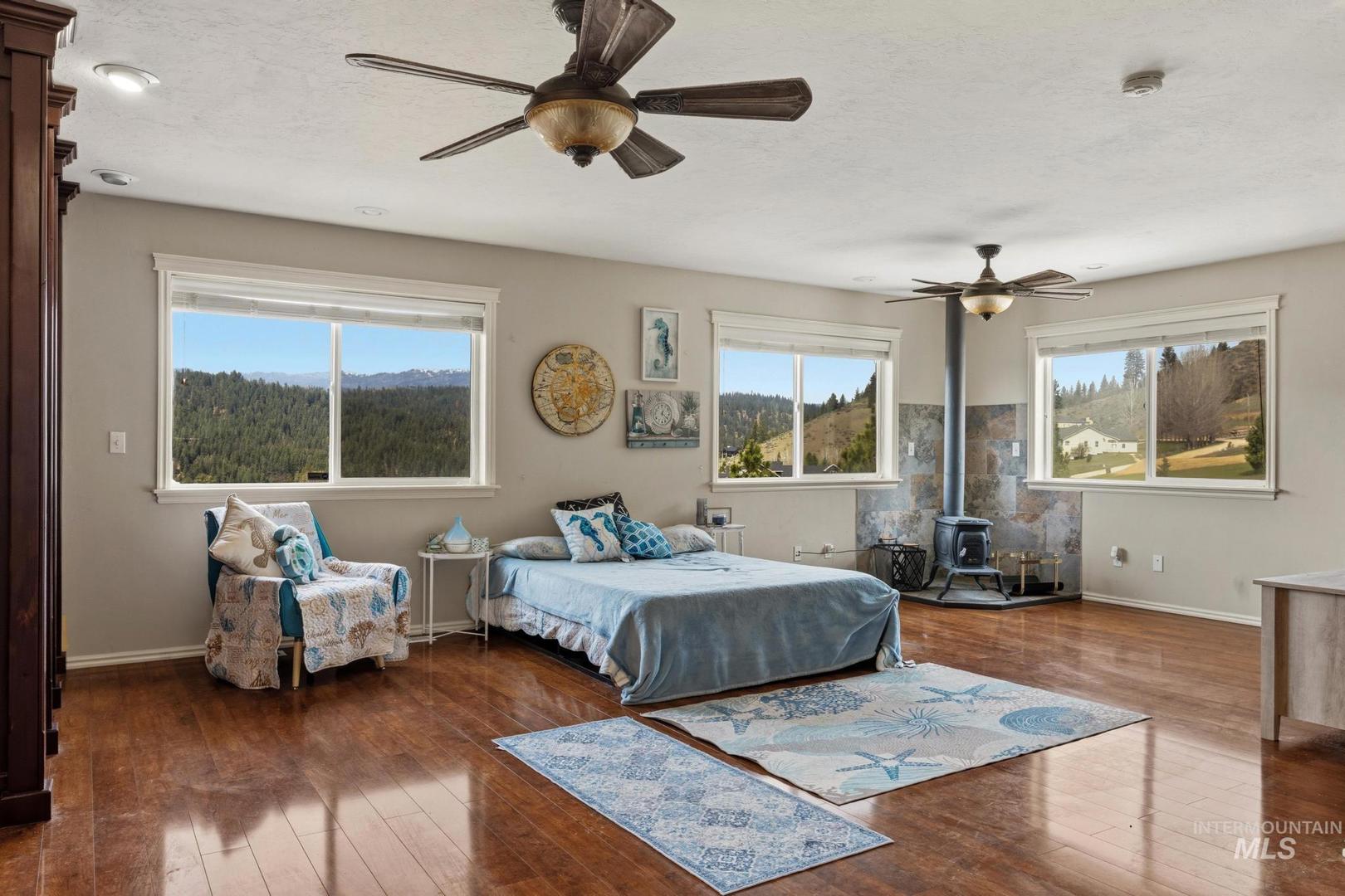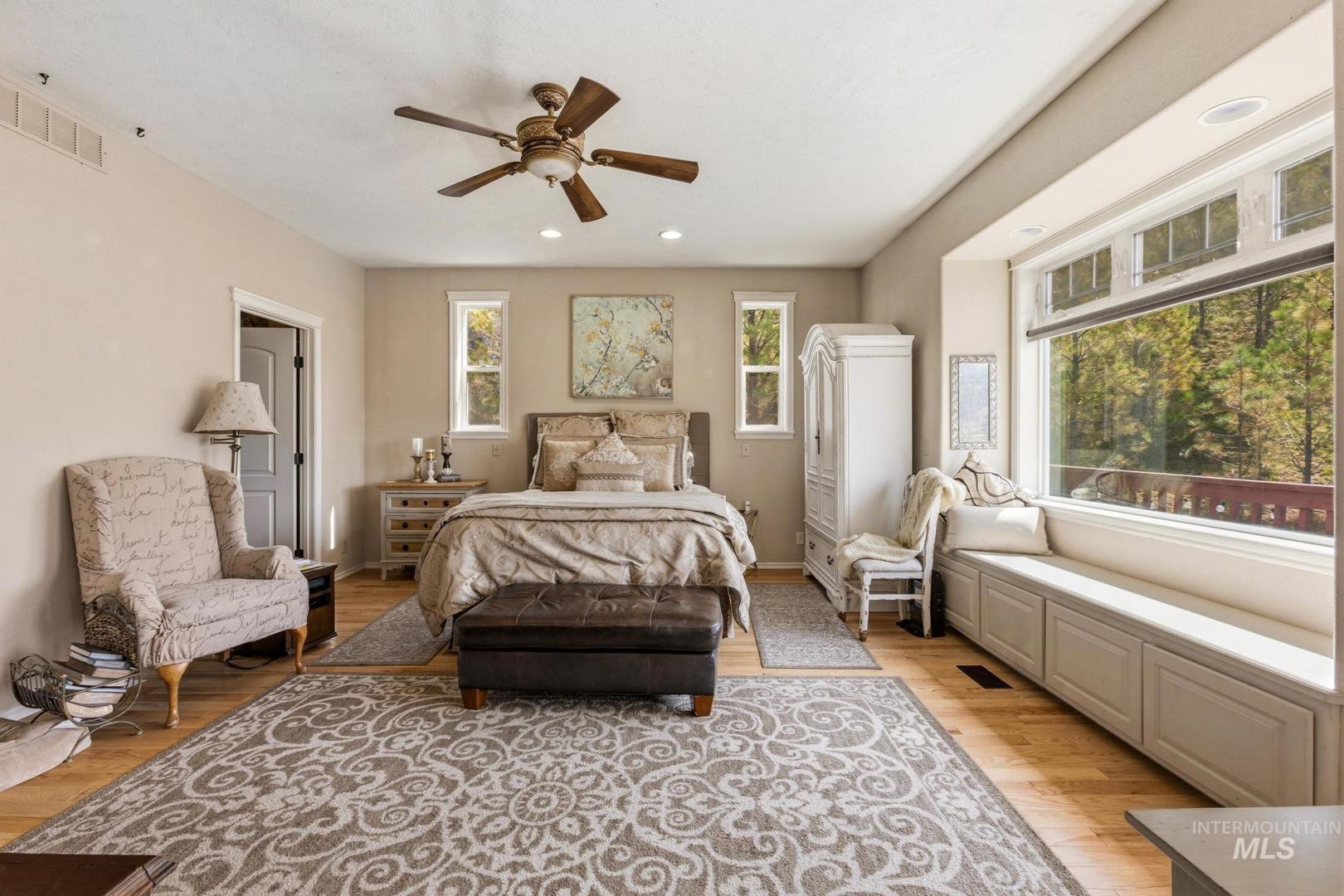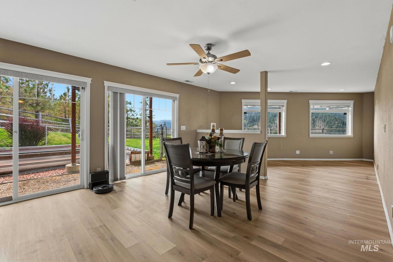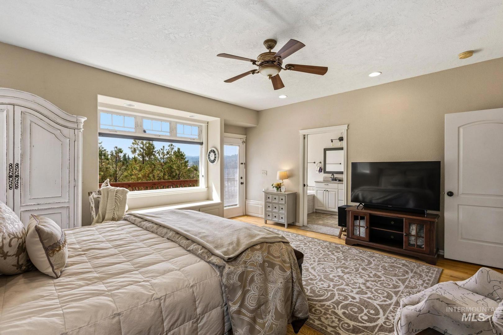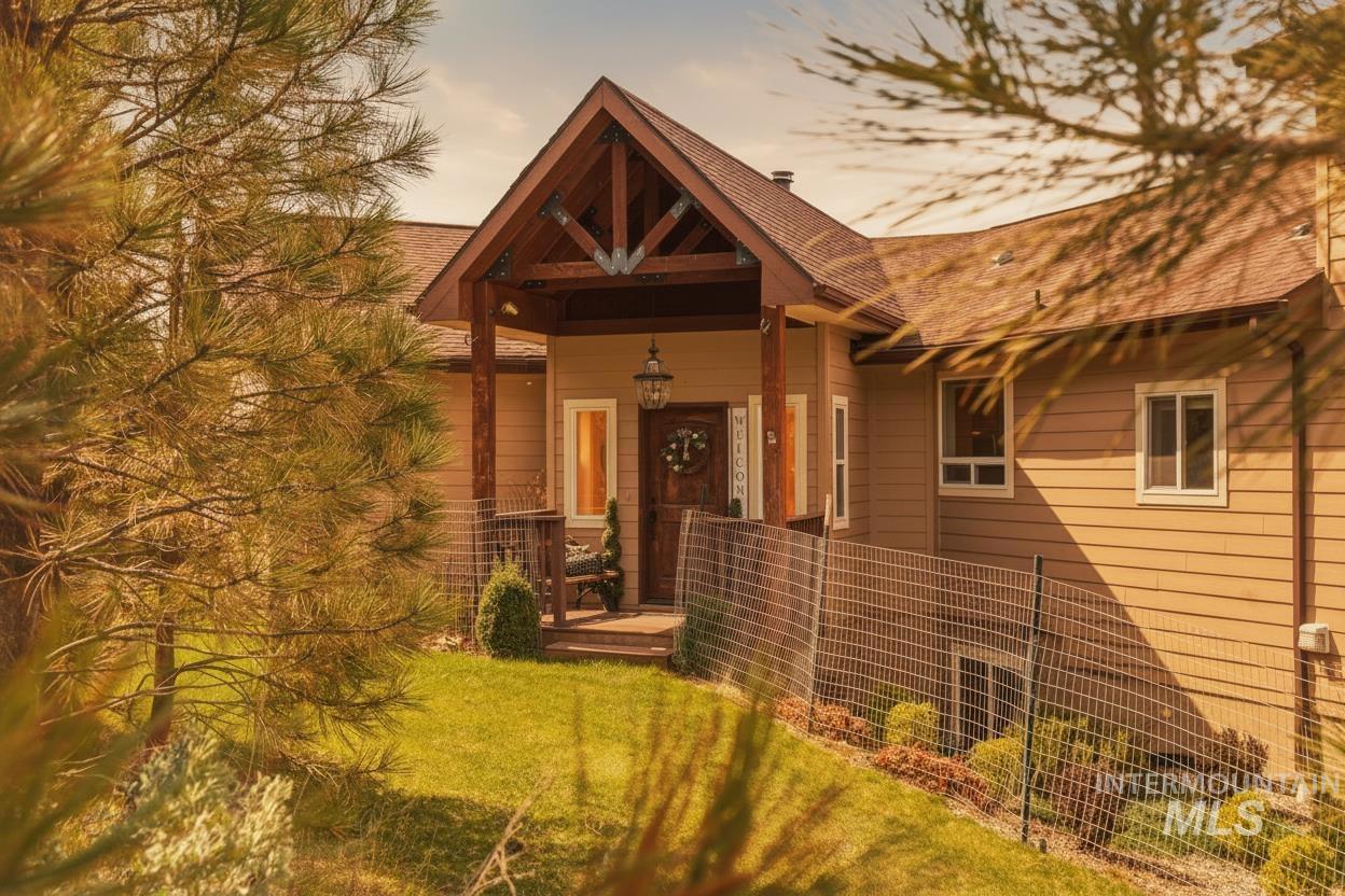 Come experience what it feels like to live in the Boise foothills where the air is clean, the pine trees are tall, and elk and turkey pass through your property like clockwork. 65 Peregrine Drive sits elevated above Grimes Creek on 3.52 acres, surrounded by mature pines and backed up to BLM ground with direct access to hiking, hunting, and off-roading. The views stretch out in nearly every direction. Inside, this 3,974 sq ft custom floor plan delivers five bedrooms, four bathrooms, granite countertops, knotty alder cabinetry, and multiple wood-burning stoves that make winter something to look forward to. The layout was designed with flexibility in mind, offering real potential for multi-generational living under one roof. Outside, you get a four-car garage with RV parking, garden space, room for horses, and the kind of fire pit nights you can`t replicate in the city. The private community includes a neighborhood park with a baseball backstop, and Lucky Peak Reservoir is a short drive away. This is the slower pace of life with wilderness all around, and Boise is still within reach. Come see it for yourself.