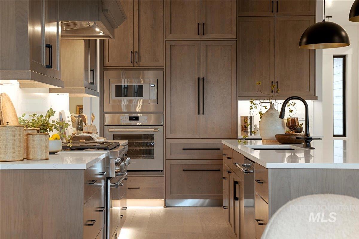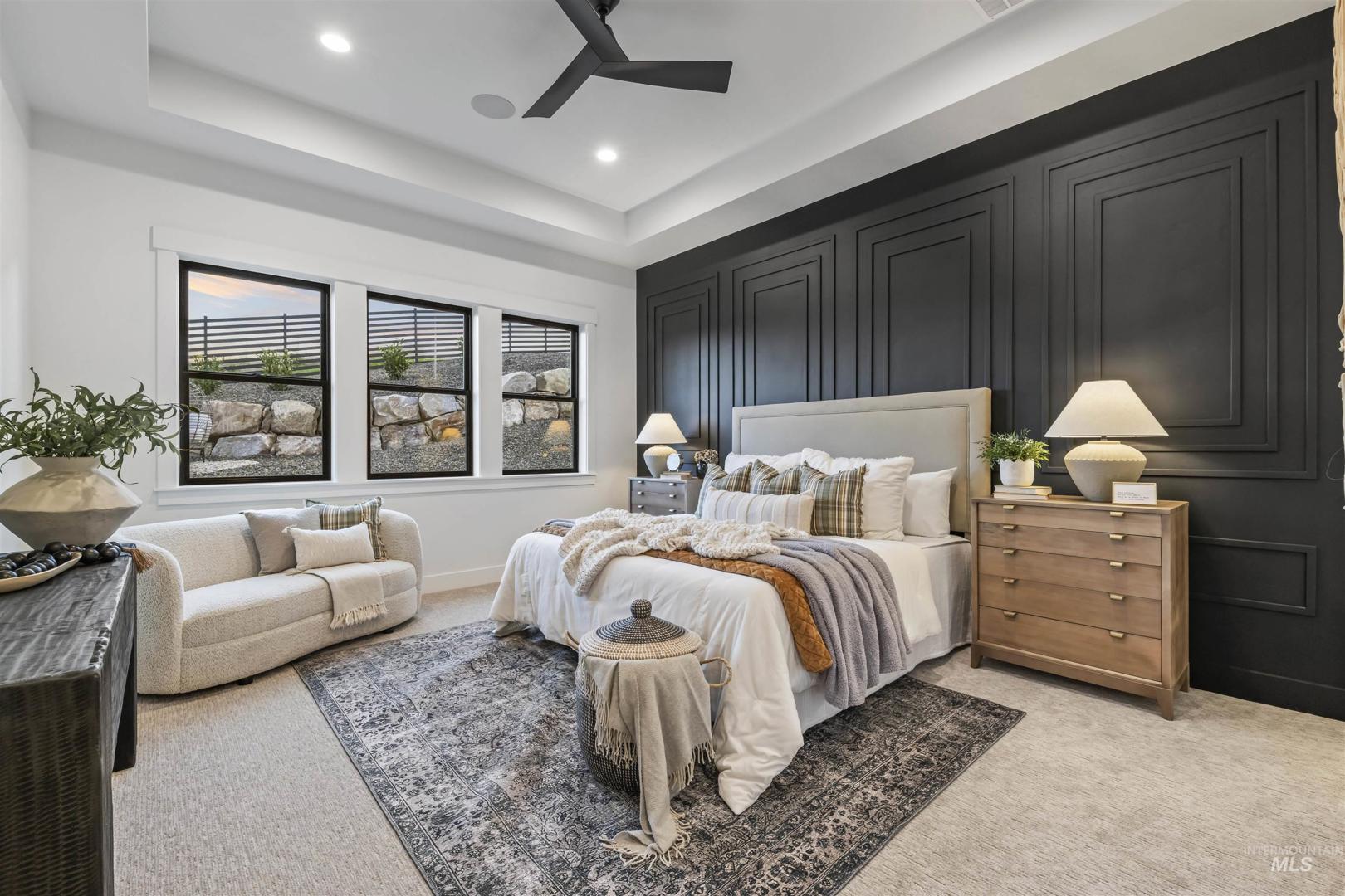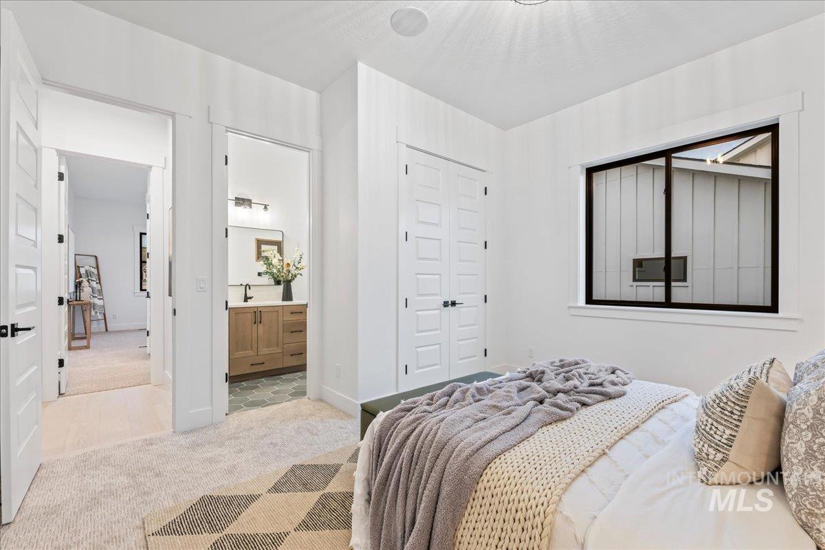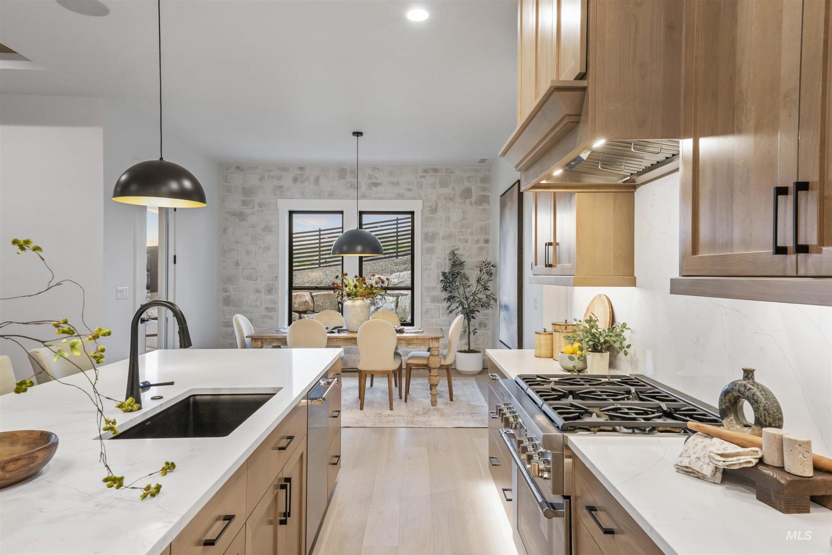 The Zachary Boat Bay by Brookstone Custom Homes is a spectacular new plan offering elevated living with a seamless blend of luxury design and everyday comfort. Soaring 11-foot ceilings, designer lighting, and custom craftsmanship create a warm, inviting atmosphere throughout. The gourmet kitchen is ideal for entertaining, featuring a 10-foot quartz island, premium Thermador appliances, cabinet-style refrigerator, double ovens, and a spacious walk-in pantry. A stylish bar area with beverage cooler complements the open-concept layout, flowing into a great room with wood-beamed ceilings, a floor-to-ceiling stone fireplace, and large Pella windows for abundant natural light. A dedicated home office with custom built-ins supports today’s work-from-home lifestyle. The private primary suite is a true retreat, showcasing exquisite carpentry and a spa-inspired bath with separate vanities, makeup counter, soaking tub, and an impressive 10-foot tiled shower. Each additional bedroom includes its own private ensuite, offering comfort and privacy throughout. Designed for both function and lifestyle, the home also features a side-entry garage and separate RV garage with pull-through access. The fully fenced backyard is elegantly landscaped with an extended patio and fire pit area. Located in Valnova in Eagle, Idaho, this home offers luxury living in a premier, amenity-rich community.