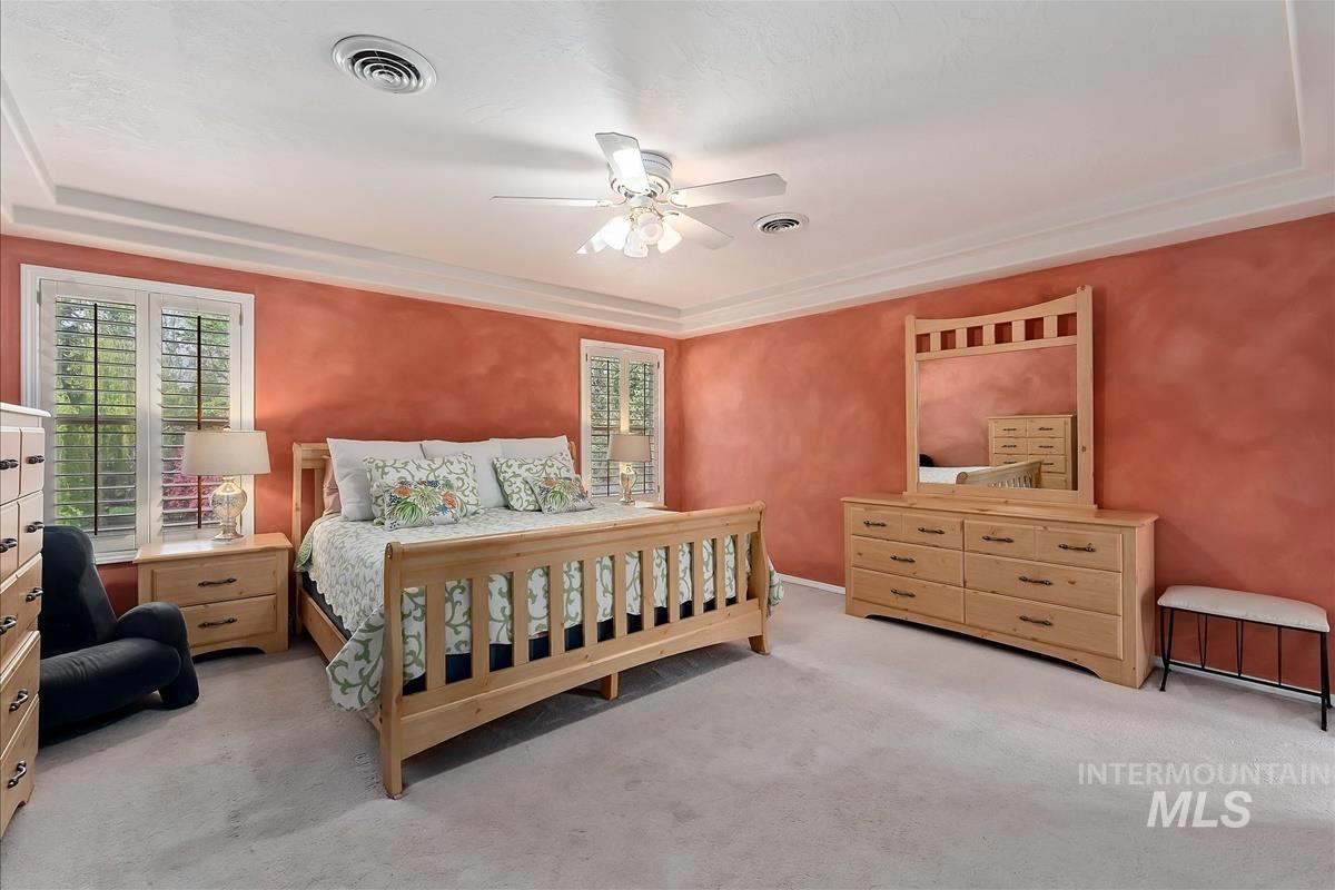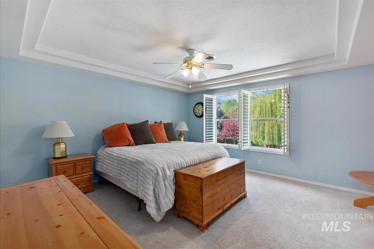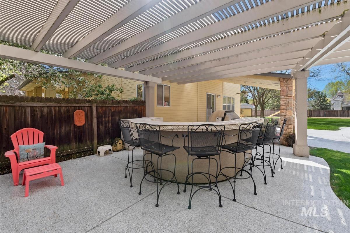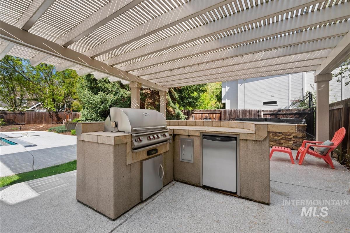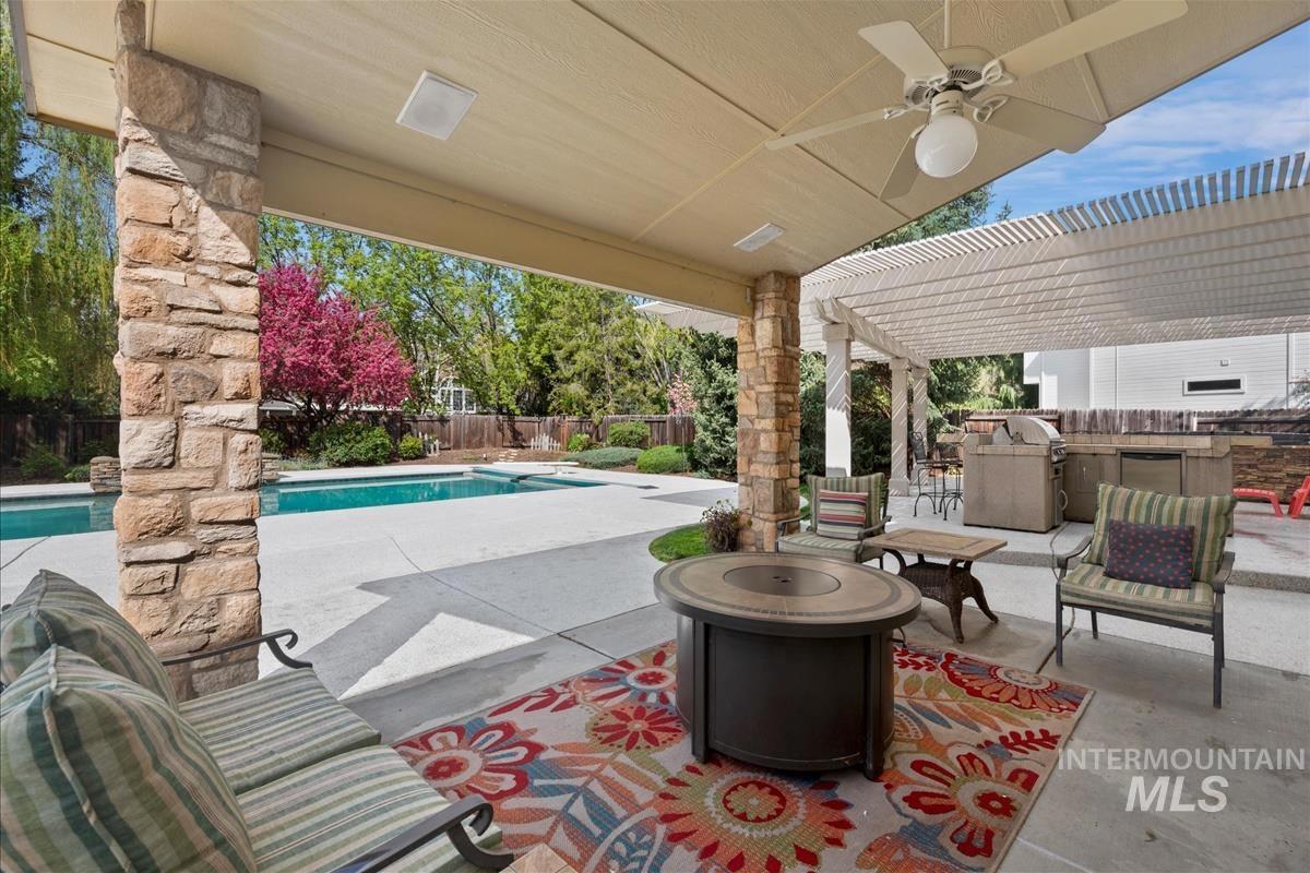 Tucked away in Lexington Hills, this exceptional property sits on a spacious .629-acre lot and offers 7 bedrooms and 4.5 baths. The backyard is truly a showstopper—featuring a stunning Gunite pool with two large water sheers cascading over stacked stone, a lush flowerbed border, and a refinished pool deck with diving board and electric cover. Entertain with ease under the covered patio or at the built-in outdoor kitchen and bar complete with BBQ and fridge. A separate graveled area includes a storage shed and cozy firepit for added versatility. Inside, hardwood floors flow through the main living areas, leading to a well-appointed kitchen with granite countertops, a large island with storage, and both casual and formal dining spaces. The primary suite is luxurious with Venetian plaster walls, plantation shutters, and a coffered ceiling. Downstairs, a generous open space is perfect for a media room or private living space. Recent updates include a new water heater (3/26), 6 person hot tub with new electrical spa pack, pump, head rests and cover (4/26), new pool pump (10/25), and pool decking, diving board and electric pool cover completed in 2024. Enjoy all that Lexington Hills has to offer, including over 44 acres of common areas, ponds, mature trees, miles of walking paths, and community amenities—all near the Boise River and foothills.