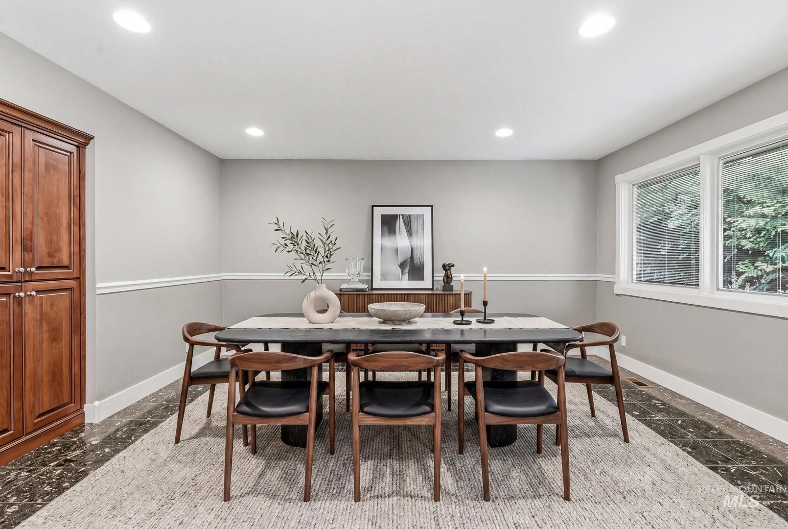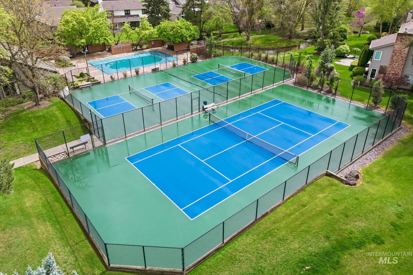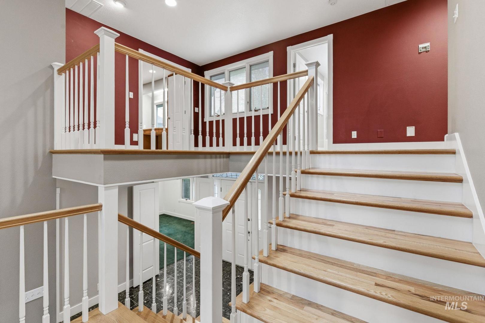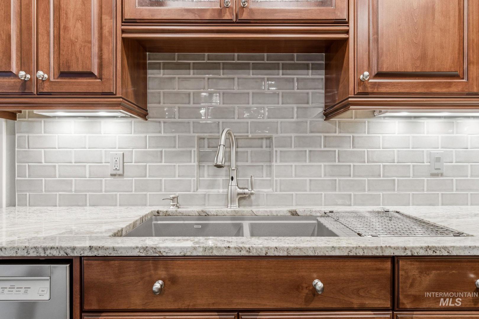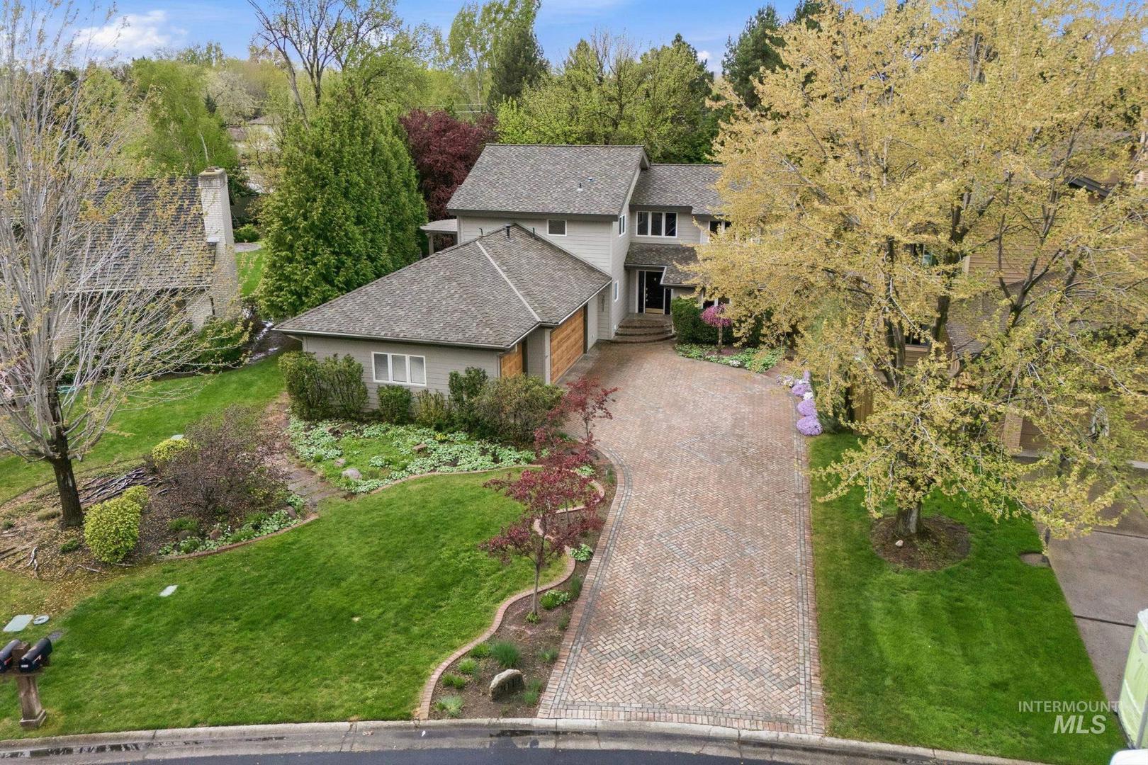 Exceptional River Run home with private fully fenced backyard oasis meticulously landscaped to take advantage of picturesque waterfall and established landscaping. Relax and entertain family and friends beneath the shade of a charming pergola nestled against a backdrop of tranquil flowing waterfall and pond. Pride of ownership abounds in the home`s stately interior with a recently remodeled kitchen featuring granite counters, custom solid wood cabinetry, induction range and breakfast. Main-level master with skylights in the soaring ceilings. Main level flex room that could be used as an office, workout room or den.Many upgrades over the years and solid construction all nestled in a perfect cul-de-sac of one of Boise`s premier neighborhood. Three bedrooms, full bath and office with built-in desk and sink completes the upstairs.