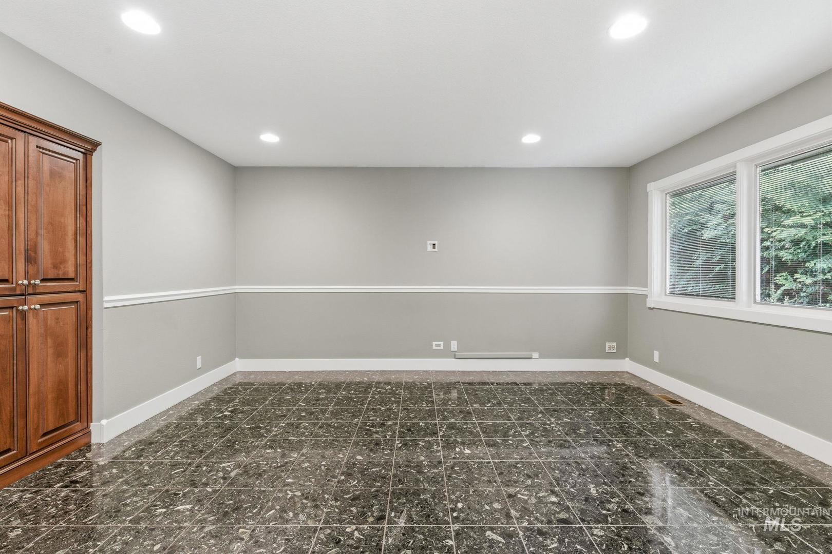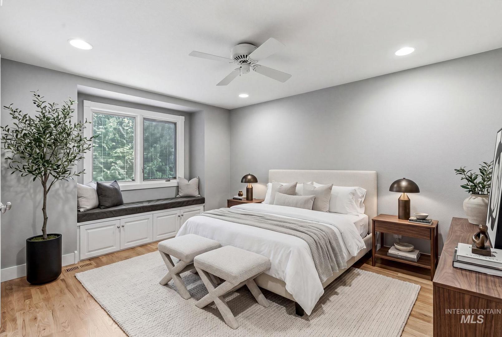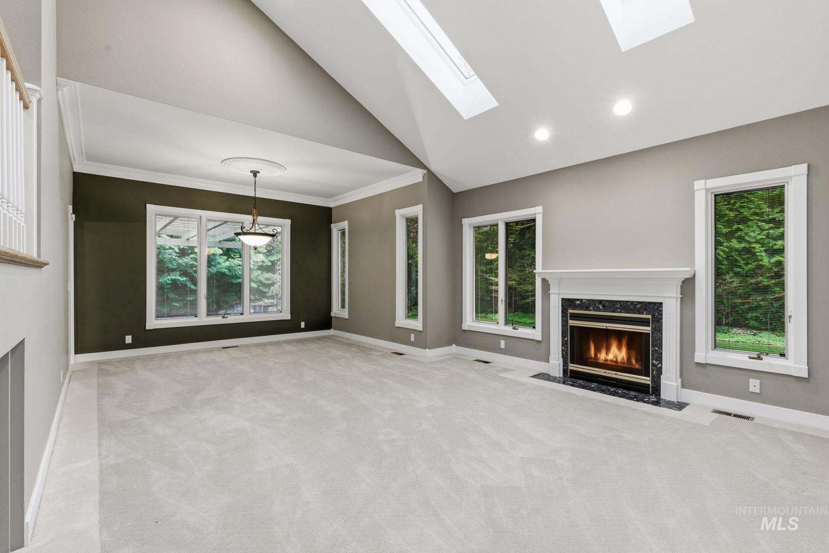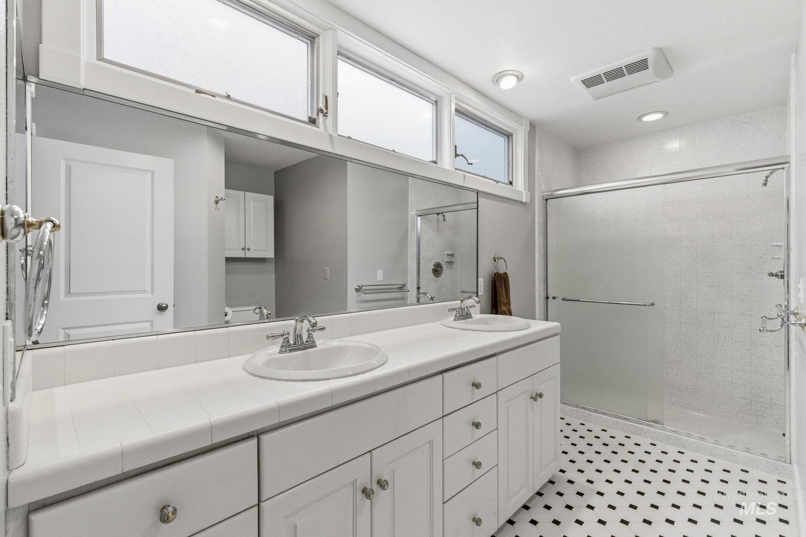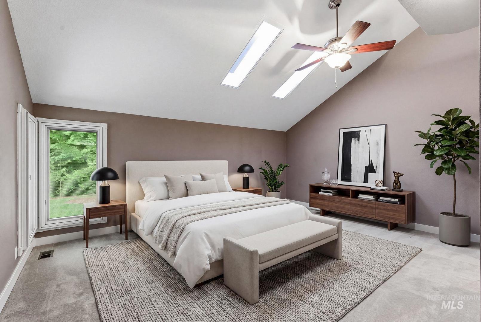 Exceptional River Run home with private fully fenced backyard oasis meticulously landscaped to take advantage of picturesque waterfall and established landscaping. Relax and entertain family and friends beneath the shade of a charming pergola nestled against a backdrop of tranquil flowing waterfall and pond. Pride of ownership abounds in the home`s stately interior with a recently remodeled kitchen featuring granite counters, custom solid wood cabinetry, induction range and breakfast. Main-level master with skylights in the soaring ceilings. Main level flex room that could be used as an office, workout room or den.Many upgrades over the years and solid construction all nestled in a perfect cul-de-sac of one of Boise`s premier neighborhood. Three bedrooms, full bath and office with built-in desk and sink completes the upstairs.