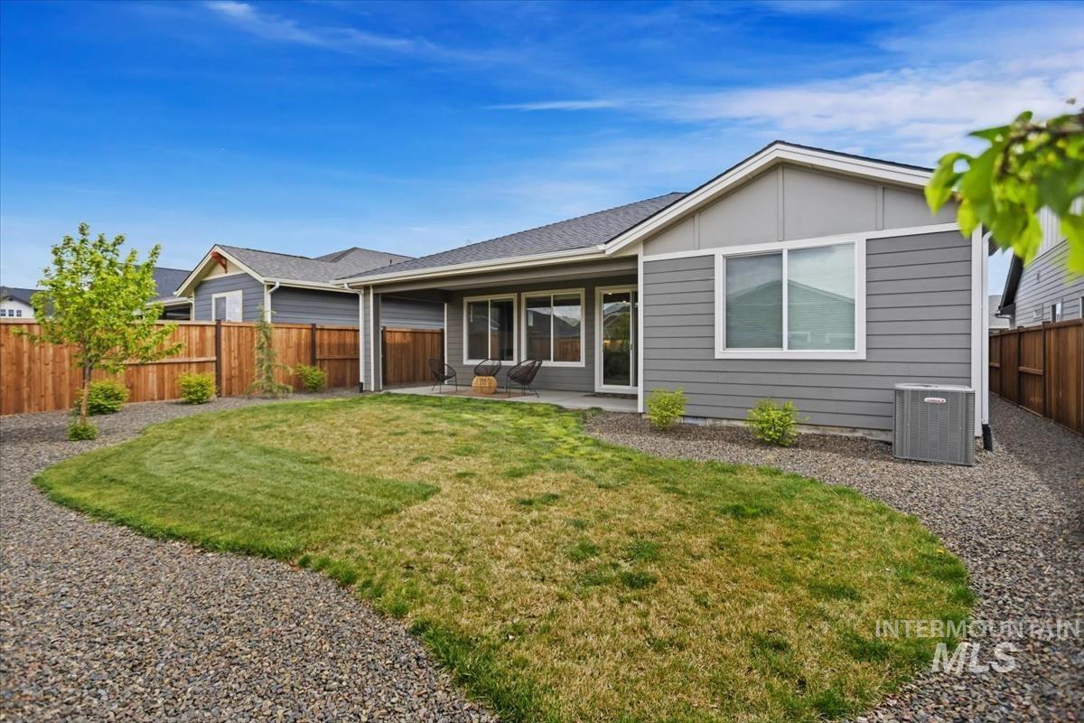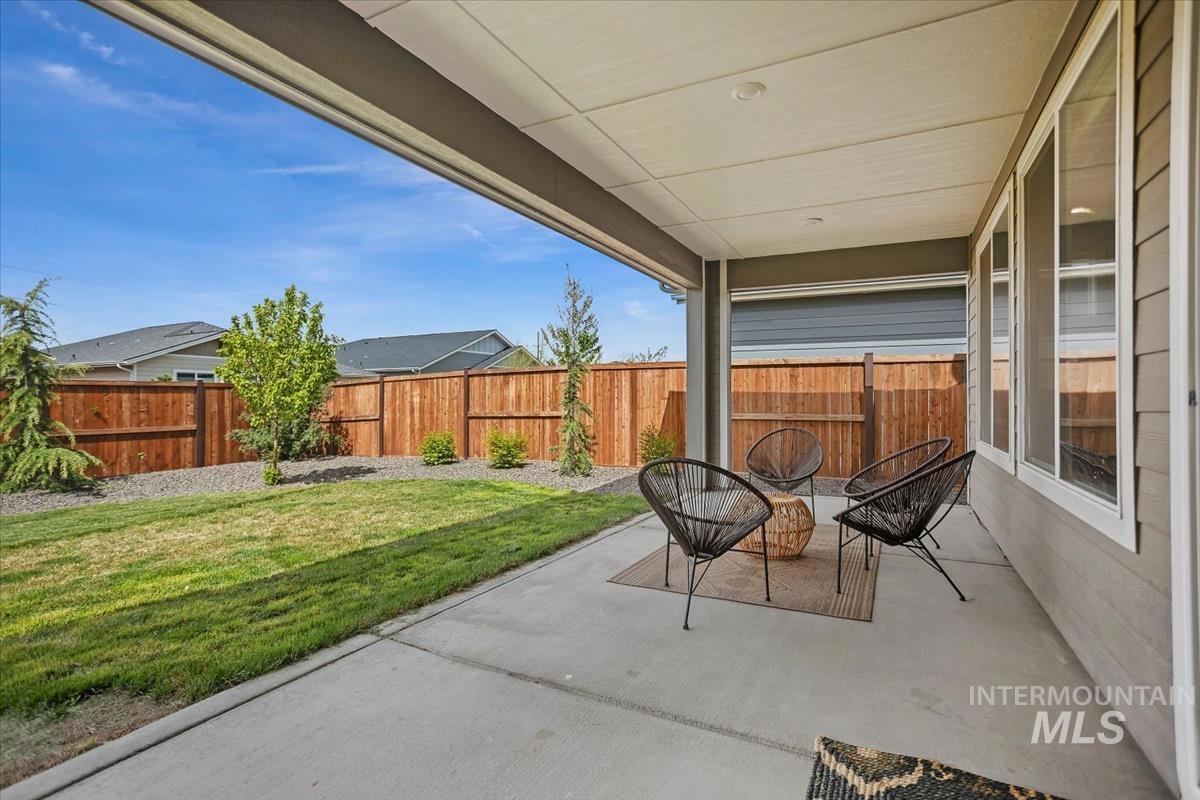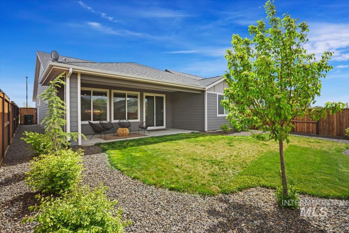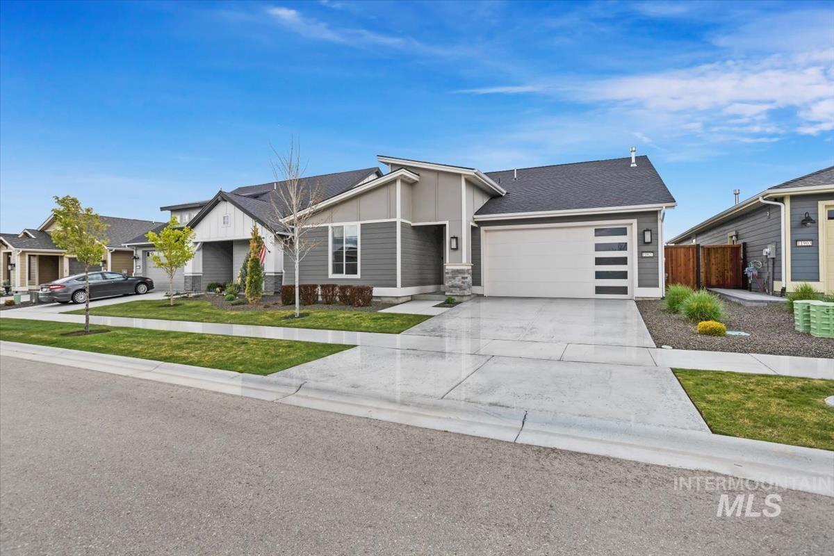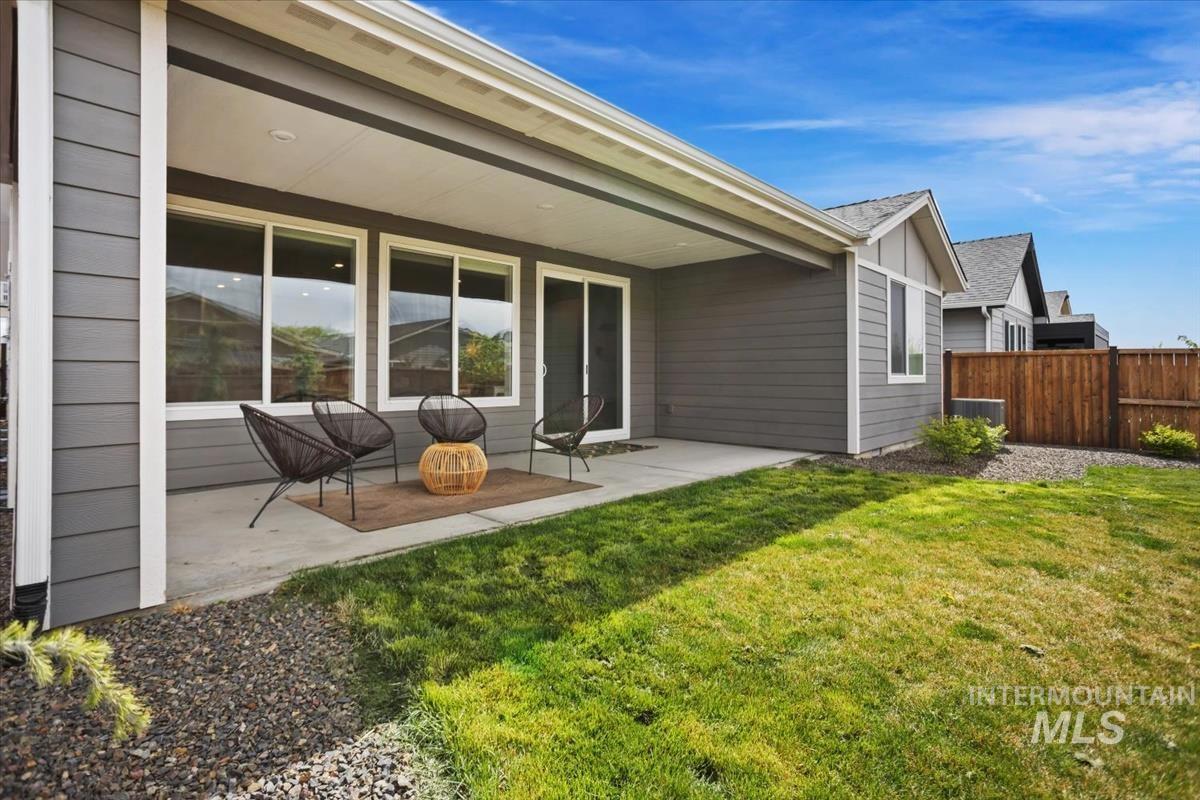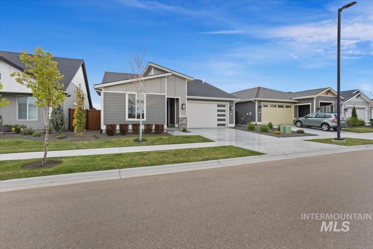 Beautifully maintained home on a premium lot with over $113K in upgrades, located in the sought after Trilogy Valor 55+ gated community. Enhanced curb appeal includes a premium elevation, upgraded exterior paint, and inviting front entry. Inside features 3 bedrooms plus a dedicated office or den with French doors, along with upgraded flooring, elegant trim, and quality finishes throughout. The gourmet kitchen offers quartz countertops, soft close cabinetry, and built in Whirlpool gas appliances. The open concept layout flows into a spacious great room with gas fireplace and large dining area, while sliding glass doors lead to an oversized covered patio, perfect for relaxing or entertaining. Additional highlights include window coverings, water softener and filtration system, and fully completed landscaping with fencing. Trilogy Valor offers resort style amenities including a clubhouse, fitness center, indoor and outdoor pools, pickleball courts, walking paths, a restaurant and bar, and a full social calendar. Conveniently located near Boise, Meridian, and outdoor recreation, this home combines comfort, style, and active living.