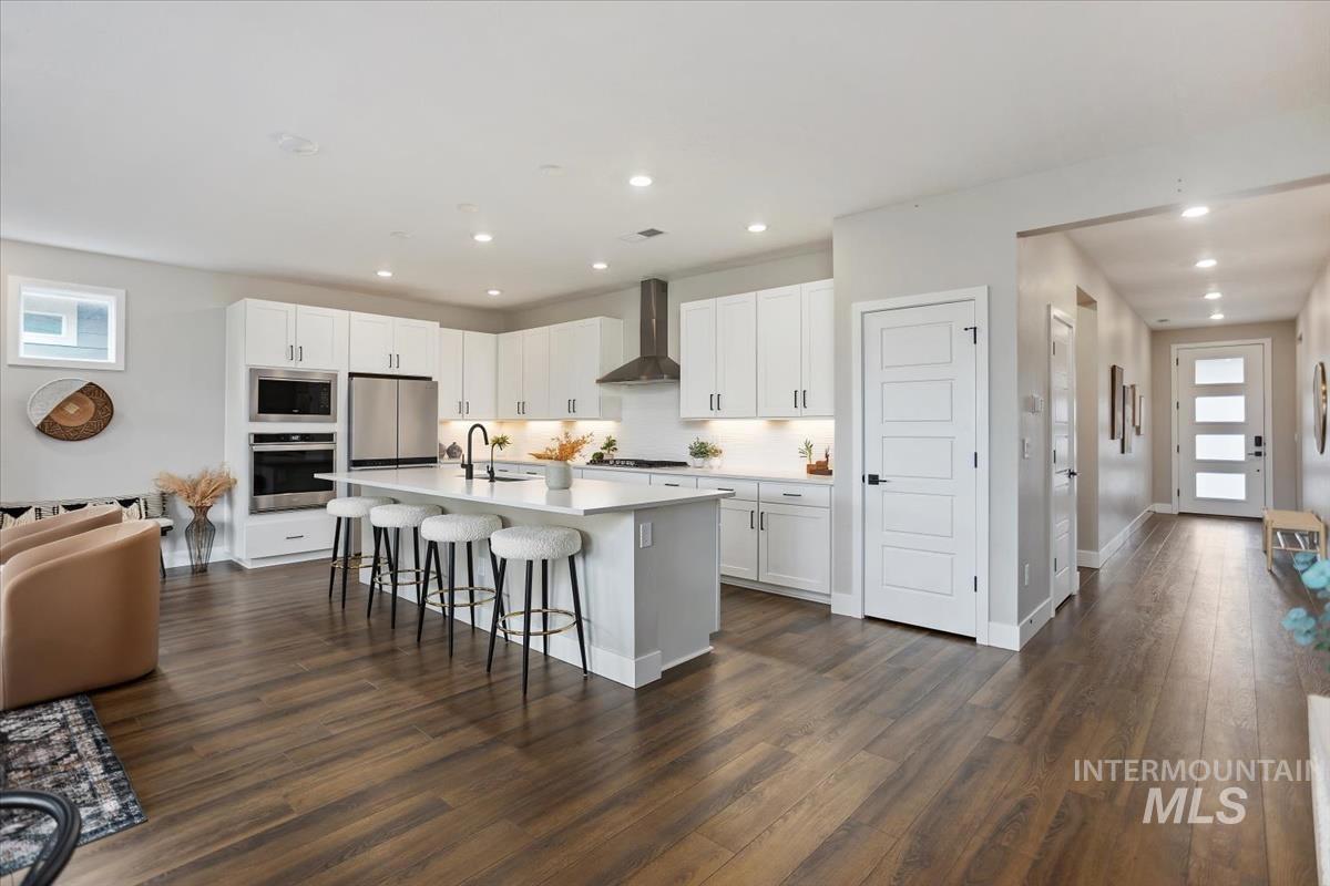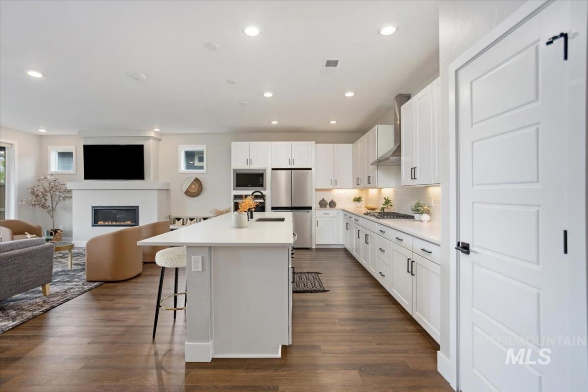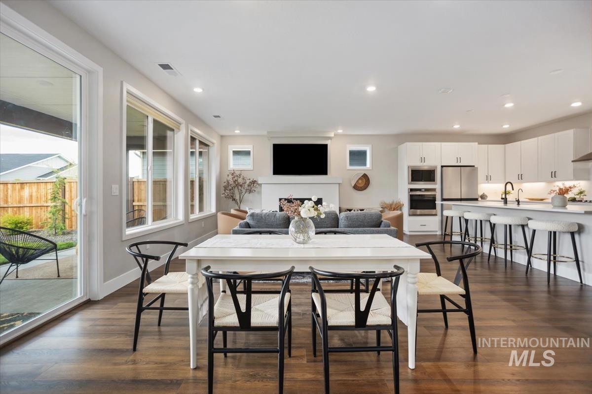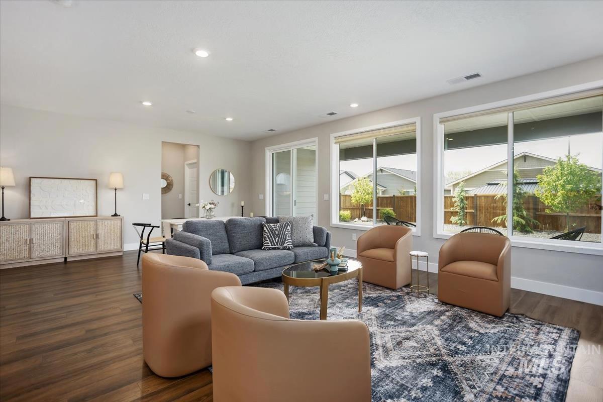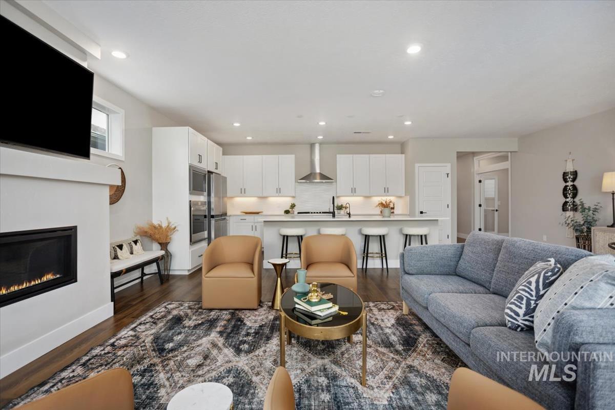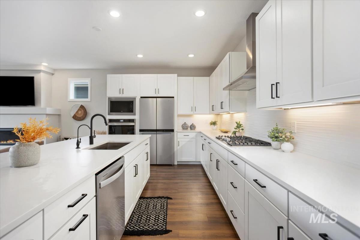 Beautifully maintained home on a premium lot with over $113K in upgrades, located in the sought after Trilogy Valor 55+ gated community. Enhanced curb appeal includes a premium elevation, upgraded exterior paint, and inviting front entry. Inside features 3 bedrooms plus a dedicated office or den with French doors, along with upgraded flooring, elegant trim, and quality finishes throughout. The gourmet kitchen offers quartz countertops, soft close cabinetry, and built in Whirlpool gas appliances. The open concept layout flows into a spacious great room with gas fireplace and large dining area, while sliding glass doors lead to an oversized covered patio, perfect for relaxing or entertaining. Additional highlights include window coverings, water softener and filtration system, and fully completed landscaping with fencing. Trilogy Valor offers resort style amenities including a clubhouse, fitness center, indoor and outdoor pools, pickleball courts, walking paths, a restaurant and bar, and a full social calendar. Conveniently located near Boise, Meridian, and outdoor recreation, this home combines comfort, style, and active living.