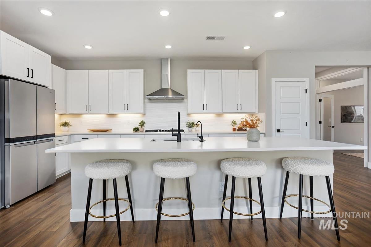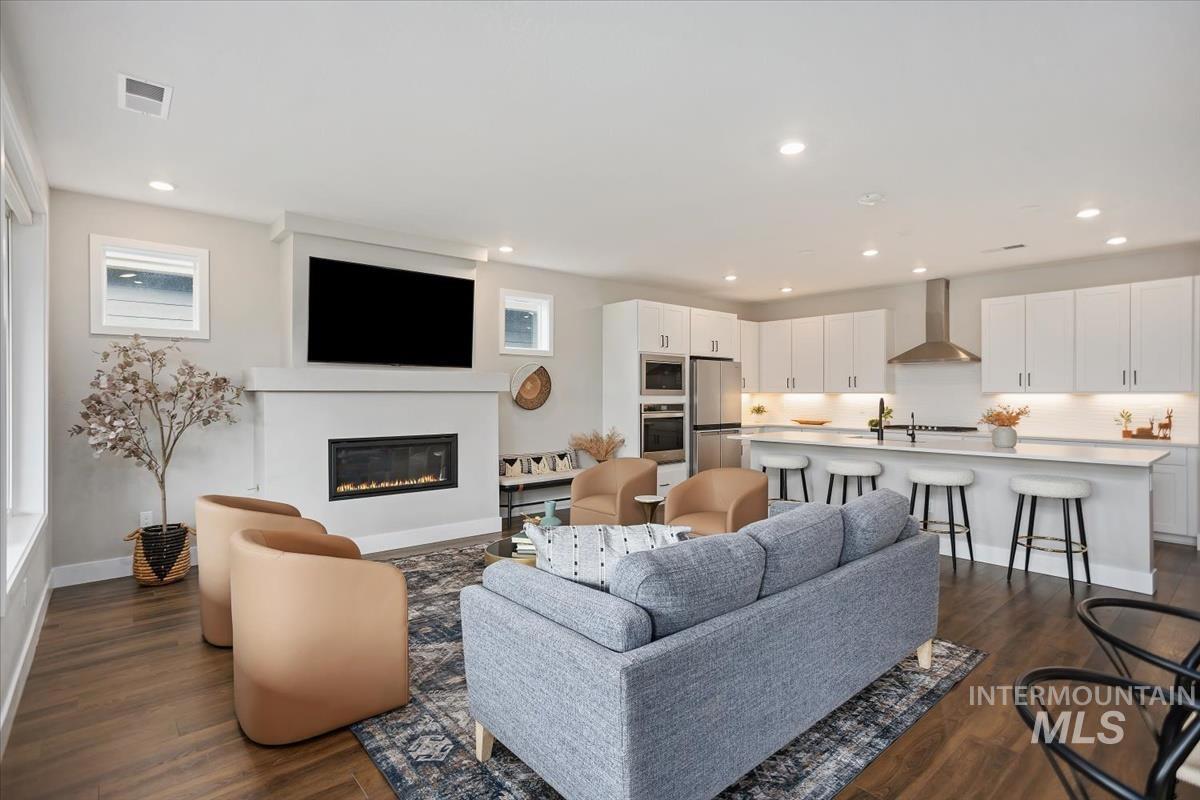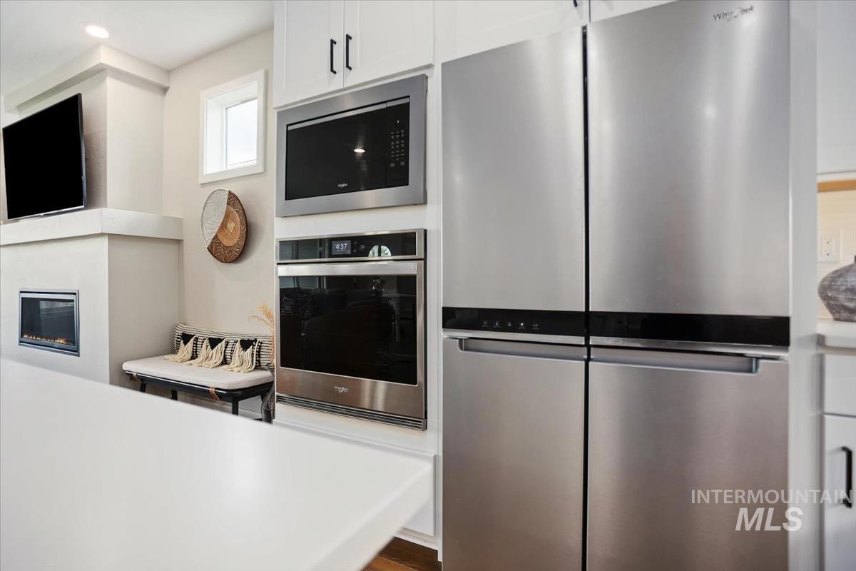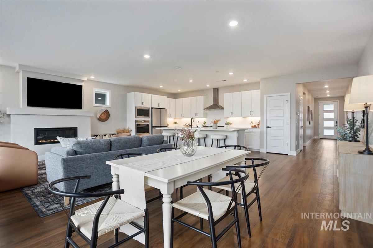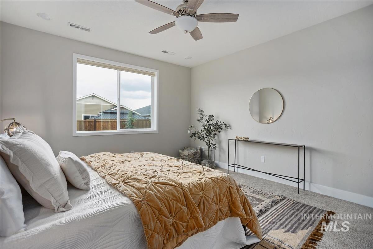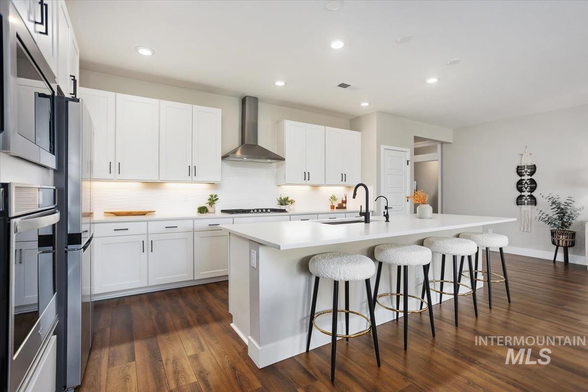 Beautifully maintained home on a premium lot with over $113K in upgrades, located in the sought after Trilogy Valor 55+ gated community. Enhanced curb appeal includes a premium elevation, upgraded exterior paint, and inviting front entry. Inside features 3 bedrooms plus a dedicated office or den with French doors, along with upgraded flooring, elegant trim, and quality finishes throughout. The gourmet kitchen offers quartz countertops, soft close cabinetry, and built in Whirlpool gas appliances. The open concept layout flows into a spacious great room with gas fireplace and large dining area, while sliding glass doors lead to an oversized covered patio, perfect for relaxing or entertaining. Additional highlights include window coverings, water softener and filtration system, and fully completed landscaping with fencing. Trilogy Valor offers resort style amenities including a clubhouse, fitness center, indoor and outdoor pools, pickleball courts, walking paths, a restaurant and bar, and a full social calendar. Conveniently located near Boise, Meridian, and outdoor recreation, this home combines comfort, style, and active living.