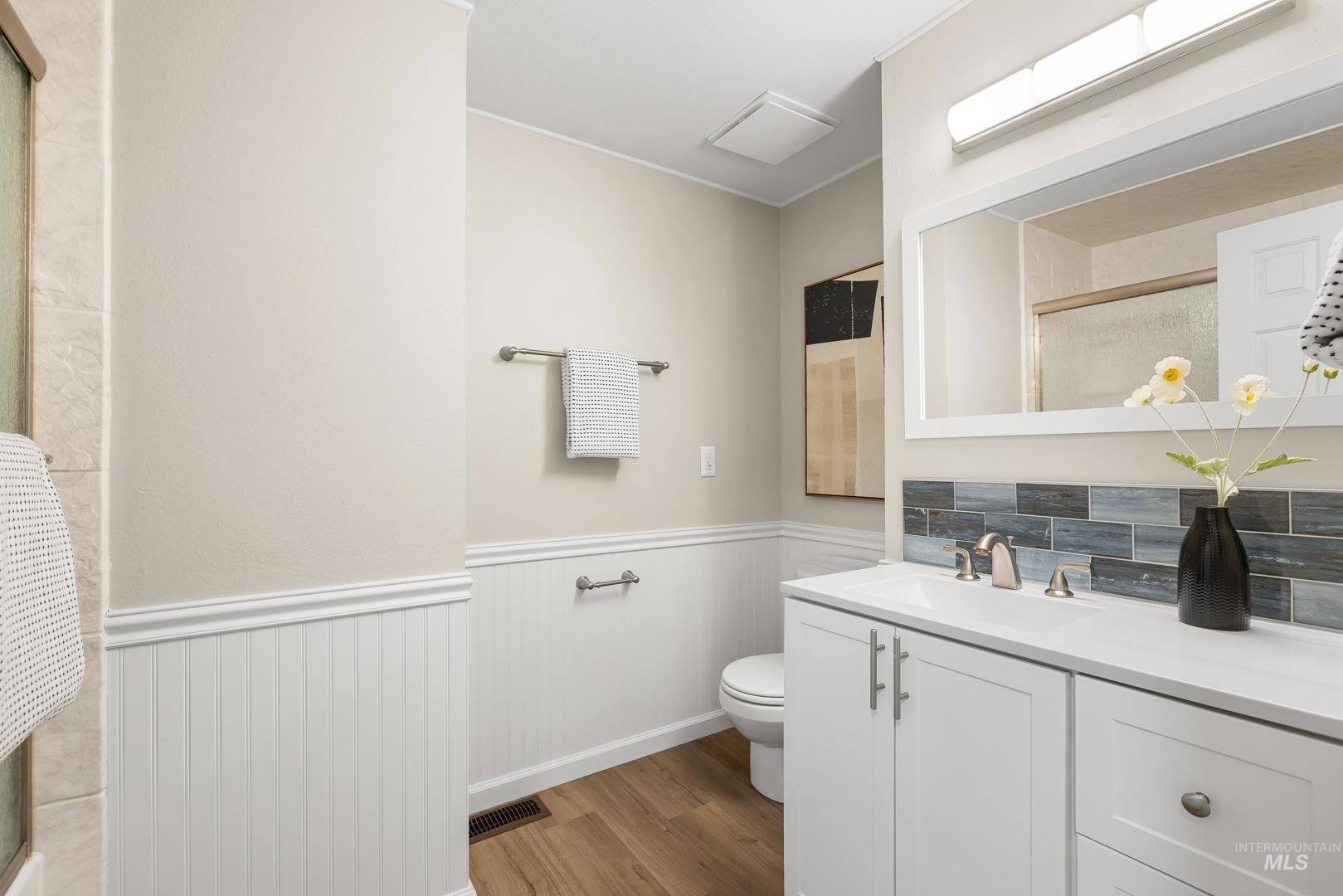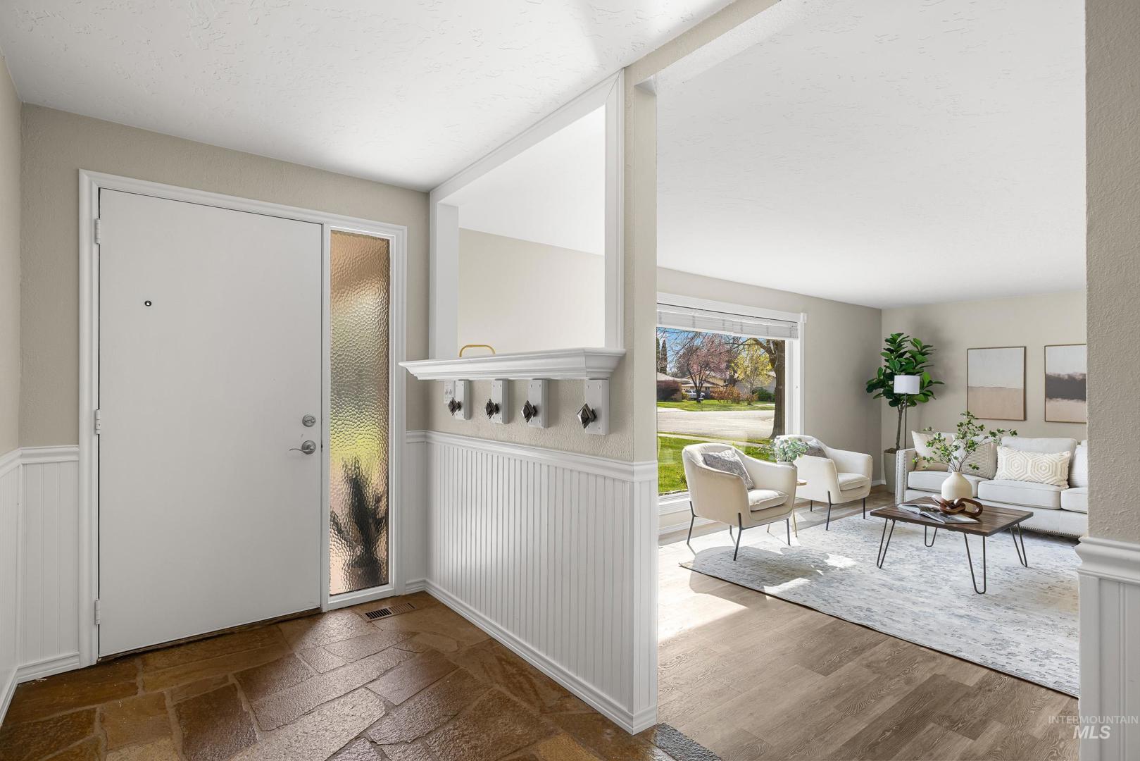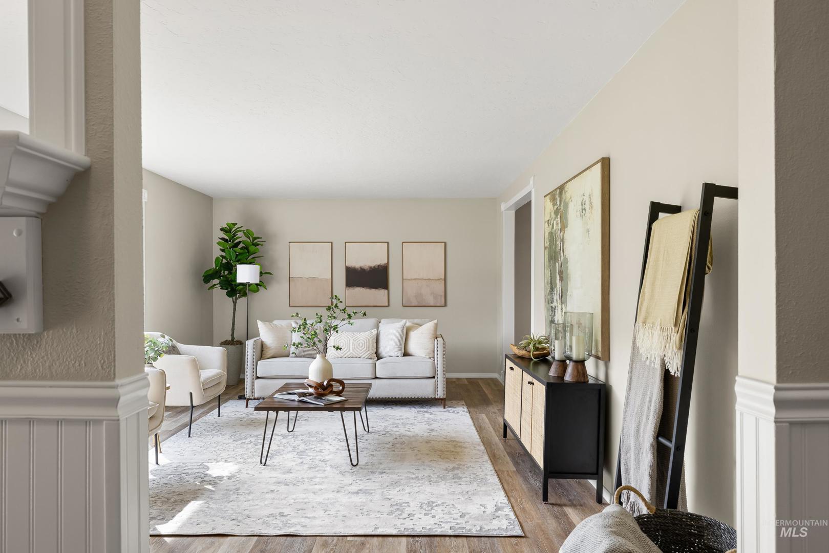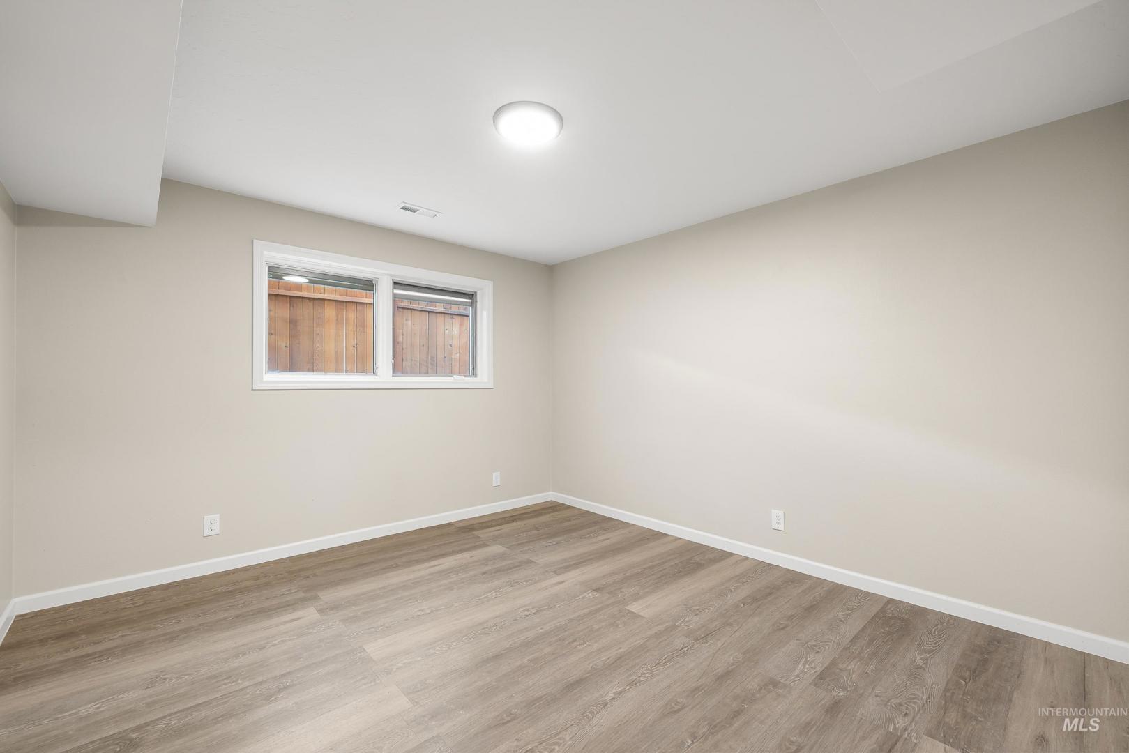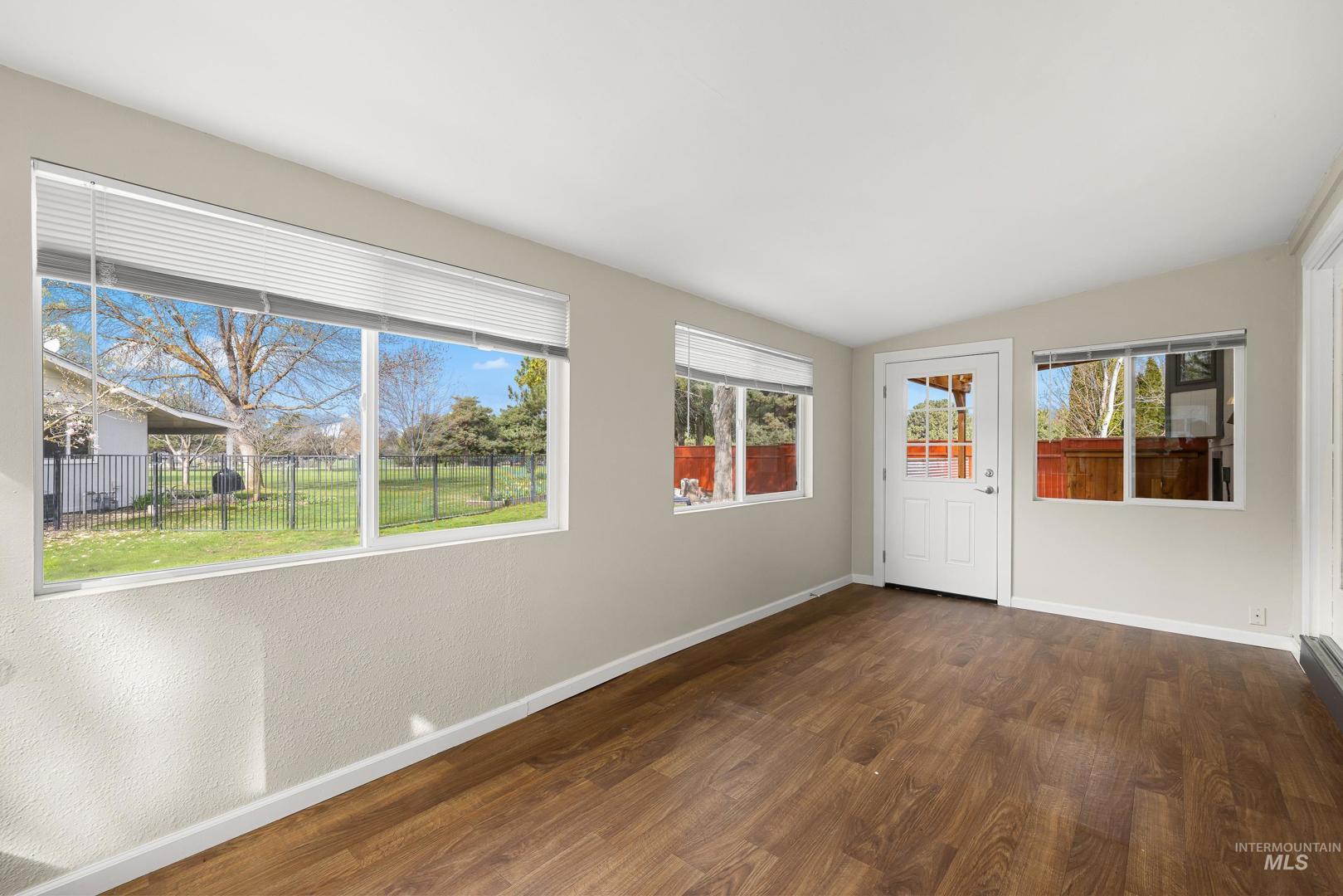 Set on a generous corner lot in a charming, established neighborhood with no HOA, this move-in ready gem is nestled against the 5th hole of Eagle Hills Golf Course, minutes from downtown Eagle, and within easy walking distance to parks and the clubhouse. Fresh, neutral paint, updated lighting, and durable flooring enhance the home’s timeless and comfortable appeal. An expansive picture window frames the idyllic, tree-lined street and fills the living space with natural light. A well-appointed kitchen offers ample prep space, beautiful wood cabinetry, and convenient access to the formal dining room—perfect for seamless hosting and gathering. Light-filled master features an attached ensuite bath and dual closets for everyday convenience and added storage. Centered around a nostalgic brick fireplace, the downstairs bonus room provides a versatile space ideal for a media room, play area, or teen hangout. With an additional full bath and bedroom, the lower level offers potential for multi-generational living or private guest quarters. Step through the enclosed sunroom to an impressive backyard retreat with picturesque golf course views. Enjoy evenings beneath the covered patio, summer bonfires around the built-in fire pit, or BBQs and lawn games on the lush, green grass.