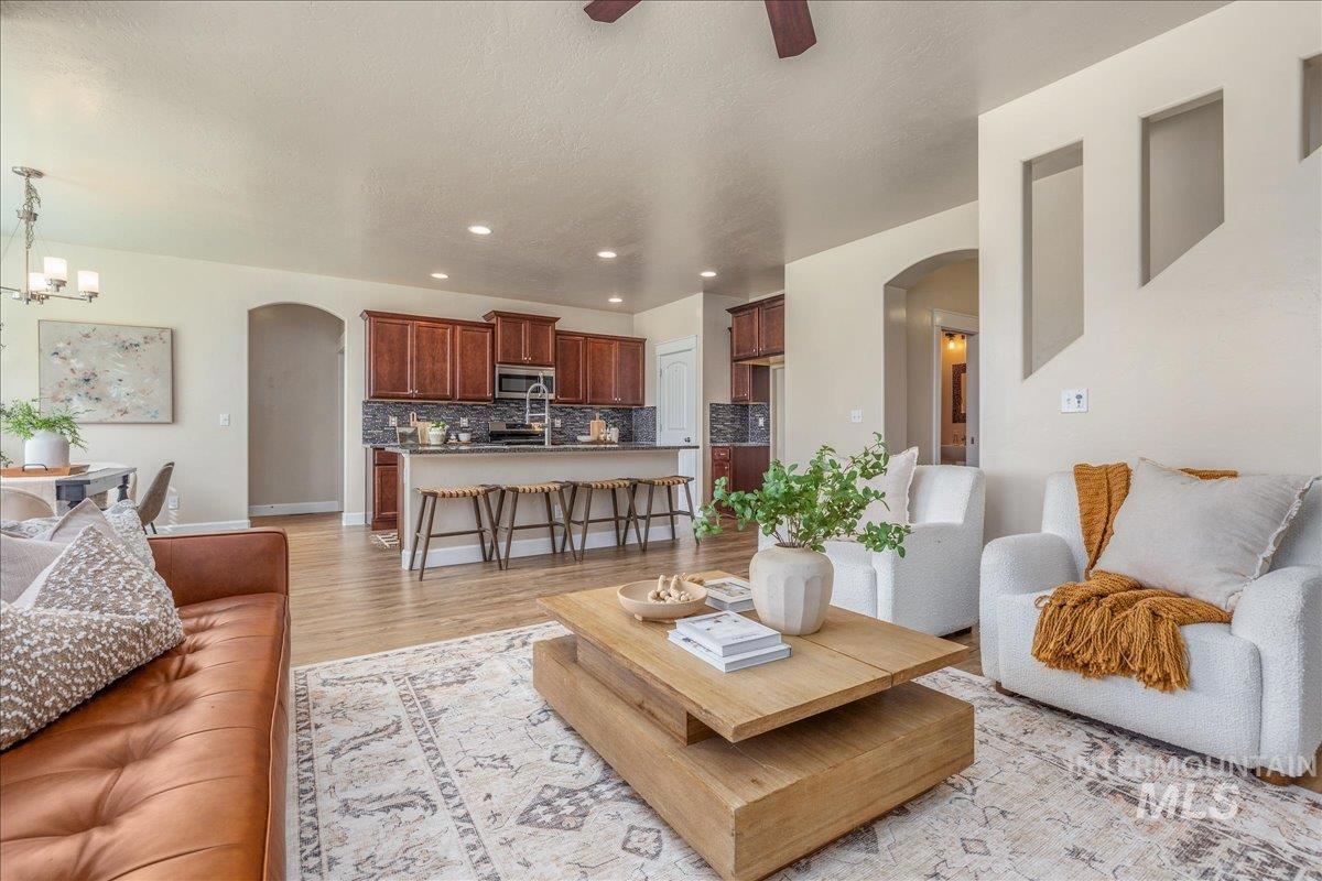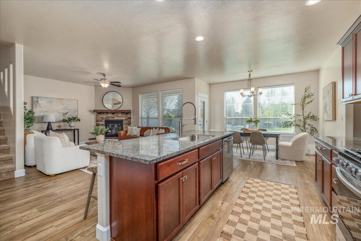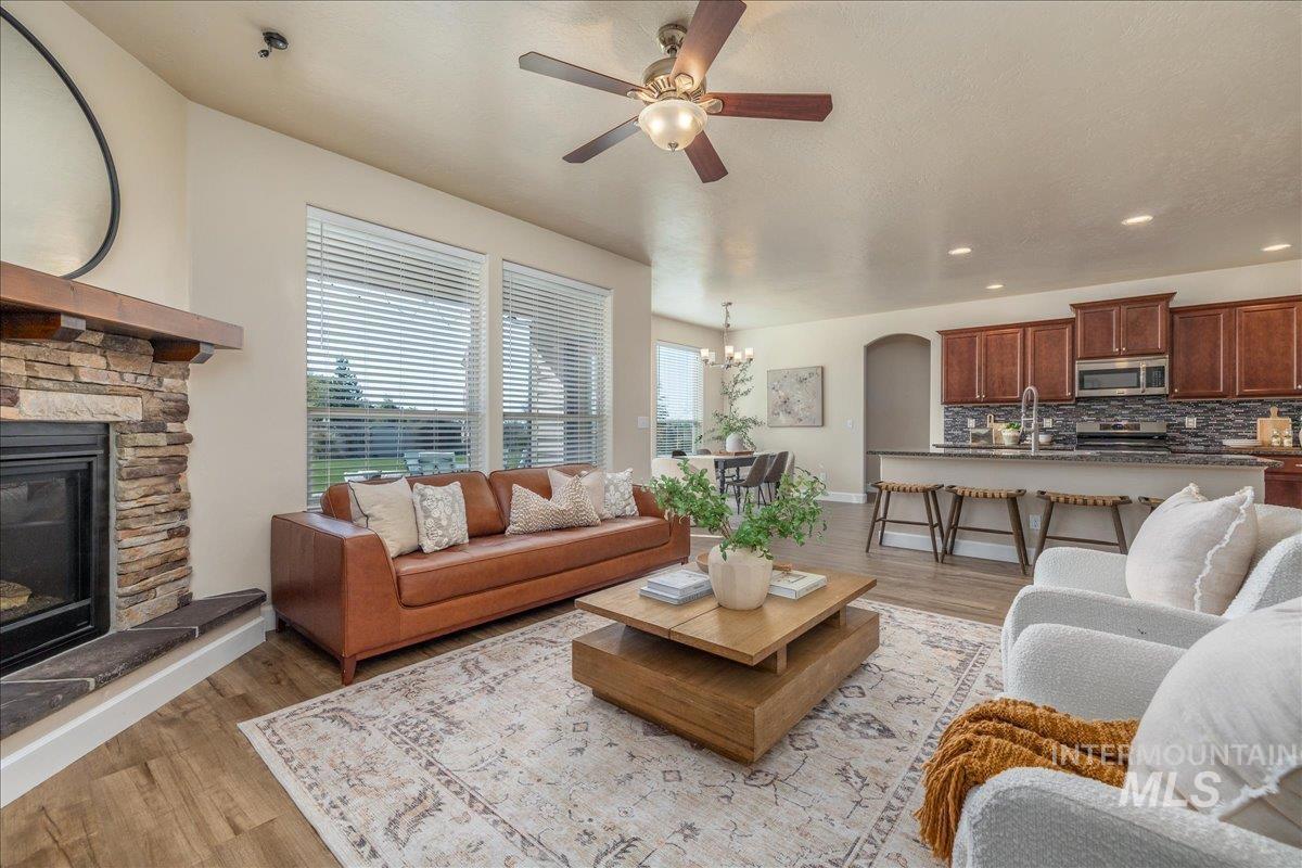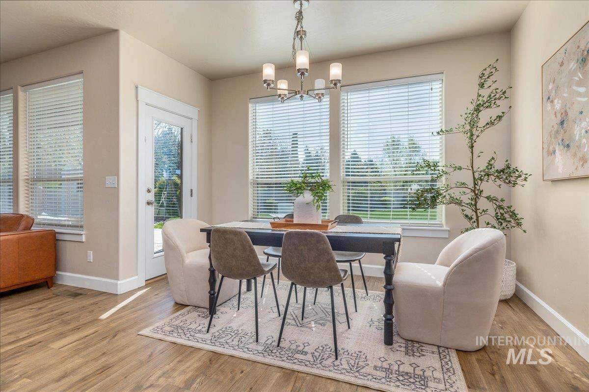 Located on a quiet cul-de-sac in Eagle, this 5 bedroom, 3.5 bath home offers 2,587 square feet of well - designed living space on a generous .302 acre lot. Backing to park-like open space with no rear neighbors, the property provides a rare combination of privacy and scenic surroundings. Inside you`ll find a functional layout with stylish updates throughout, including granite counter tops, updated LVP flooring and stainless steel appliances. The spacious living areas are perfect for both everyday living and entertaining. Tons of natural light enhances the home`s warm and inviting feel. Step outside to enjoy the expansive outdoor living area- ideal for relaxing evenings or hosting gatherings. Conveniently located just minutes from downtown Eagle and with easy access to Highway 55, this home offers the perfect balance of tranquility and accessibility to shopping, dining, and weekend escapes to the mountains.