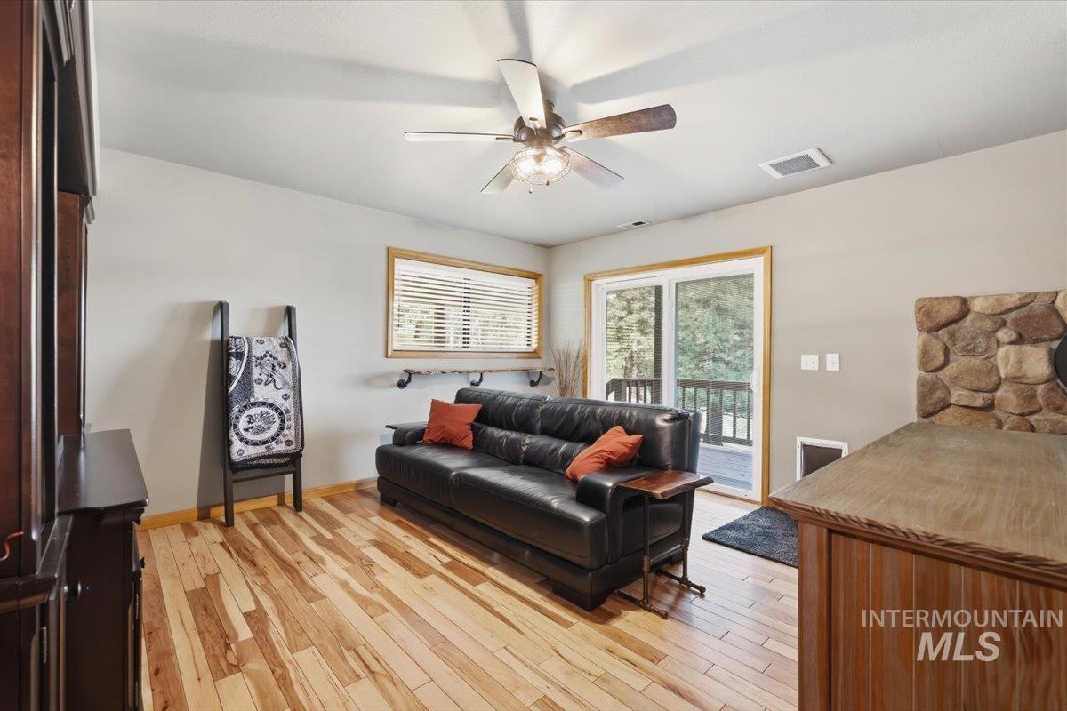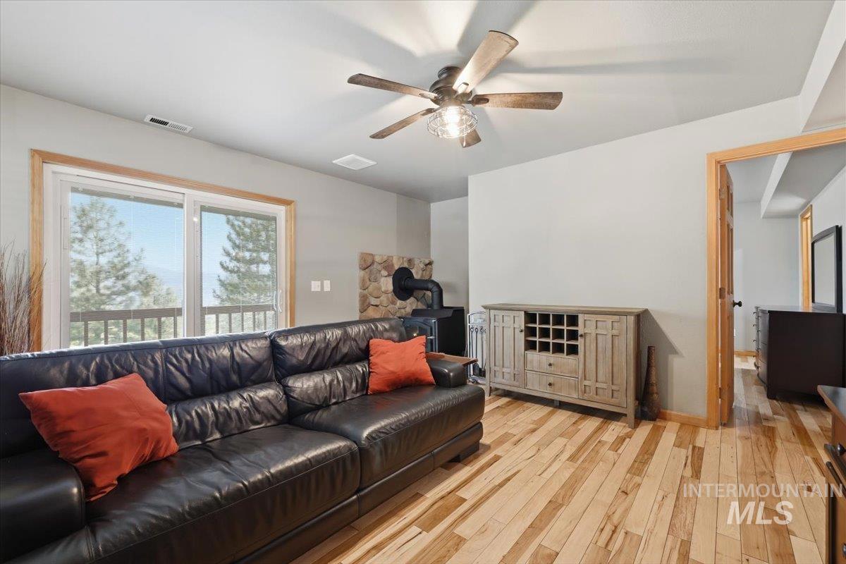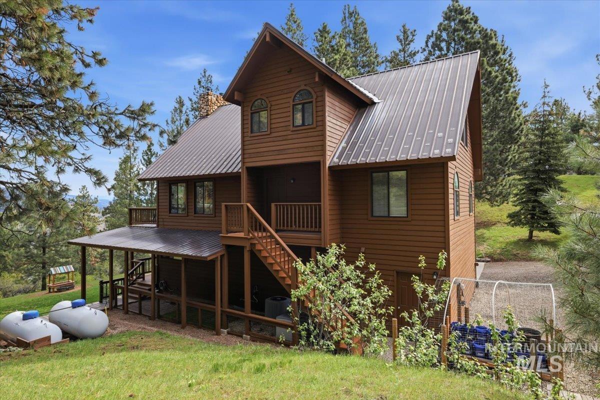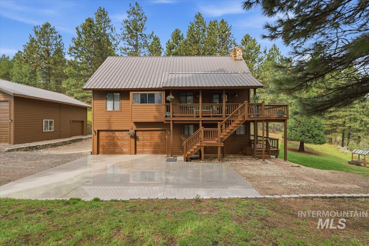 Tucked away on almost 9 tree-covered acres in Wilderness Ranch, this 2,455 sq ft home offers the perfect blend of comfort, seclusion, and natural beauty. A private driveway leads you to stunning views with abundant wildlife including elk, deer, and turkey right outside your door. Inside, enjoy a beautifully designed custom kitchen with granite countertops, updated bathrooms, new interior and exterior paint, and a cozy new wood fireplace. Large windows from the kitchen and living room frame incredible views year-round. Step outside to relax in the hot tub with cabana, or take advantage of the huge insulated shop, covered dog run, and ample RV/trailer parking complete with sewer hookups and 50amp power. The home also includes a duel-fuel portable generator with a manual transfer switch for added peace of mind. A rare opportunity to own your own private Idaho retreat.