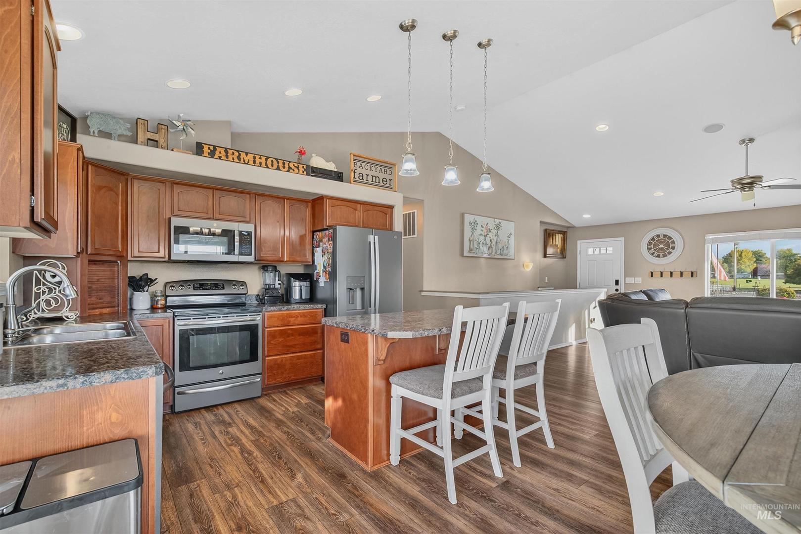 Spacious 4-bedroom home with bonus room, shop & barn on 1.44 acres near Camelot school. Discover the perfect blend of comfort, space, and functionality in this beautiful 4-bedroom, 3-bath home offering over 2,800 sq. ft. of living space. Nestled on a private 1.4-acre flag lot close to Camelot School, this property is ideal for those seeking room to live, work, and play. Inside, you’ll find an inviting layout with an open concept living area, a large kitchen, and a versatile bonus room perfect for a home office, gym, or media room. Outside, the property shines with exceptional amenities: 60x40 shop featuring a loft, radiant heated floors, and a bathroom and lots of room for entertaining or hobbies. 60x40 barn/machine shed provides ample space for storage, equipment, or animals. Plenty of room for parking all your toys, outdoor activities, and future expansion, and full RV hookups. Enjoy peaceful country living in town.