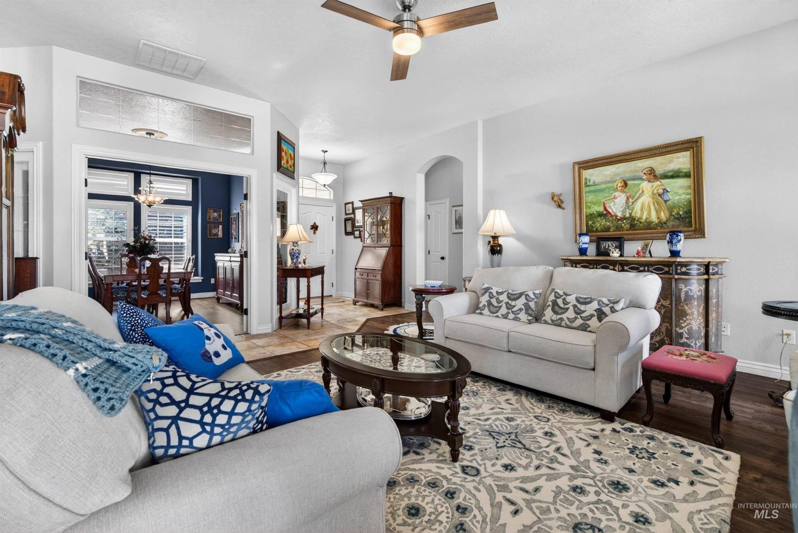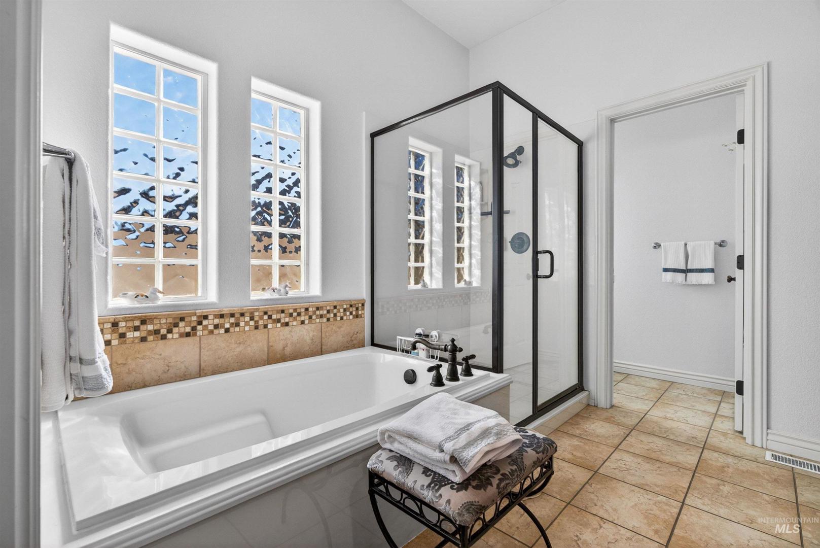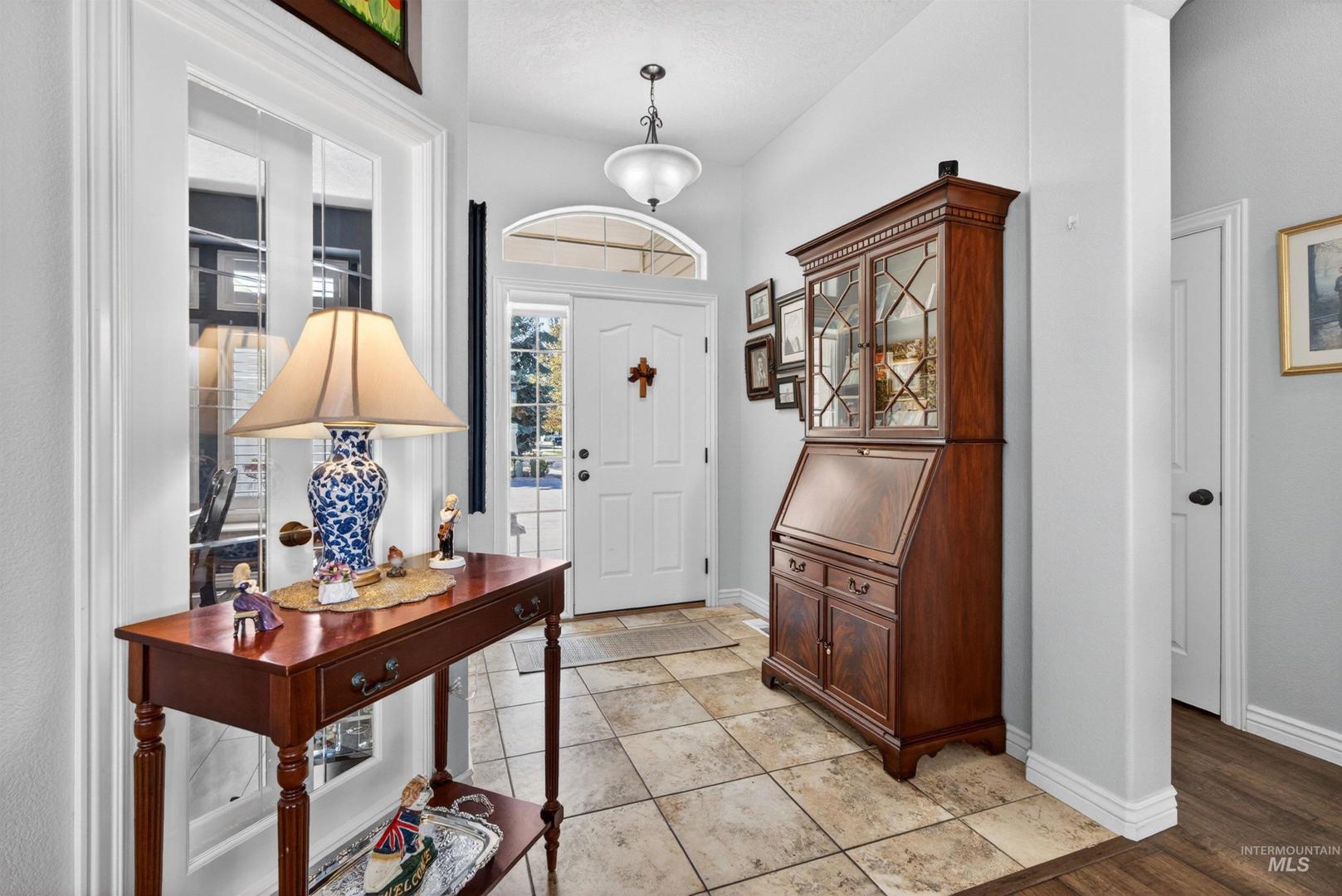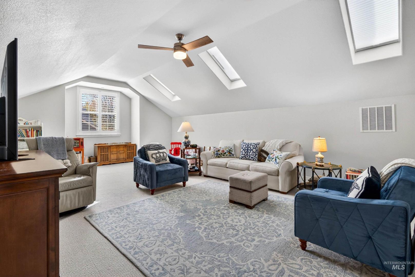 Tucked away on a private lot in a highly desirable Boise location, this beautifully updated home offers the perfect blend of comfort, functionality, and timeless style. Abundant windows and skylights fill the home with natural light. Built by Flaherty Custom Homes and Energy Star Certified, the thoughtfully designed layout features convenient single-level living with a split-bedroom floor plan for added privacy. The upstairs bonus suite provides the ideal space for a guest retreat, home office, or additional bedroom. Designed for modern living, the flexible floor plan easily accommodates both everyday life and entertaining. Recent updates, include refreshed bathrooms, new flooring, and fresh interior paint. Quality features enhance the home at every turn, including Hunter Douglas Silhouette blinds, classic plantation shutters, a central vacuum system, and a water softener with reverse osmosis at the kitchen sink. Major systems have been upgraded for peace of mind with a newer furnace and water heater, plus a brand-new AC in 2025. Step outside to a serene, private patio and enjoy the mature landscaping with fruit and flowering trees. Ideally located near shopping, dining, and healthcare, this exceptional property combines privacy, thoughtful upgrades, and versatile living—ready to fit your lifestyle.