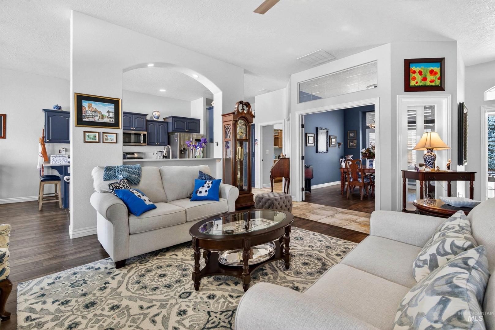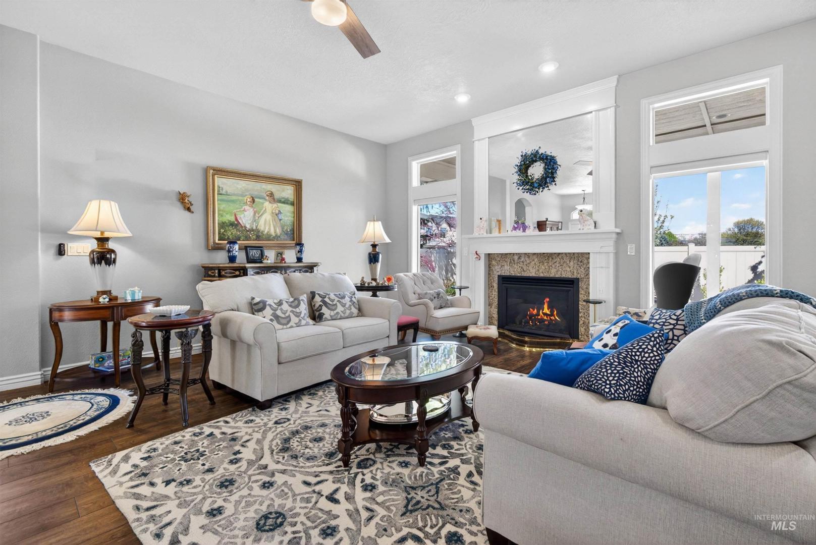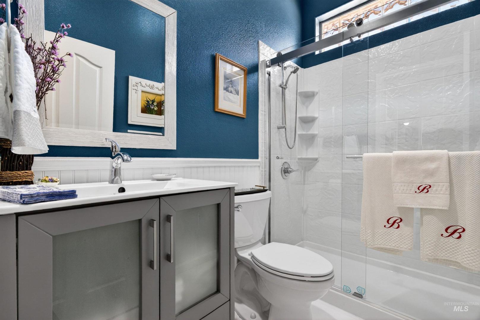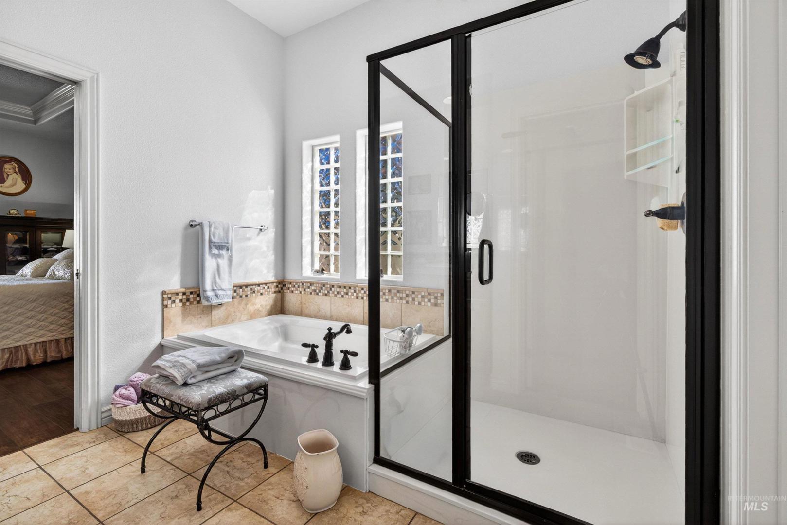 Tucked away on a private lot in a highly desirable Boise location, this beautifully updated home offers the perfect blend of comfort, functionality, and timeless style. Abundant windows and skylights fill the home with natural light. Built by Flaherty Custom Homes and Energy Star Certified, the thoughtfully designed layout features convenient single-level living with a split-bedroom floor plan for added privacy. The upstairs bonus suite provides the ideal space for a guest retreat, home office, or additional bedroom. Designed for modern living, the flexible floor plan easily accommodates both everyday life and entertaining. Recent updates, include refreshed bathrooms, new flooring, and fresh interior paint. Quality features enhance the home at every turn, including Hunter Douglas Silhouette blinds, classic plantation shutters, a central vacuum system, and a water softener with reverse osmosis at the kitchen sink. Major systems have been upgraded for peace of mind with a newer furnace and water heater, plus a brand-new AC in 2025. Step outside to a serene, private patio and enjoy the mature landscaping with fruit and flowering trees. Ideally located near shopping, dining, and healthcare, this exceptional property combines privacy, thoughtful upgrades, and versatile living—ready to fit your lifestyle.