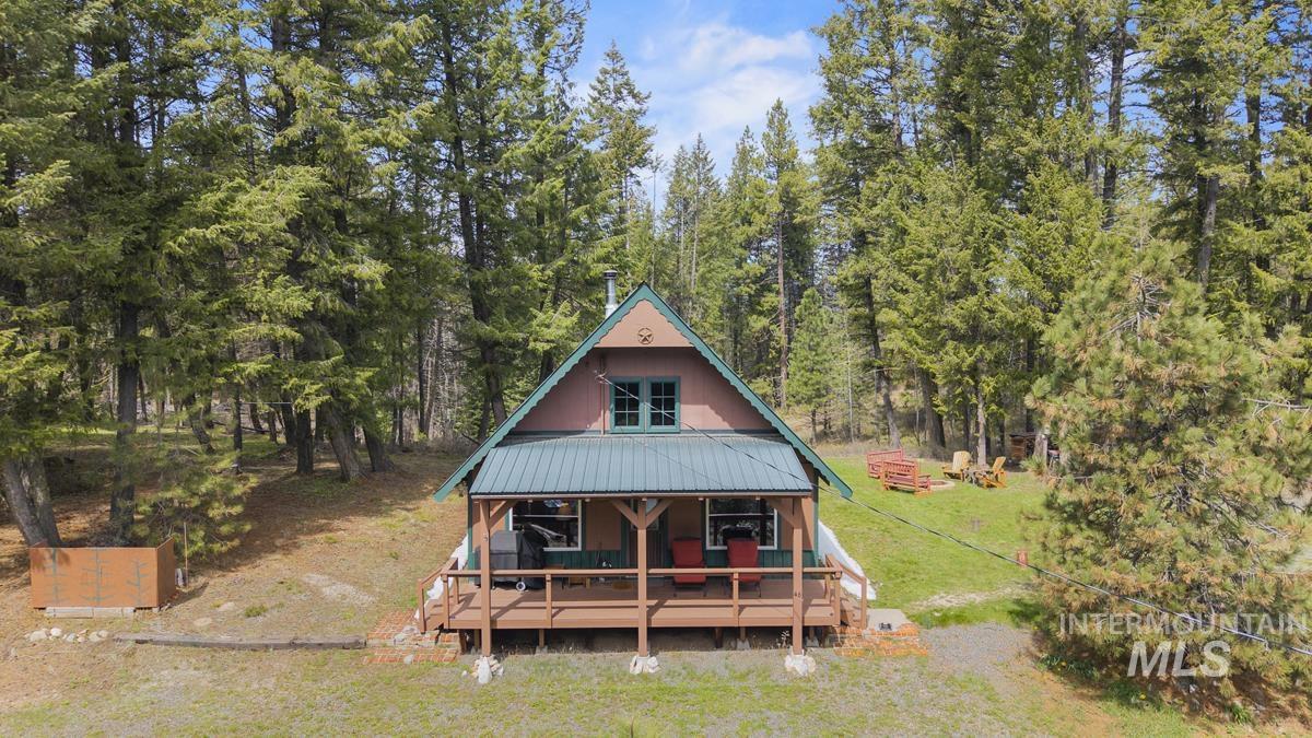 CHARMING CABIN ON 4.4 FORESTED ACRES! Perfect blend of peace and privacy. This 1,360 sq ft cabin features an open, inviting atmosphere ideal for entertaining. Wonderful front covered deck for watching the sunrise with morning coffee OR relax in the shade with a cool drink in the summer afternoons. Two garages provide ample storage for vehicles, tools, or recreational gear. Plenty of exterior parking for RV’s, guests and family. Property boundaries are well marked with a fun walking trail to explore the entire acreage. Consisting of 2 lots, the property provides excellent potential to build an additional cabin. The second lot has prior septic approval. The existing septic is a 2 bedroom system. Located close to miles of backcountry recreation, this is an outdoor enthusiast’s dream. Whether you’re seeking a year-round residence or a getaway retreat, this property delivers space, tranquility, and opportunity.