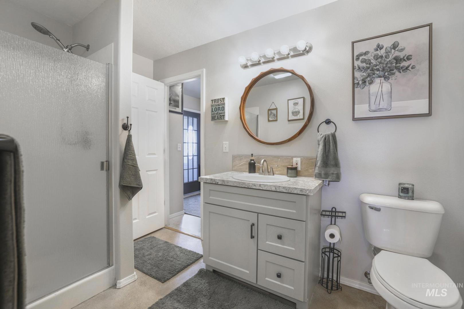 Country charm meets modern updates on this spacious 4 bed, 3 bath home on a full acre in Filer! Enjoy brand-new LVP flooring throughout the main level and a stunning primary suite with a spa-like 5-piece bath and walk-in closet. The open living space features a cozy wood-burning fireplace, bright den, and an expansive kitchen perfect for hosting. Downstairs offers 3 large bedrooms, a full bath, a comfortable family room, and tons of storage. Step outside to a brand-new oversized covered Trex deck overlooking your open acreage—ideal for animals, gardening, or entertaining. The backyard is fully secured with a new metal fence, perfect for pets. With a brand-new 50-year roof (warranty included) and a massive 26’x42’ shop/workshop, this property checks every box. All just minutes from shopping and the golf course!