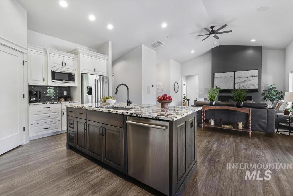 Welcome Home to Thoughtful Design & Effortless Living. Nestled on a quiet street, this stunning 4-bedroom, 2-bathroom home is a masterclass in intentional design and upscale comfort. From the moment you arrive, the fresh exterior and beautifully maintained landscaping set the tone for everything waiting inside. Step through the front door and into a space that has been meticulously refreshed with fresh paint throughout and a warm, cohesive aesthetic that feels both elevated and inviting. The heart of the home centers around a gorgeous natural gas fireplace, perfect for cozy evenings, while the chef-inspired kitchen features a gas stove and oven ready for everything from weeknight dinners to weekend entertaining. The primary suite is a true retreat, showcasing a spa-worthy walk-in shower with multiple shower heads that transforms your daily routine into a luxury experience. For those who love to entertain, this home was built for it. The covered patio is fully equipped with gas stubs for both a firepit and outdoor grill, making al fresco entertaining effortless year-round. Hot tub wiring is already in place, just bring the tub. Inside, whole-home surround sound wiring sets the stage for movie nights, game days, or your favorite playlist flowing from room to room. Every detail has been considered so you can simply move in and start living.