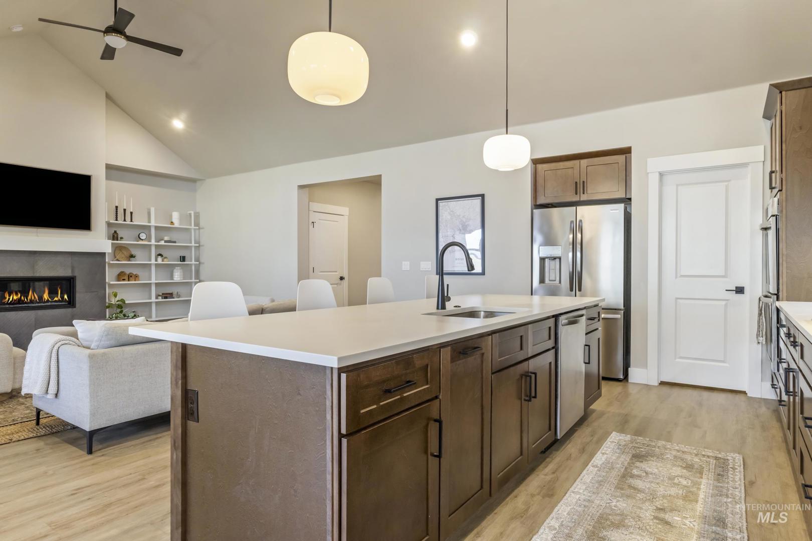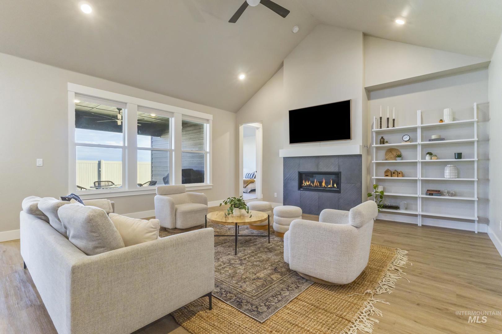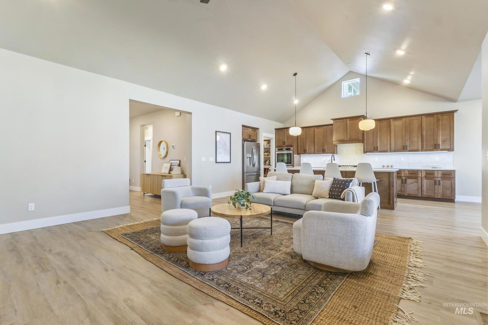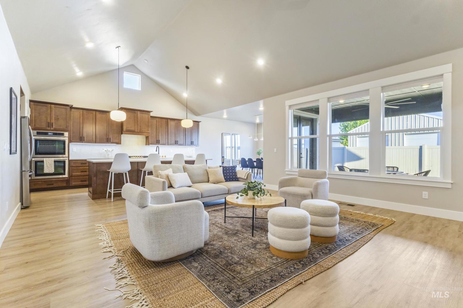 Better than new in Boise with rare RV parking and a 4-car garage. A standout combination you won’t find often!! This thoughtfully designed home offers 3 bedrooms, 3 full baths, plus a flexible office/4th bedroom. Vaulted ceilings in the great room filled with natural light flows into the dining area and kitchen featuring quartz countertops, gas cooktop, designer lighting, and statement backsplash. Spacious primary suite with vaulted ceilings, dual vanity, and a beautifully tiled shower. Wide-plank flooring and a warm, modern palette throughout. Exceptional space, style, and storage in a prime location—bring your toys, there’s room for it all. Enjoy effortless outdoor living with a covered patio perfect for entertaining year-round.
