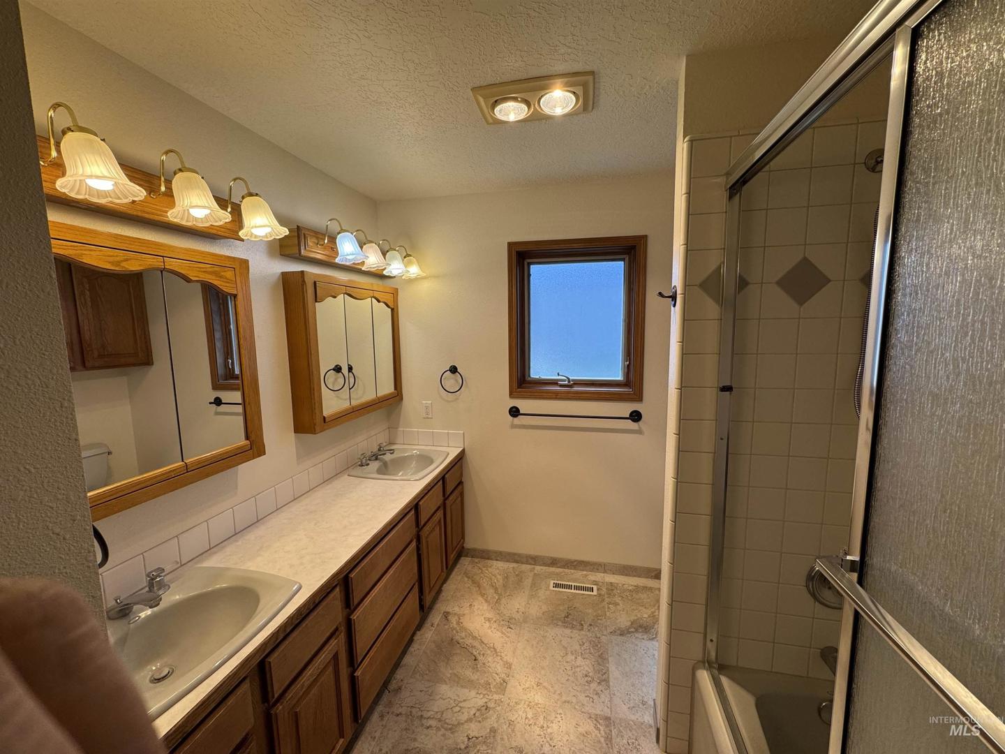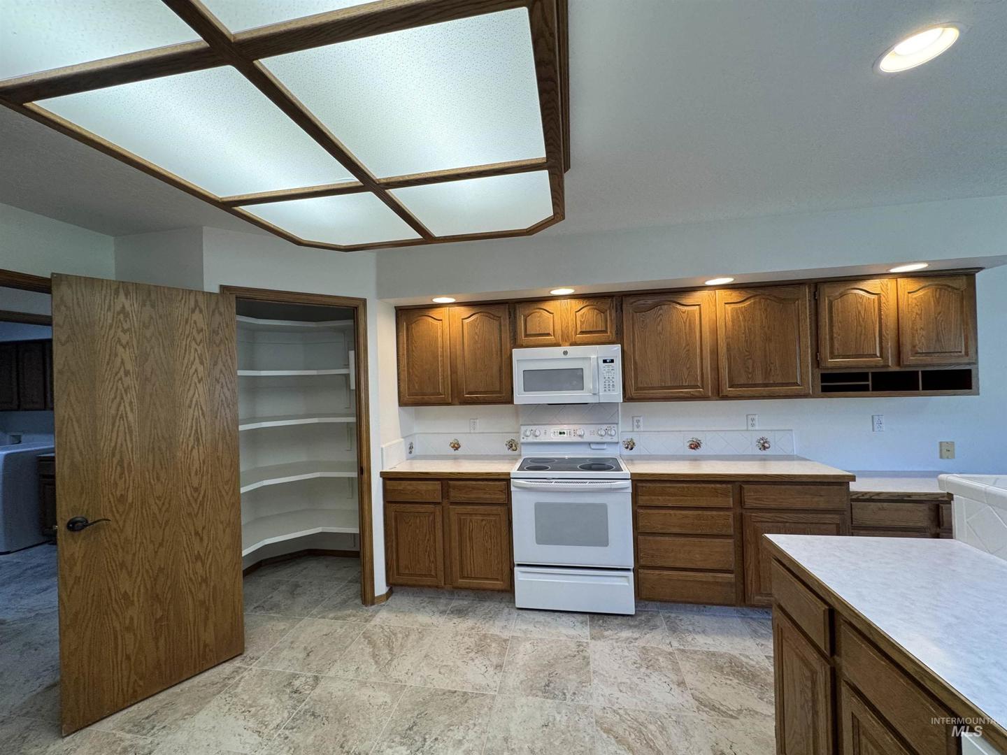 Beautiful new tile flooring installed in this quality built Renaldi home in its picturesque quiet setting with mountain and canyon views. Includes a 35 x 40 heated shop with 2 - 14` overhead doors, 220 volt power with two stations, a large work bench inside and an outside RV Pad outside, the full length. This large attractive home features an alarm system, gas fireplace, Pella triple pane wood trimmed windows throughout with shades, 2 pantries, and a split bedroom floor plan. The primary master bathroom boasts double sinks, extra cabinets and storage, walk-in shower, walk-in closet & a huge jetted tub. Additionally there are 6 solar tube lights throughout the home, surround sound speakers, a covered back patio plumbed with gas, and synthetic stucco exterior. No stairs in the home or access, and could be handicap accessible. Professionally landscaped with over 10 mature trees. Recirculating hot water, circular concrete drive, 3+car garage with a separate climate controlled food storage room. All on a 1.25 acre corner lot in the highly sought after golf course subdivision! A must see!
