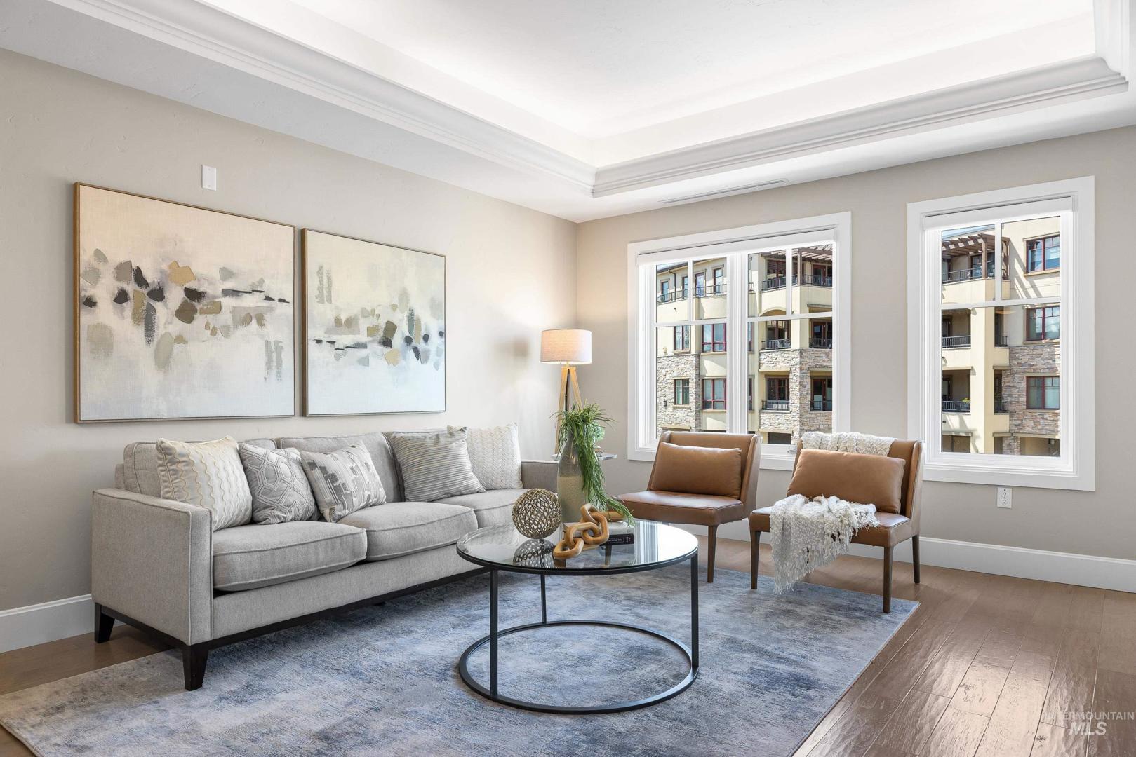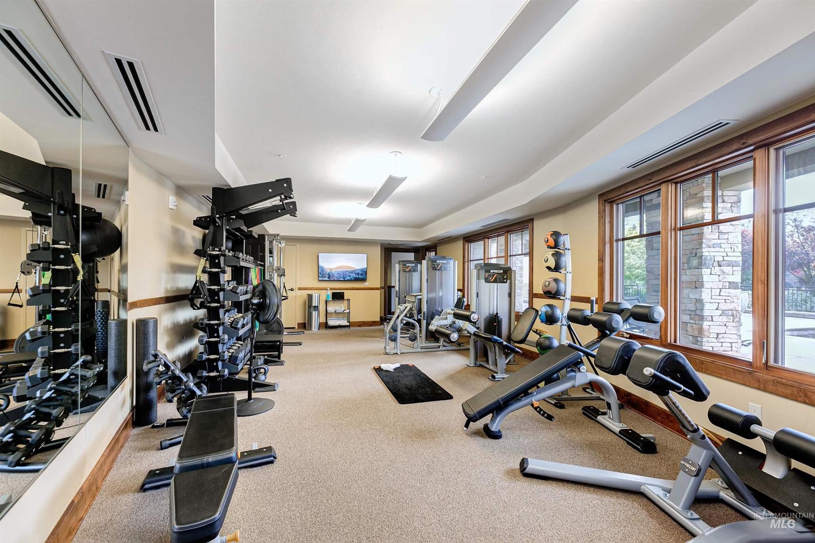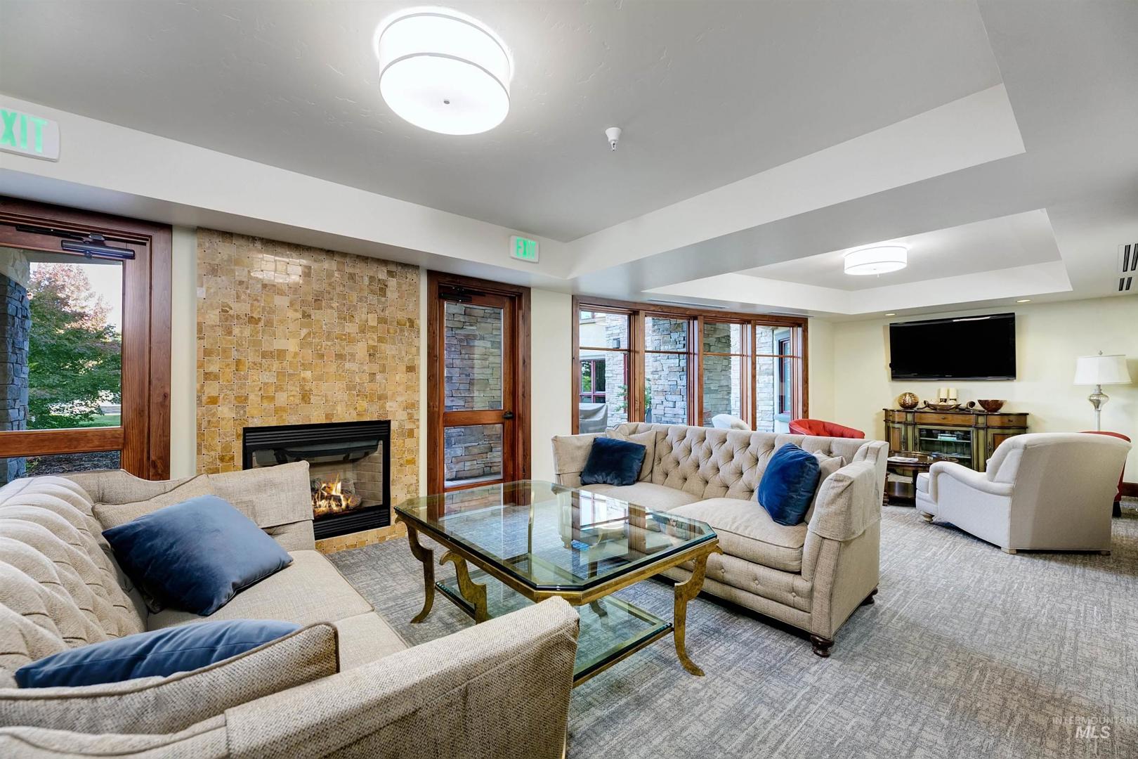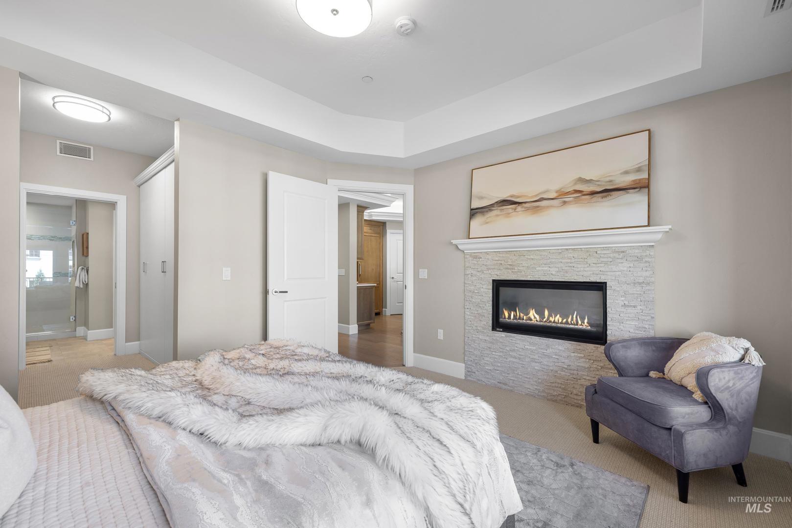Open house Sat 4/25 from 1-4. Experience resort-style living at its finest in this stunning, move-in-ready second-level condo overlooking Ann Morrison Park. Thoughtfully designed for both comfort and style, this home features a gourmet kitchen equipped with a Thermador refrigerator and oven range—perfect for cooking and entertaining. Washer, Dryer and TV included. The well-planned layout maximizes livability, creating a seamless flow between spaces. The large bedroom and extra-large closet is ideal for living and storage. Hunter Douglas Electric Blinds throughout. Step out onto the spacious deck, complete with gas, water, and electric hookups—ideal for outdoor dining and gatherings. Residents enjoy exclusive access to premium amenities, including a private gym, pool, spa, catering kitchen, and elegant club room. Guests are equally well accommodated with three luxurious suites available for rent at a nominal rate. Additional highlights include secure underground parking with a dedicated space, making this home perfect for a lock-and-leave lifestyle. Enjoy breathtaking views of hot air balloon launches and fourth of July fireworks right from your private covered patio. Many Residents love the feeling and sense of community. Conveniently located with easy access to downtown Boise, Boise Airport, the Boise River, Greenbelt, Train Depot and nearby restaurants.