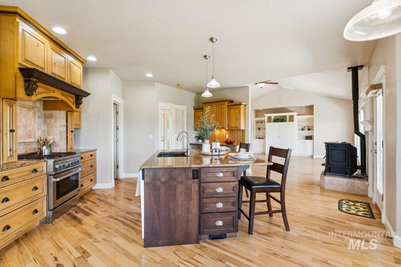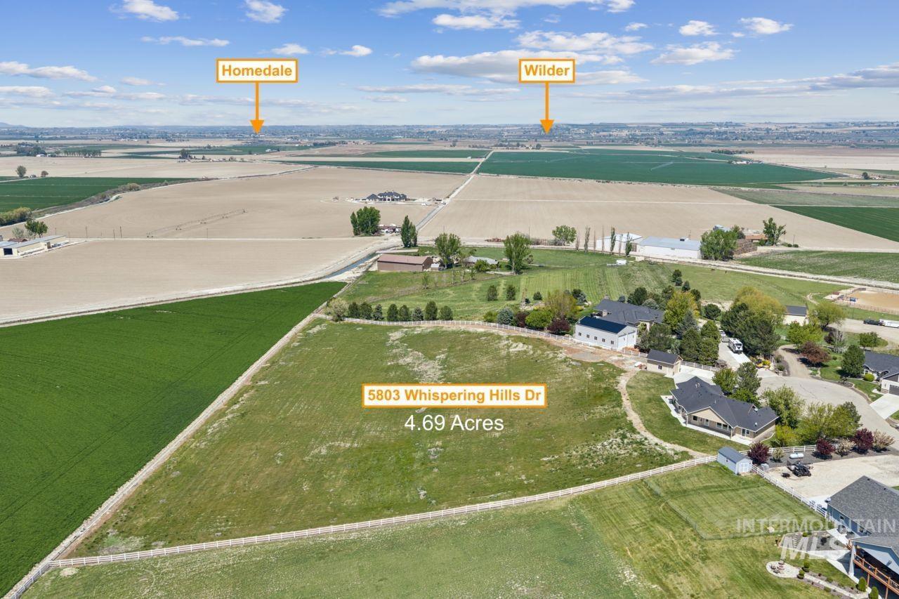 Stunning views, of the Owyhee Mountain range right from your back yard, with room to breathe on your own 5 irrigated acres at the end of a quiet cul-de-sac. This custom home features vaulted ceilings, hickory floors, alder cabinets, and granite countertops. The open great room is filled with natural light and perfect for entertaining. Primary suite includes dual walk-in closets, dual vanities, and a soaker tub. Detached insulated Rv shop provide room for hobbies, storage, or projects. Located just outside Marsing near all the Sunnyslope wineries, the Snake River, and endless recreation areas. A rare find in a peaceful, scenic setting.