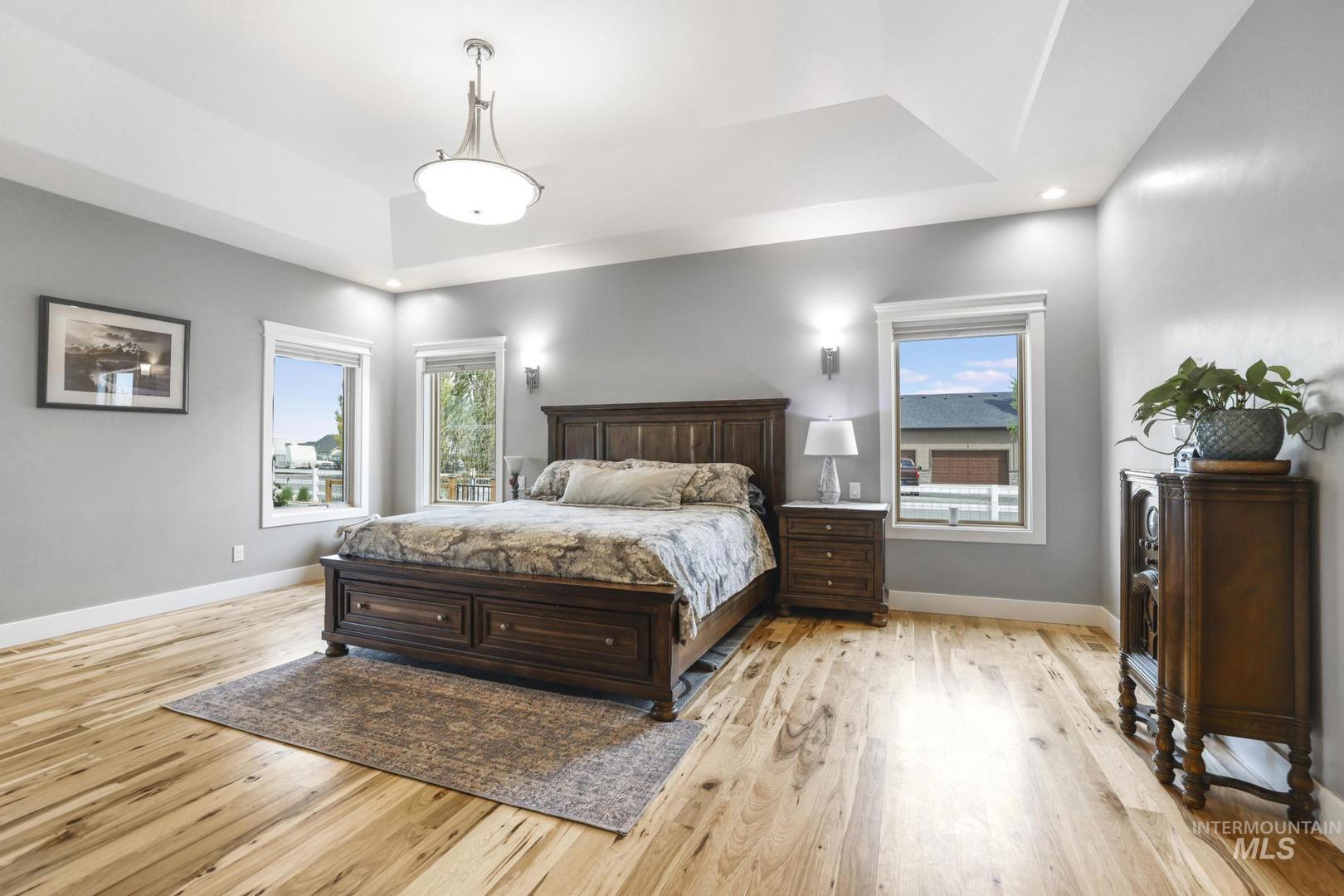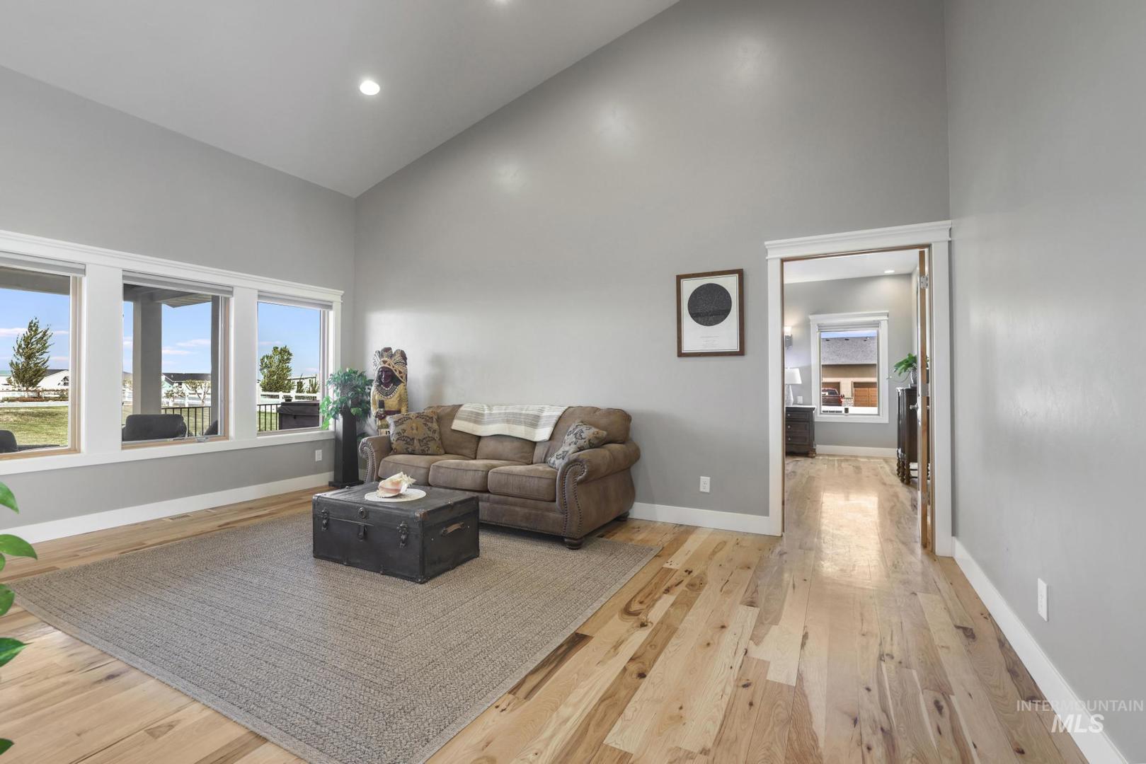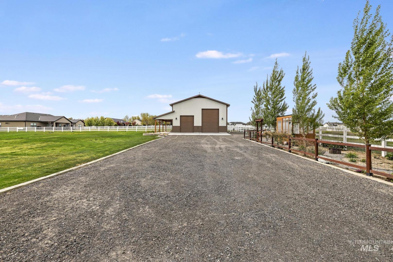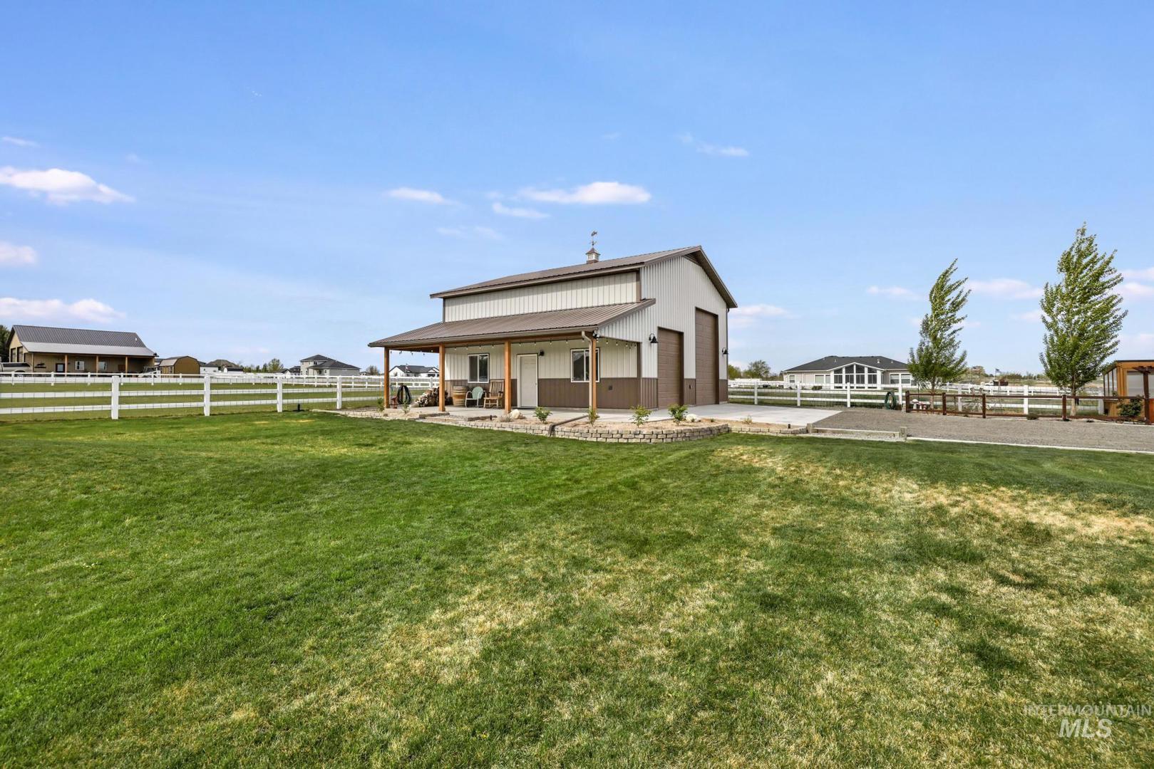 Country comfort meets everyday luxury on this beautiful 1-acre corner property featuring a 4-bedroom, 2.5-bath home, 3-car garage, and a fantastic fully finished 34` x 34` SHOP! Built in 2013, this home is filled with warmth and character, from vaulted ceilings and rich hickory floors, doors, and soft-close cabinetry to granite countertops, Pella windows, a tankless water heater, central vacuum. Retreat to the cozy master suite and enjoy the upscale soaker tub, walk in multi head shower and heated floors! Step out back to a west-facing patio where evenings are made for taking in Idaho sunsets, all within a fully vinyl-fenced yard. A new greenhouse adds charm and function, while the Dog Watch wireless fence offers added peace of mind for pets. New sprinkler system and well pump for no worries maintenance. With space to live, work, create, and unwind, this property delivers the kind of country lifestyle that just feels right.