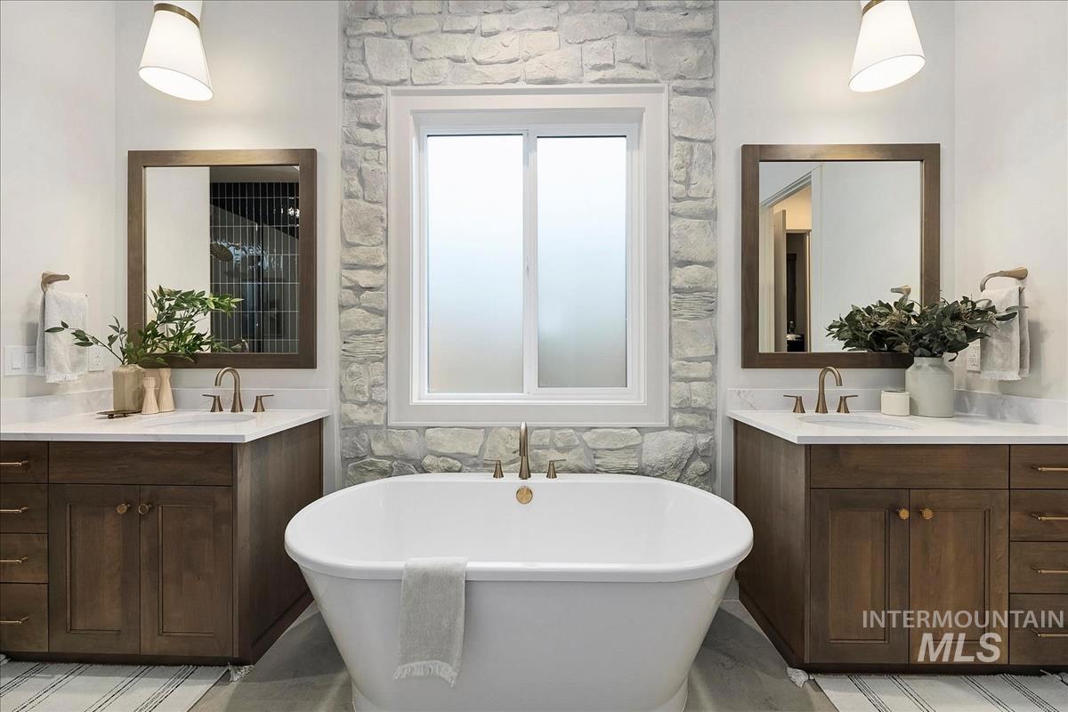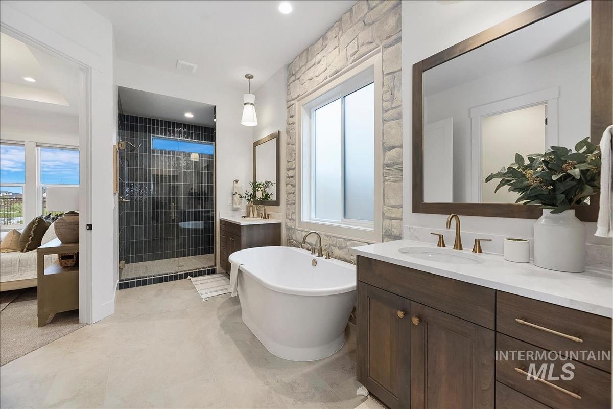 The Ventana by Tresidio Homes. This is a brand new floorplan and it is loaded with thoughtful and functional features. Everything is "just right" sized. Split bedroom design with 2 spacious bedrooms and a full bath at the front and a luxurious master suite as far away from them as we could get it. It includes a gorgeous bath with separated dual vanities on either side of a soaker tub and a huge tile shower. The large closet connects to a fully featured laundry with sink, counter space and cabinetry. The greatroom is accented with our signature coffered and beamed ceiling and an excellent kitchen with quartz counters and premium built in stainless steel appliances. Upstairs is a multi function bonus room with a closet and a full bathroom. Is it a rec room, a theater room or a bedroom suite? You decide! If you have toys or large vehicles, you will love this garage. It is extra deep with 25` deep main bay and 30` deep 3rd car bay. Did I mention the WOW factor?? Have you seen the Valor community? This is a luxury country club / golf resort community with 3 courses, several pools, clubhouse, fitness center, indoor and outdoor pickleball, tennis courts, bocce ball, putting greens, a bar and restaurant, indoor golf simulators and much more! (some amenities under construction or coming soon) There is nothing else like it.