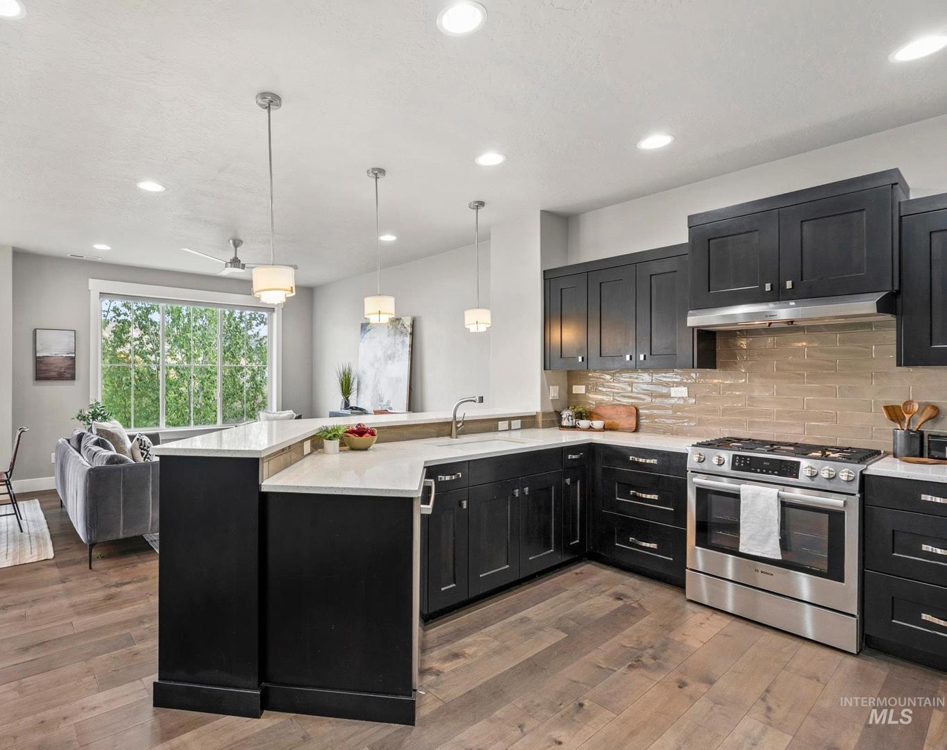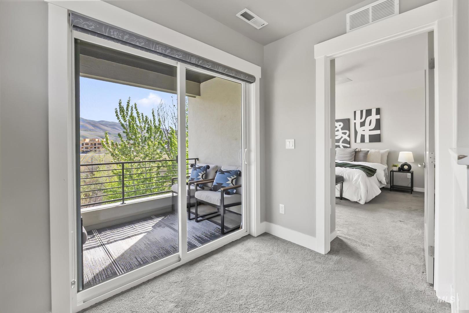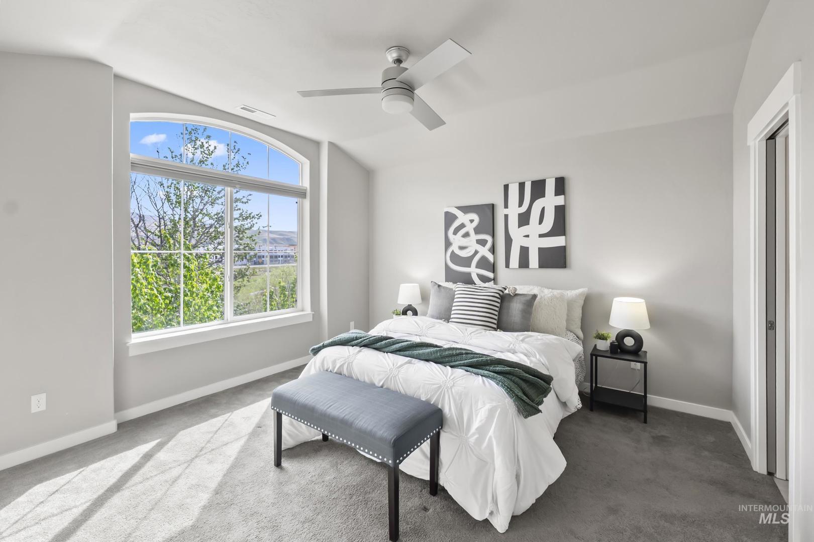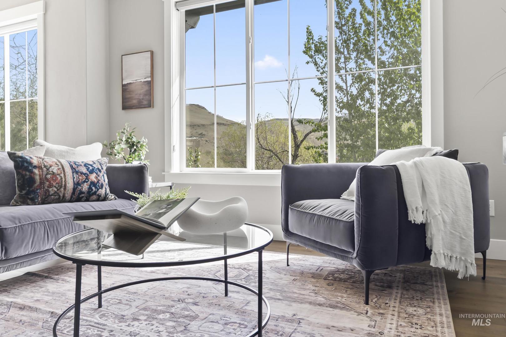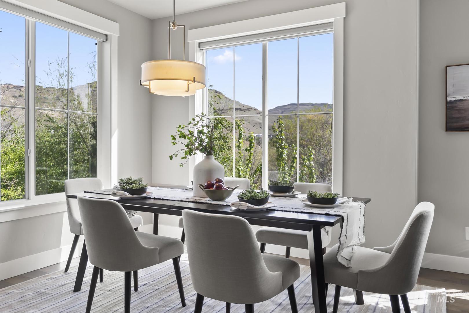 Welcome to modern living in this energy efficient, luxury townhome, where design meets sophisticated style; topped with stunning foothill views and lush greenery. Step inside and you`ll feel it immediately: expansive ceilings, huge windows that pour in natural light, a chef`s kitchen with Bosch appliances and custom cabinitry, and an open layout that makes living easy. Three bedrooms offer walk-in closets and 3 full private baths on each level affording privacy for all. Enjoy solace in the city from your patio terrace, where this end-unit has the front row seat to spectacular sunsets, a creek, and panoramic mountain views. Resort like amenities include a clubhouse with entertaining space, fitness center and a community pool!  HOA dues include maintenance of the exteriors, roofs, common area landscaping, snow removal and street maintenance. And then there’s the location... This spot is prime; it`s blocks to some of the Northeast Boise`s best parks and amenities. Whether you’re wanting to go for a mountain bike ride, hike Tablerock or walk the Greenbelt to enjoy river views, you’re right in the middle of it all. Truly turnkey and better than new, this exceptional townhome offers the perfect opportunity to live a lock and leave lifestyle in the heart of Northeast Boise.