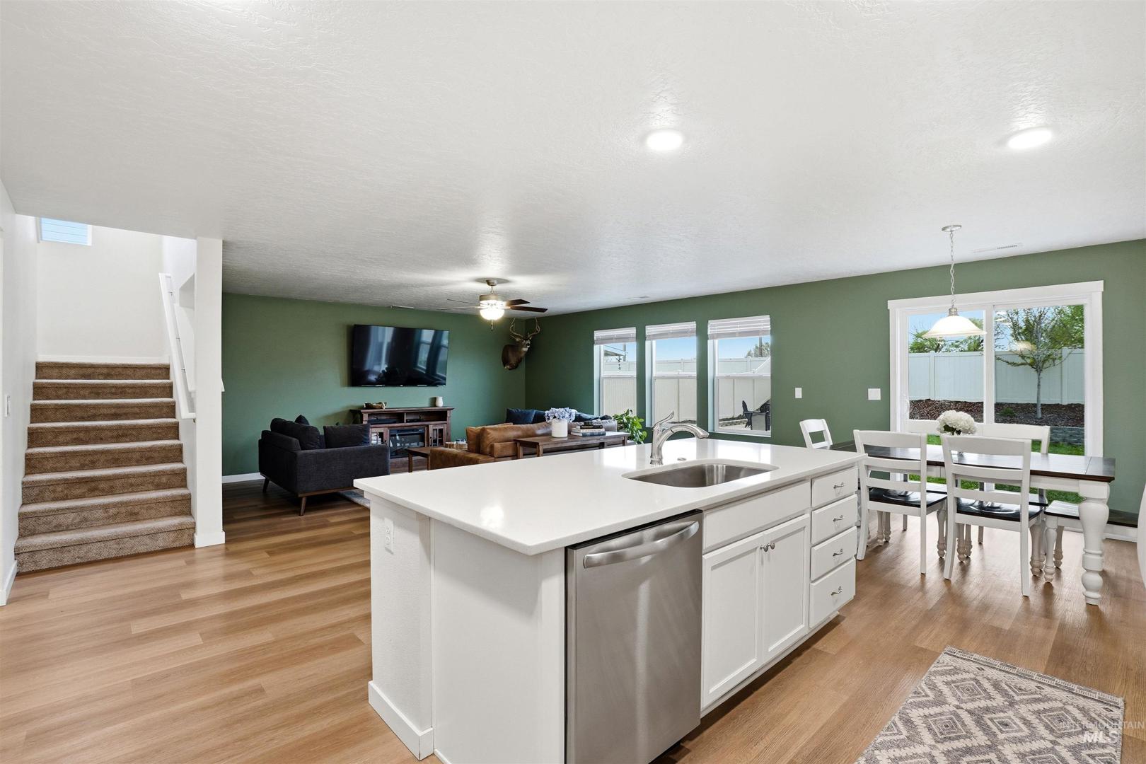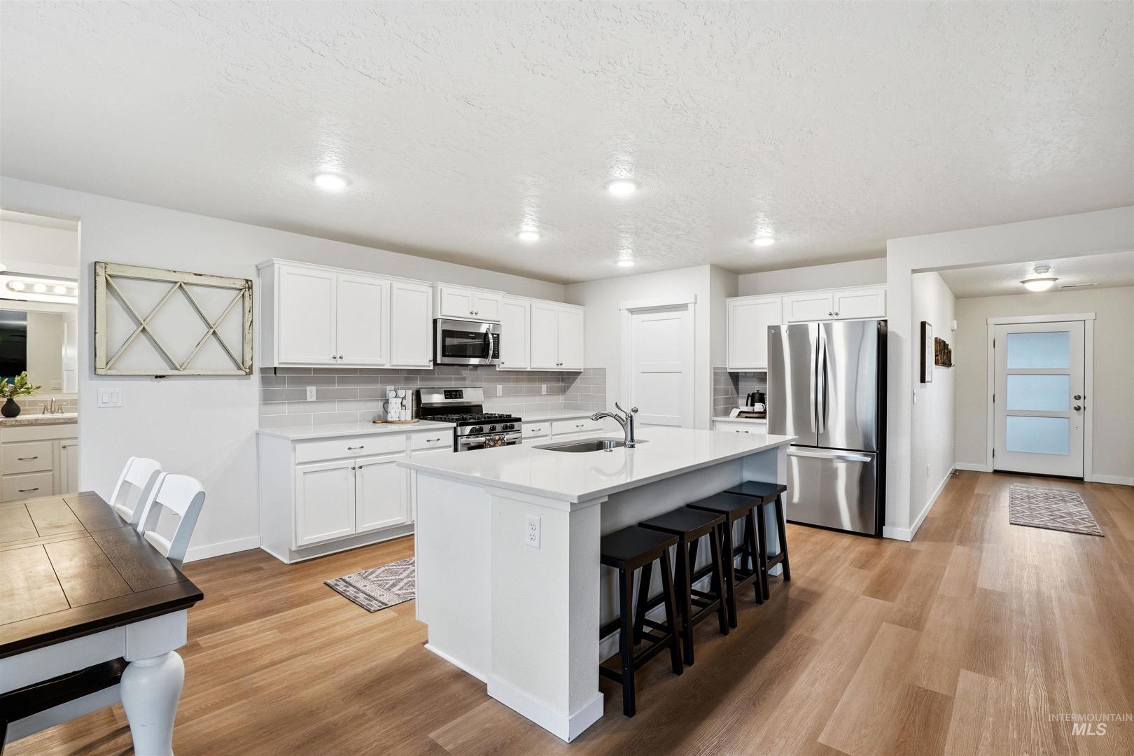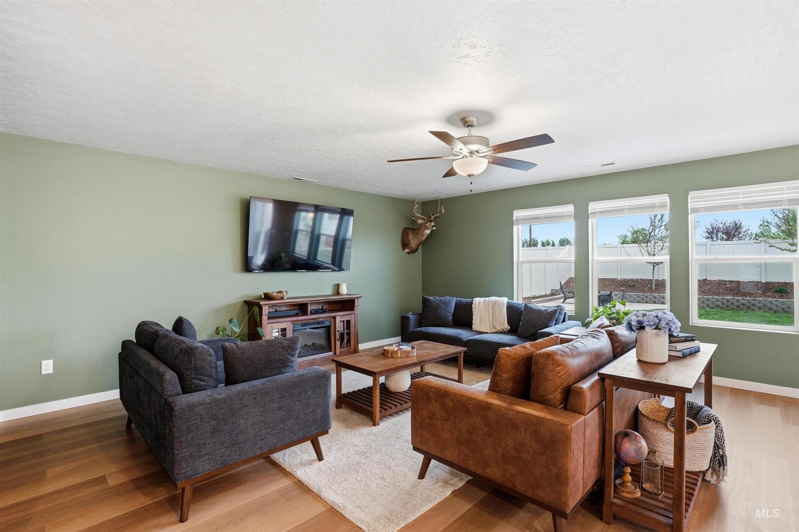 This home offers plenty of space and flexibility with 4 bedrooms plus a den (complete with a Murphy bed) that could easily be used as another bedroom. A full bathroom downstairs adds convenience, and a large loft upstairs gives you plenty of extra room. The bedrooms are all upstairs, keeping things quiet and private. The large lot includes garden boxes, an established peach tree, and spacious side yards. You’ll also love the roomy grass yard and fire pit area, perfect for outdoor fun. The 3-car tandem garage offers plenty of storage space or room for your vehicles or home gym. Just minutes from downtown Star and Eagle, and seconds from the middle school, this home is in a great spot for easy access to everything.