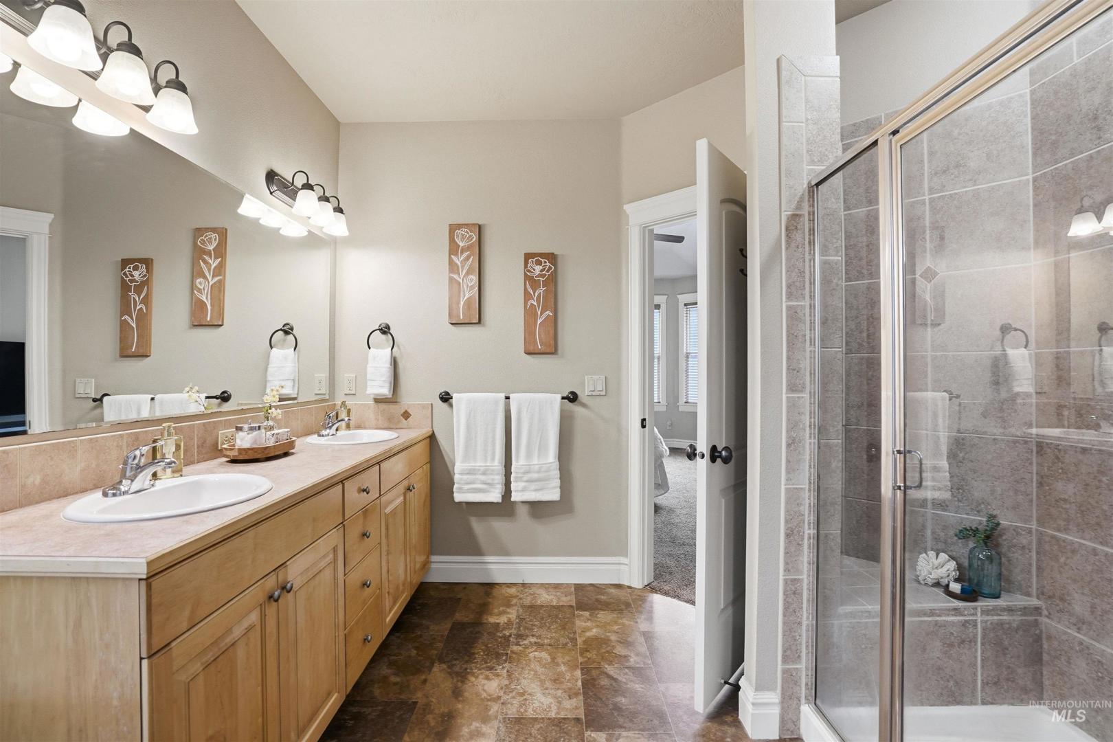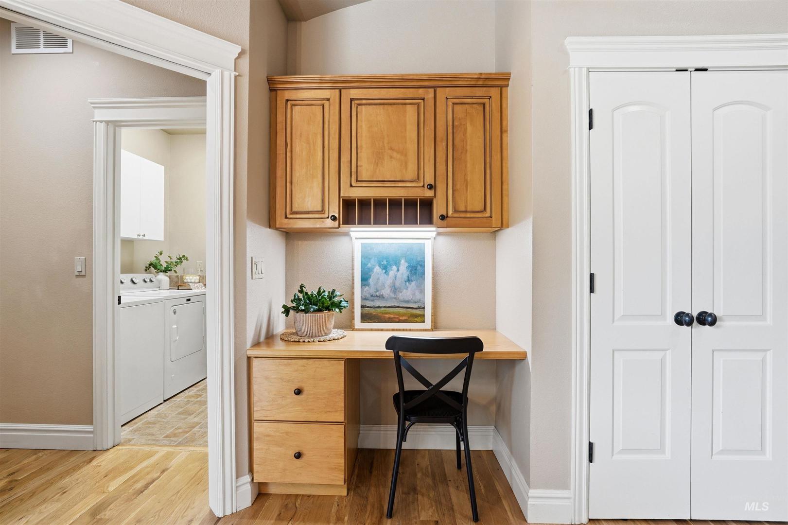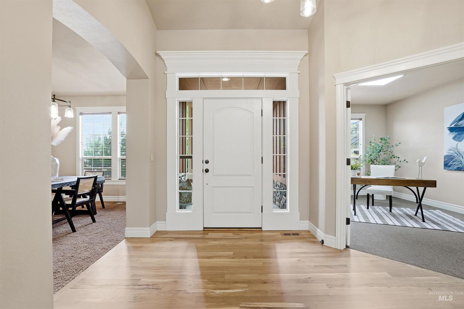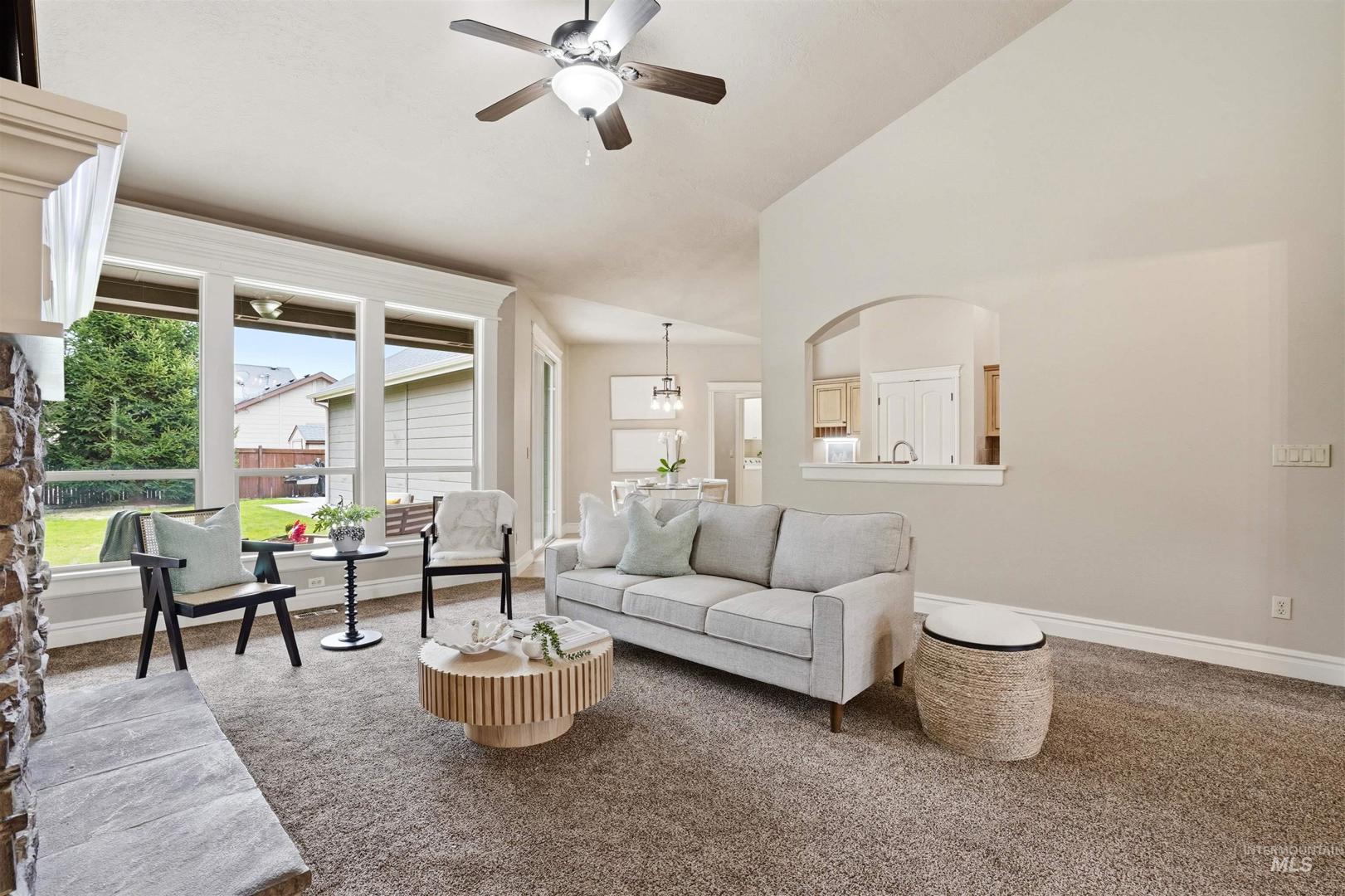 *OPEN HOUSE*Sat 4/25 12–3 & Sun 4/26 1–4. Former Model Home in Paramount. Welcome to this beautifully upgraded, single-level in the highly sought-after Paramount community. Built by Brighton, this residence showcases elevated finishes and a thoughtfully designed split-bedroom floor plan that balances comfort, privacy, and functionality. Step inside to discover rich solid hardwood flooring, soaring vaulted ceilings, and a stunning fireplace that anchors the expansive great room. Designer touches throughout include wood-encased windows and doors, custom cabinetry, and a central vacuum system. The chef’s kitchen is both stylish and functional, featuring abundant granite countertop space, a breakfast bar, stainless steel appliances, dual pantries, a spacious dining area, and a built-in desk—ideal for everyday living or entertaining. The open-concept layout flows seamlessly into the great room, formal dining space, and a private office/den. The primary suite offers a true retreat with a generous walk-in closet, dual vanities, and a relaxing soaker tub. Enjoy seamless indoor-outdoor living with a large covered patio and a desirable south-facing backyard—perfect for year-round entertaining.The fully insulated, climate-controlled garage, along with an extended concrete side pad, great for vehicles, storage, or recreational toys.Enjoy resort-style pools, parks, ponds, gym, and walking paths.