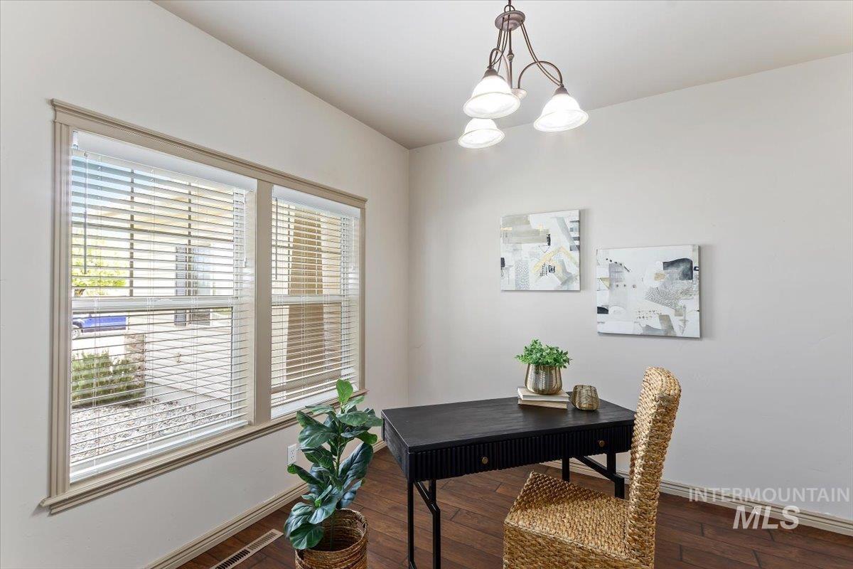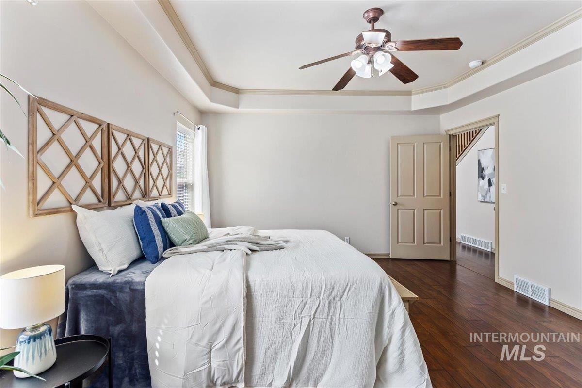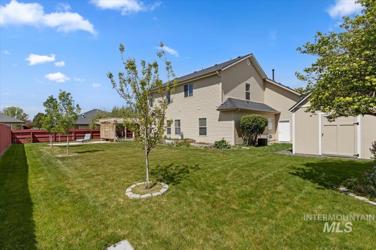 Step into this spacious and thoughtfully designed 4-bedroom, 2.5-bath home, perfectly situated on a desirable corner lot in a sought-after neighborhood. With beautiful vaulted ceilings and a functional, open layout, this home offers comfort and style for everyday living and entertaining. This home features a formal dining area, a bedroom or office area on the main level, plus a versatile bonus room ideal for a playroom, or media space, complete with its own mini-split for customized temperature control. The kitchen is both inviting and practical, offering granite countertops, newer appliances, and sturdy pull-out drawers for easy organization. A new roof (2023) adds peace of mind! Enjoy the private backyard with a designated fire pit area, cozy patio, garden beds, and several fruit trees, perfect for relaxing or entertaining and a storage shed that adds extra convenience. Located just minutes from shopping, dining, and the scenic canyon rim, this home blends functionality, upgrades, and lifestyle in one great package.