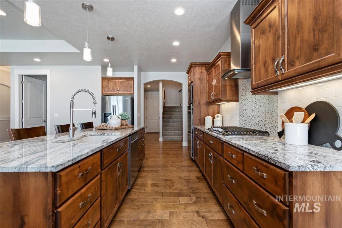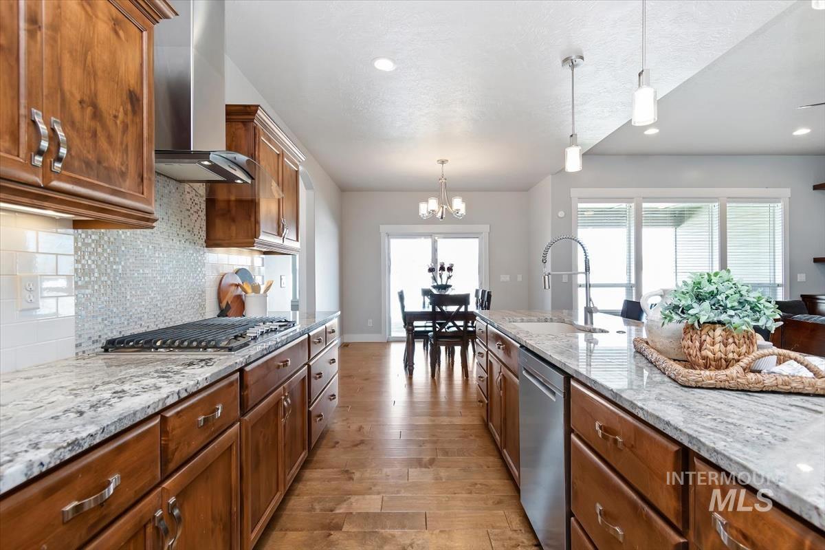 OPEN SAT 11-2, SUN 1-3. One owner custom built home by one of Boise Best Builders hands down! So many options w/this versatile floor plan incl poss multi-generational living w/huge bonus private room w/tall walls & private bth & closet. Gorgeous kitchen w/huge island, dbl ovens, gas cooktop, under counter lighting large walk in pantry all overlooking eating area & huge great room w/ built ins, floating shelves & beautiful gas frplc surrounding by stone. Luxurious master w/tiled floors, sep tub, tiled walk in shower (kurdi lined, prism sealed grout, linear drain), granite counters, dlb vanities, huge WIC. Spacious spare beds, 2 w/WIC. Spare bath nicely done w/dbl vanities, tiled walls, glass door. Wood floors throughout entry, walkway, kitchen & eating. All counters granite! No vinyl or laminate. Large utility room w/cabinets, mud sink. 9&10` ceilings throughout. Hugely oversized garage. insul, 8x11 workshop area, 8` doors. HERS energy/energy star for efficiency, conditioned crawl, 90%+ HVAC. Oversized cvd patio area, no neighbors behind. Water softener, plumbed for central vac, gas & elec dryer option, under stair storage. This property has opted in for Sky Mesa HOA gaining access to stunning infinity-edge pools, 2.5 acre park & cross well hook up for spklrs for short irrigation year. This home is CLEAN and move in ready, and if you want quality construction, you have arrived!