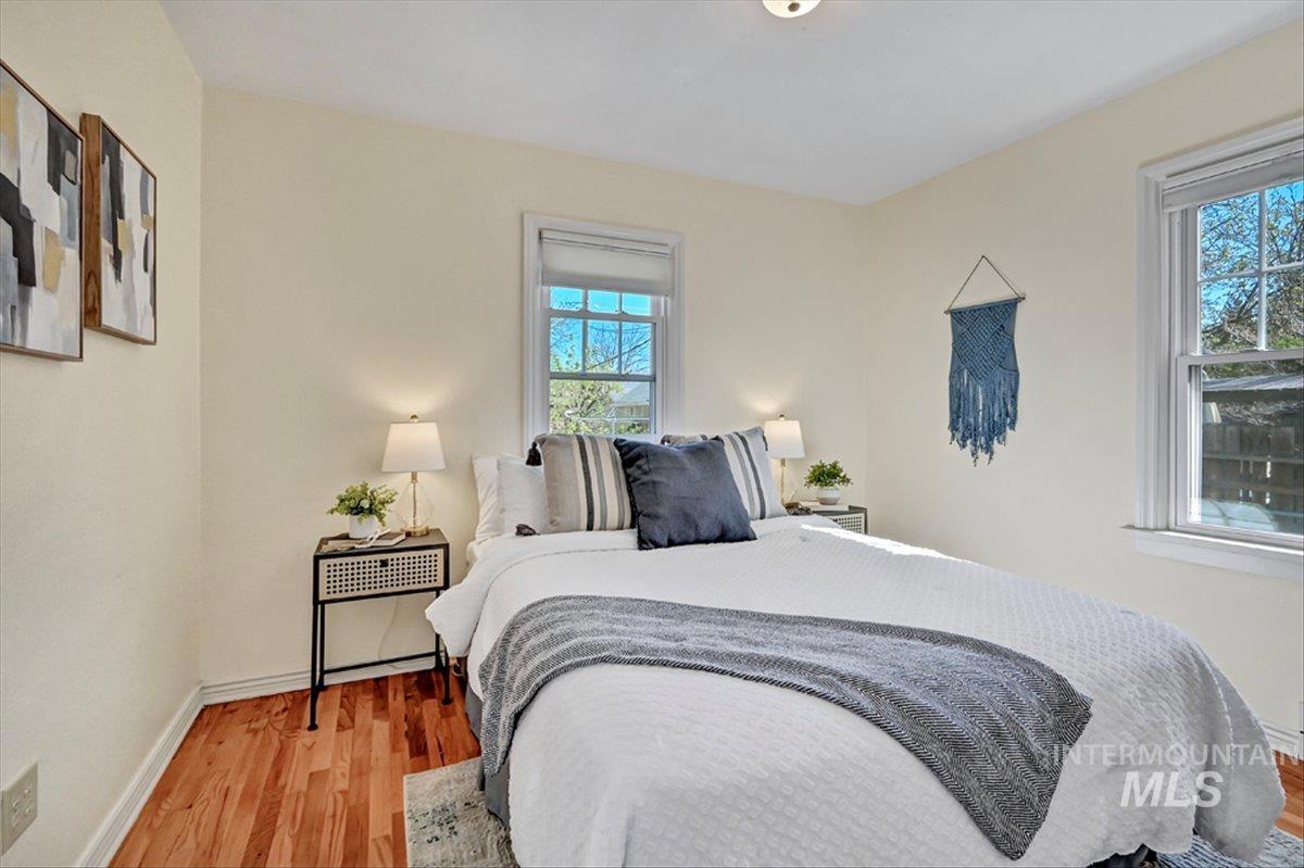 Here is your chance to own one of the best locations Boise has to offer. Come home to this lovingly maintained, pleasantly quiet, light-filled residence, filled with wonderful natural light and offering perfect access to both Downtown Boise and Garden City. Fresh, airy interiors are complemented by hardwood floors, soft neutral paint, two updated bathrooms, and a beautifully renovated kitchen. The home offers four generously sized bedrooms, including lower-level bedrooms with code-compliant egress windows. All windows are double-paned for efficiency and comfort. Situated on a large corner lot, the property features a spacious two-car garage with convenient street access—no tight alley entry. Perennial garden beds are just beginning to bloom, adding color and character to the outdoor space. Just a few blocks from Esther Simplot Park and a little over a mile from the Ridge to Rivers trail system, this home offers easy access to miles of scenic trails and outdoor recreation.