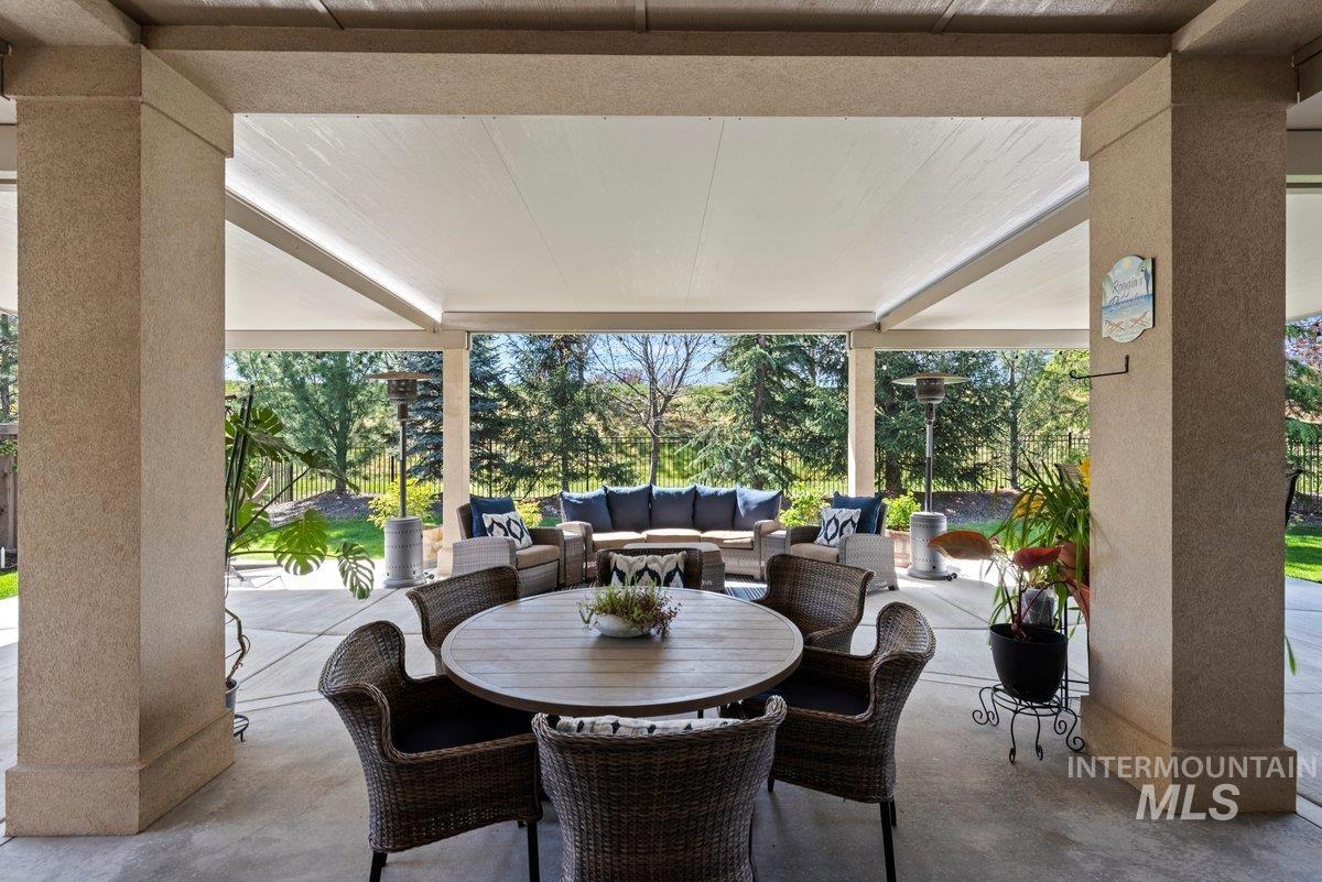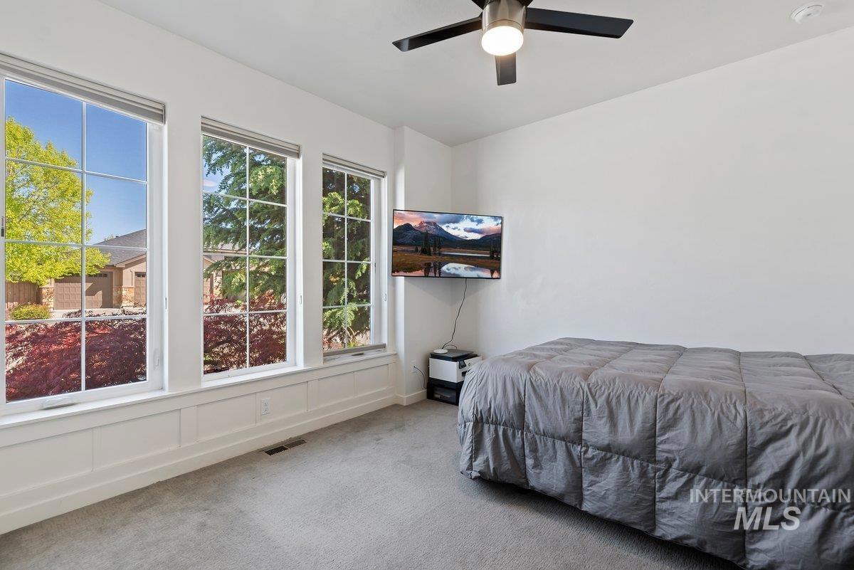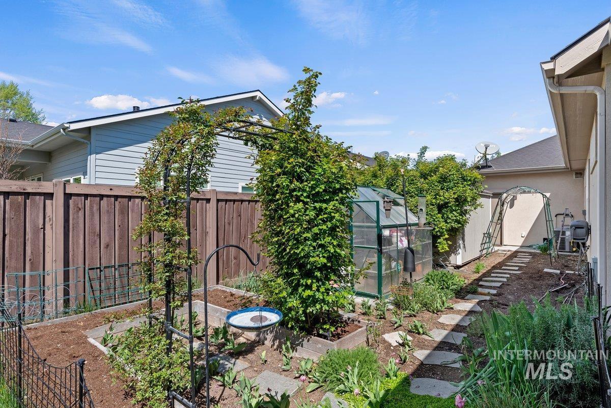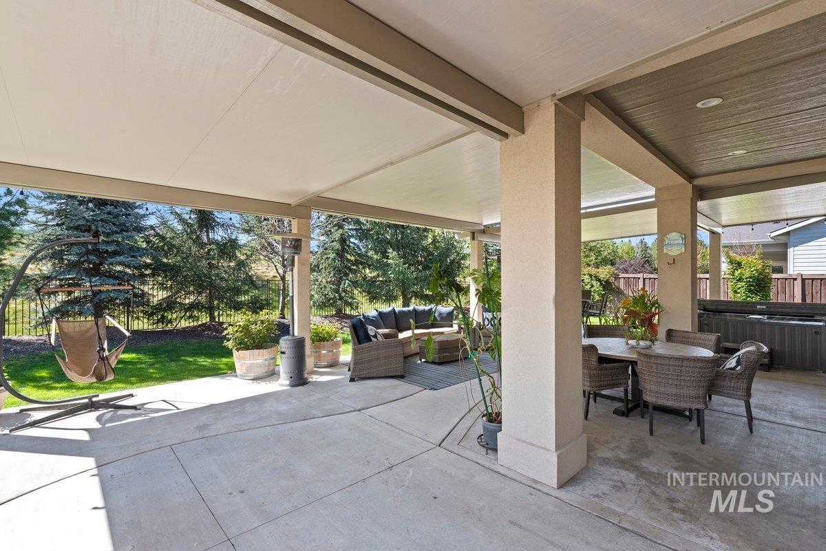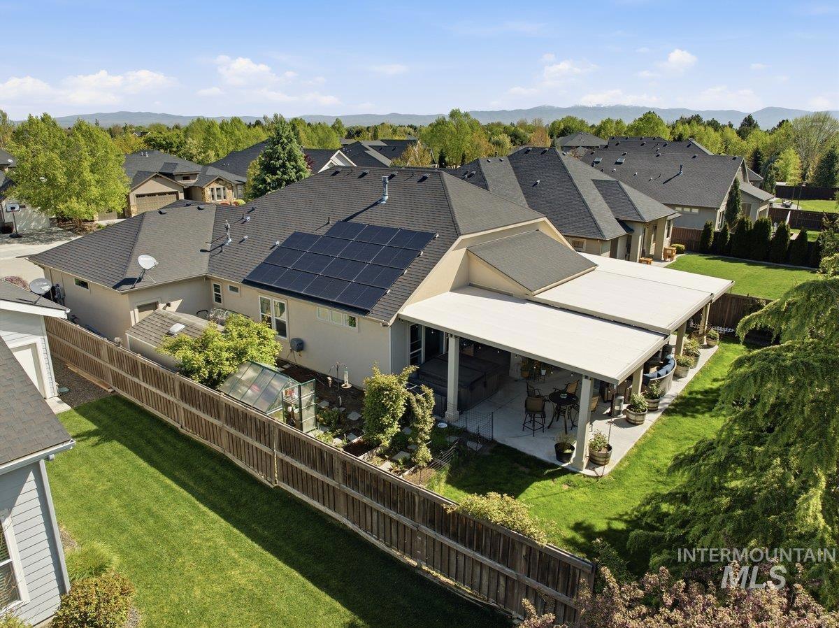 Spurwing Greens Stunner! Located in one of Idaho`s most desirable Golf Course Communities with access to lush common areas, over 6 miles of paved and natural pathways, tennis and pickleball courts, club house & pool, fitness facility, and a restaurant. Once you step into this beautifully appointed home, you are greeted by a light and bright interior. With an abundance of windows throughout, natural lighting adds warmth to the open concept that features extensive trim, moldings, ceiling millwork and a cozy gas fireplace. The upgraded kitchen includes hardwood flooring, custom cabinets, gas cooktop, Bosh appliances, Quartz counters with full tile backsplash and a pantry. The split bedroom design creates space and privacy between the 2 bedrooms + office and the primary bedroom/bathroom suite that features: direct access to the back patio, custom ceiling work, walk-tiled shower, soaker tub, custom tile flooring, dual vanities with Quartz counters and walk-in closet. To top off this amazing home, the backyard is a glorious retreat perfect for entertaining and relaxation. The extensive covered patio creates ample space for BBQ`s, Hot Tubbing and taking in the gorgeous landscape design. Large garden space and storage shed complete the outdoor setting. Solar Panels= Huge electric savings! Last, but not least...Oversized triple car garage checks in at over 900 sq. ft with epoxy flooring.