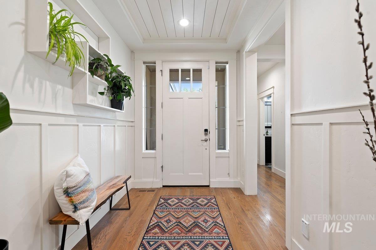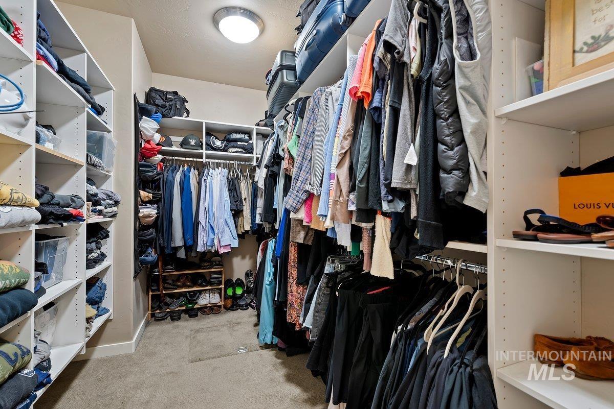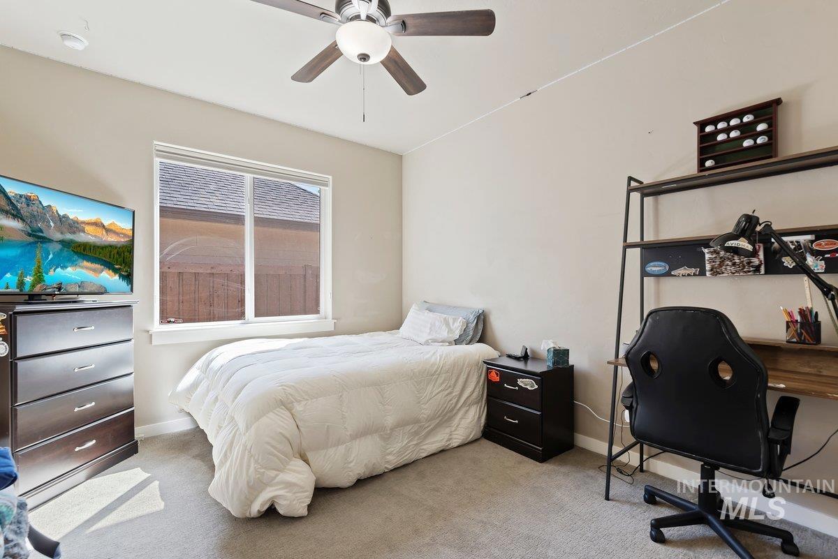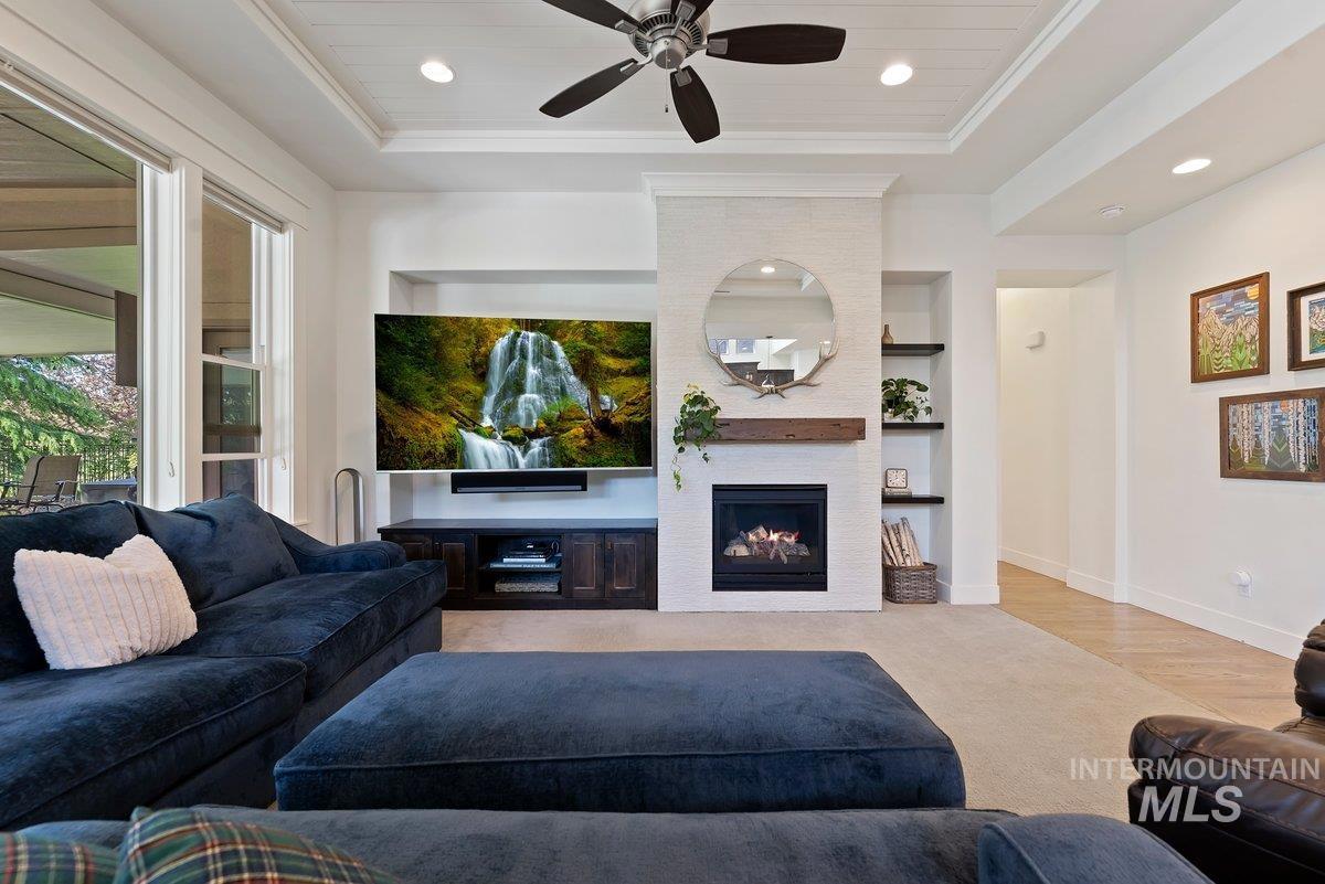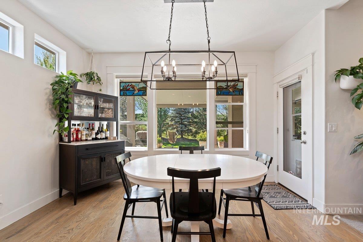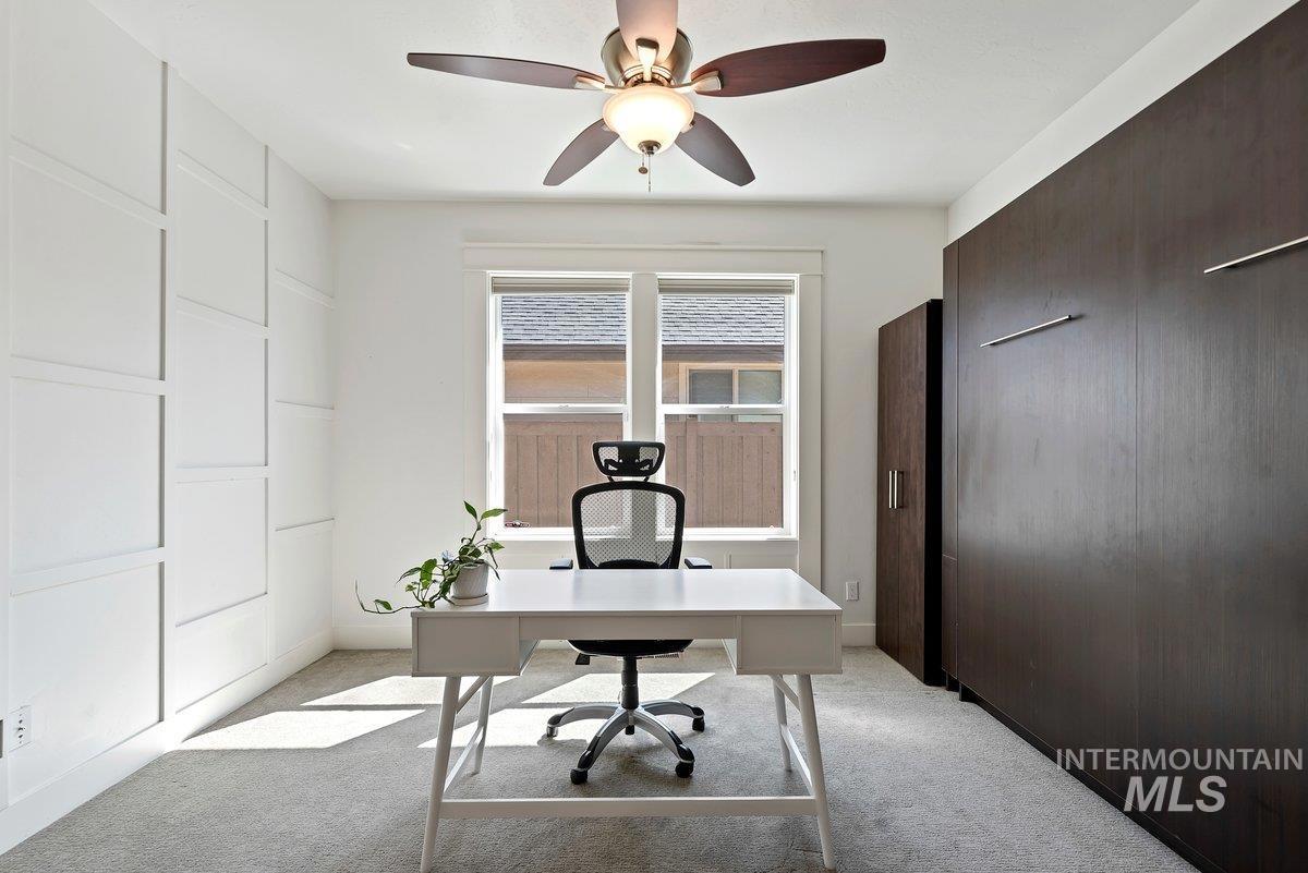 Spurwing Greens Stunner! Located in one of Idaho`s most desirable Golf Course Communities with access to lush common areas, over 6 miles of paved and natural pathways, tennis and pickleball courts, club house & pool, fitness facility, and a restaurant. Once you step into this beautifully appointed home, you are greeted by a light and bright interior. With an abundance of windows throughout, natural lighting adds warmth to the open concept that features extensive trim, moldings, ceiling millwork and a cozy gas fireplace. The upgraded kitchen includes hardwood flooring, custom cabinets, gas cooktop, Bosh appliances, Quartz counters with full tile backsplash and a pantry. The split bedroom design creates space and privacy between the 2 bedrooms + office and the primary bedroom/bathroom suite that features: direct access to the back patio, custom ceiling work, walk-tiled shower, soaker tub, custom tile flooring, dual vanities with Quartz counters and walk-in closet. To top off this amazing home, the backyard is a glorious retreat perfect for entertaining and relaxation. The extensive covered patio creates ample space for BBQ`s, Hot Tubbing and taking in the gorgeous landscape design. Large garden space and storage shed complete the outdoor setting. Solar Panels= Huge electric savings! Last, but not least...Oversized triple car garage checks in at over 900 sq. ft with epoxy flooring.